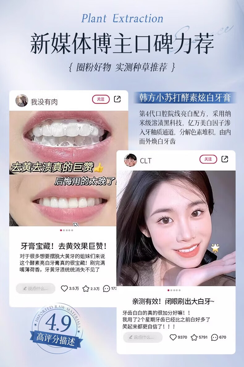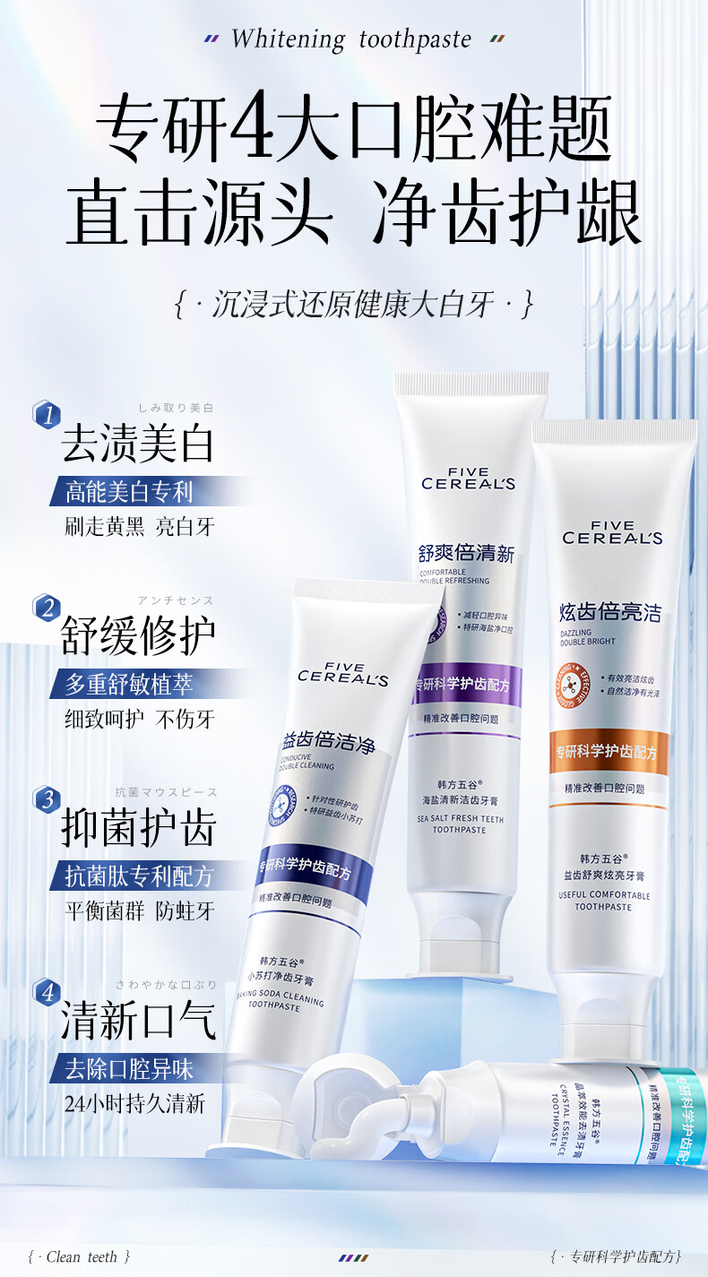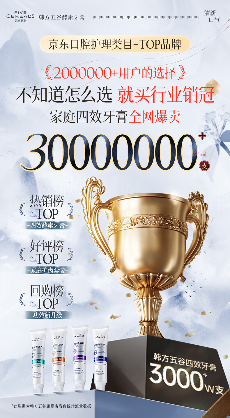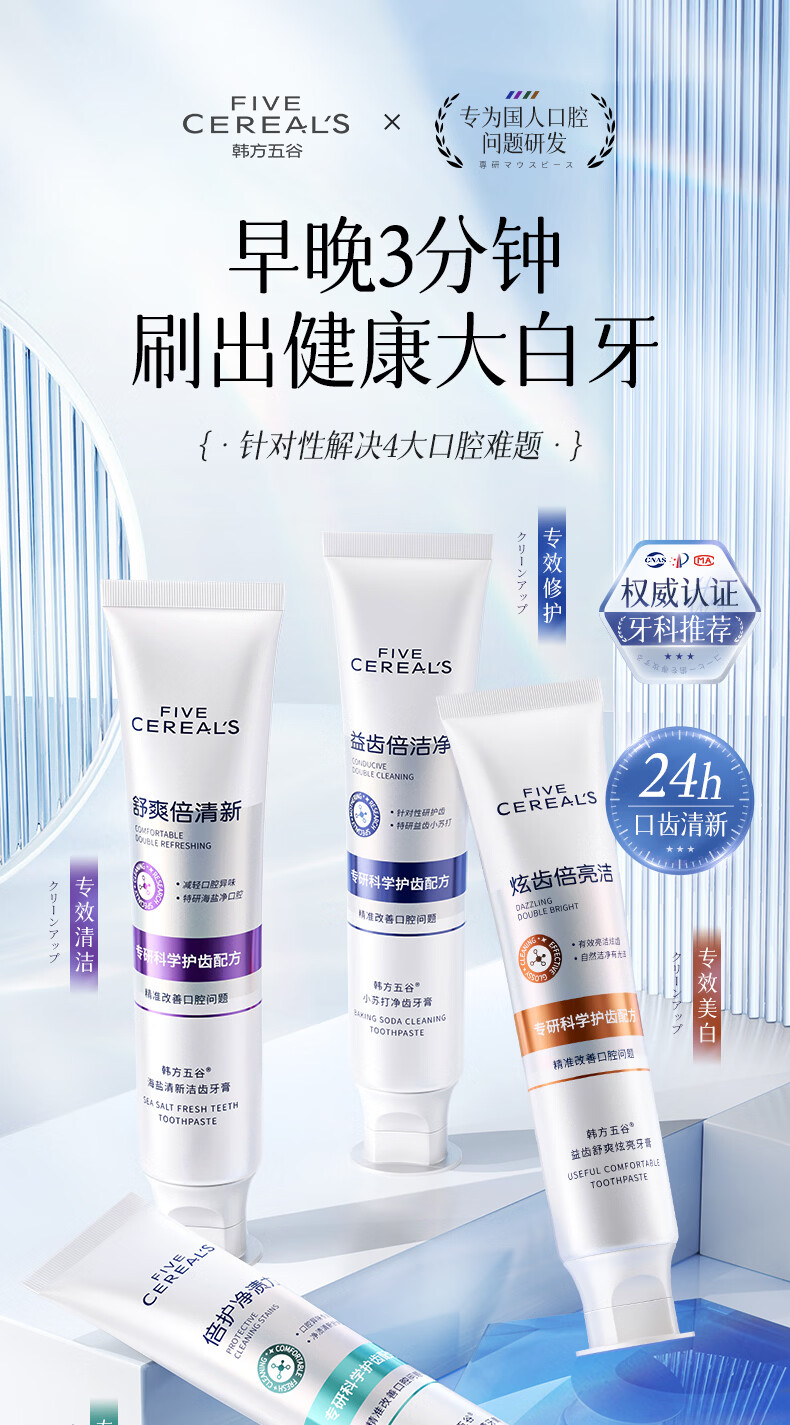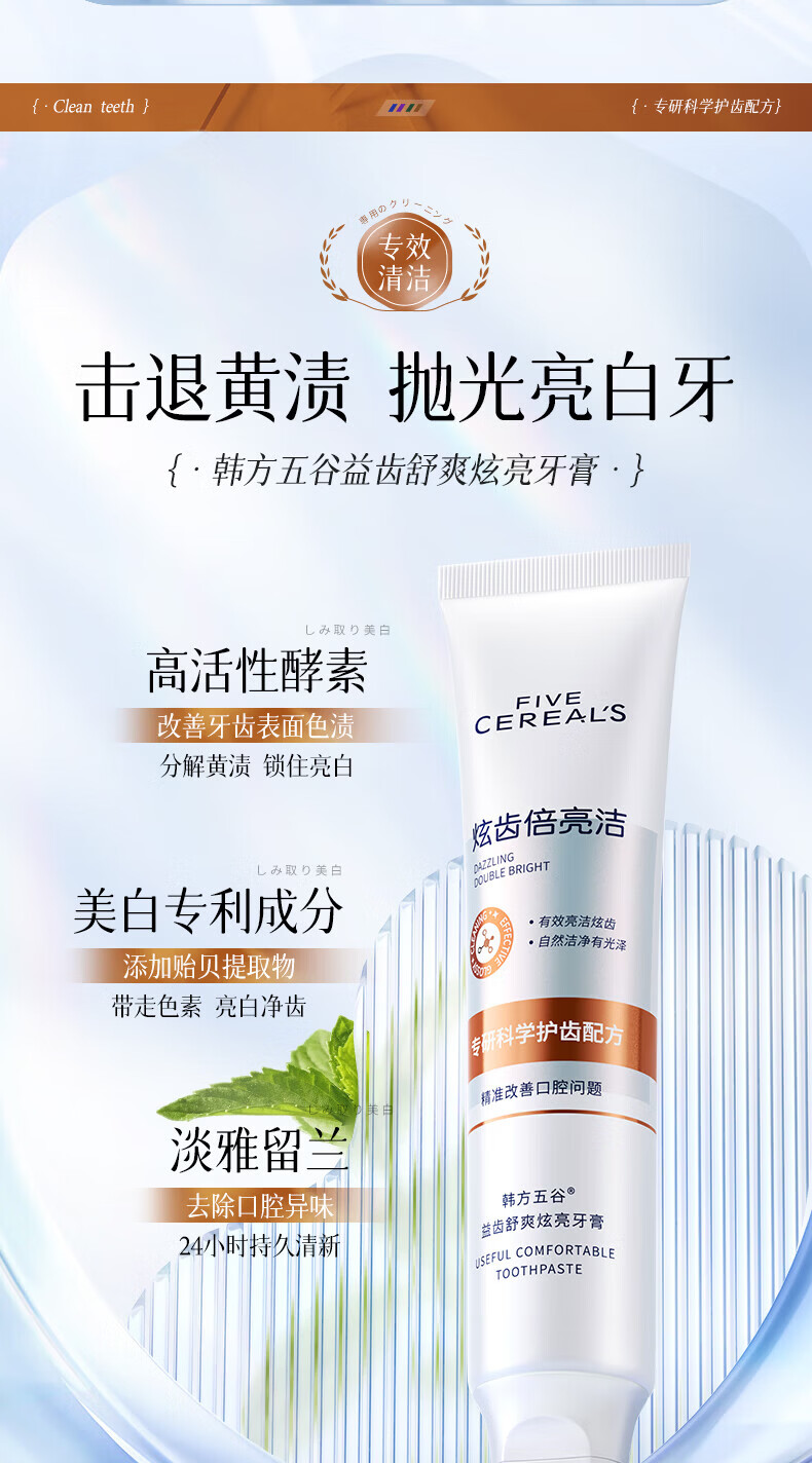 韩方五谷酵素美白牙膏牙亮口臭清新口气去烟渍抑菌结石去渍黄牙垢金榜第一