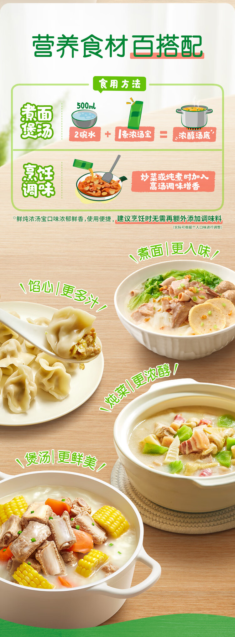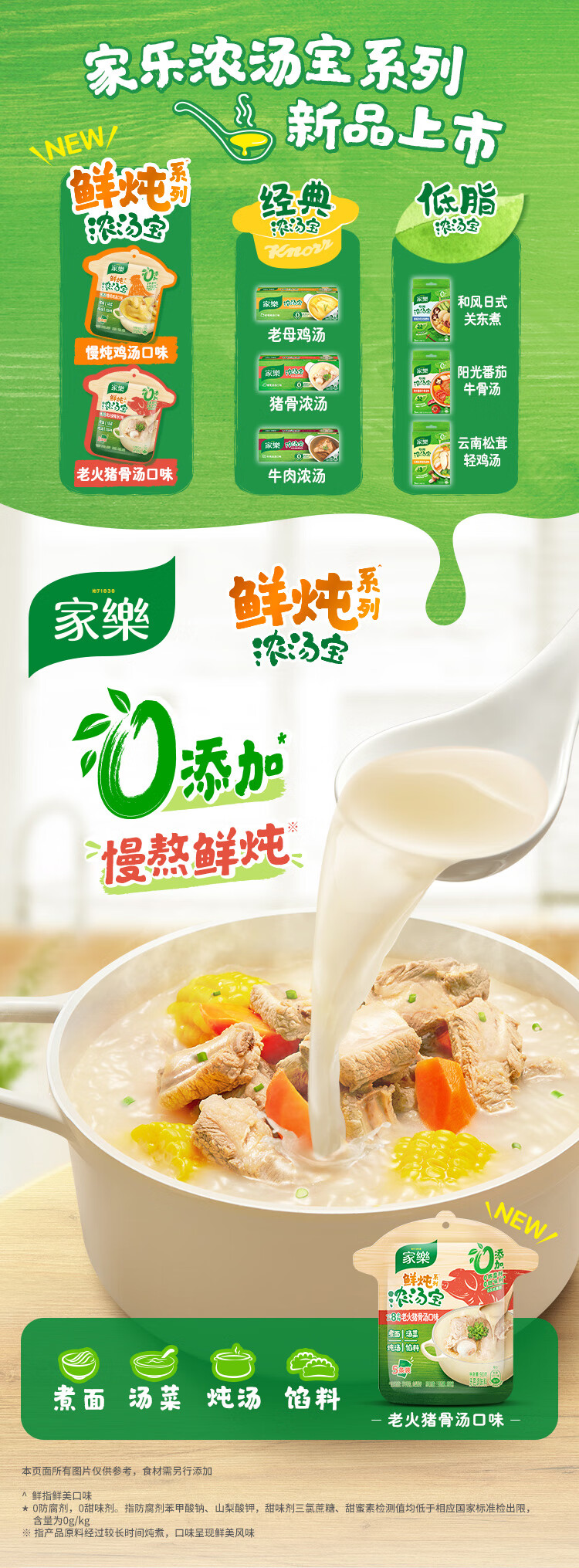 家乐鲜炖浓汤宝0添加防腐剂 水煮菜面条高汤料 老火猪骨味18g*5条