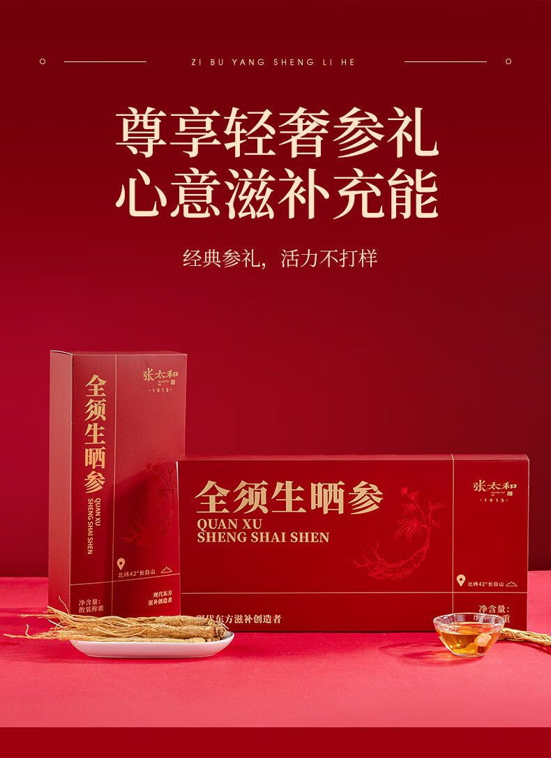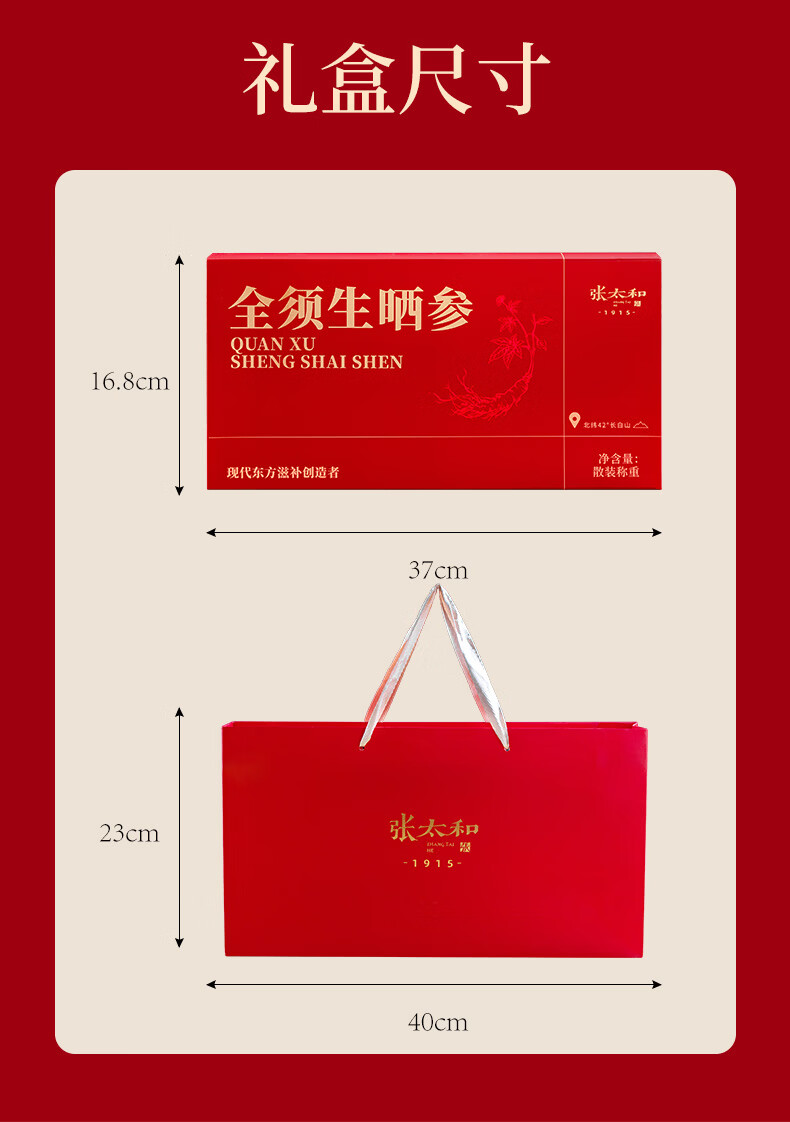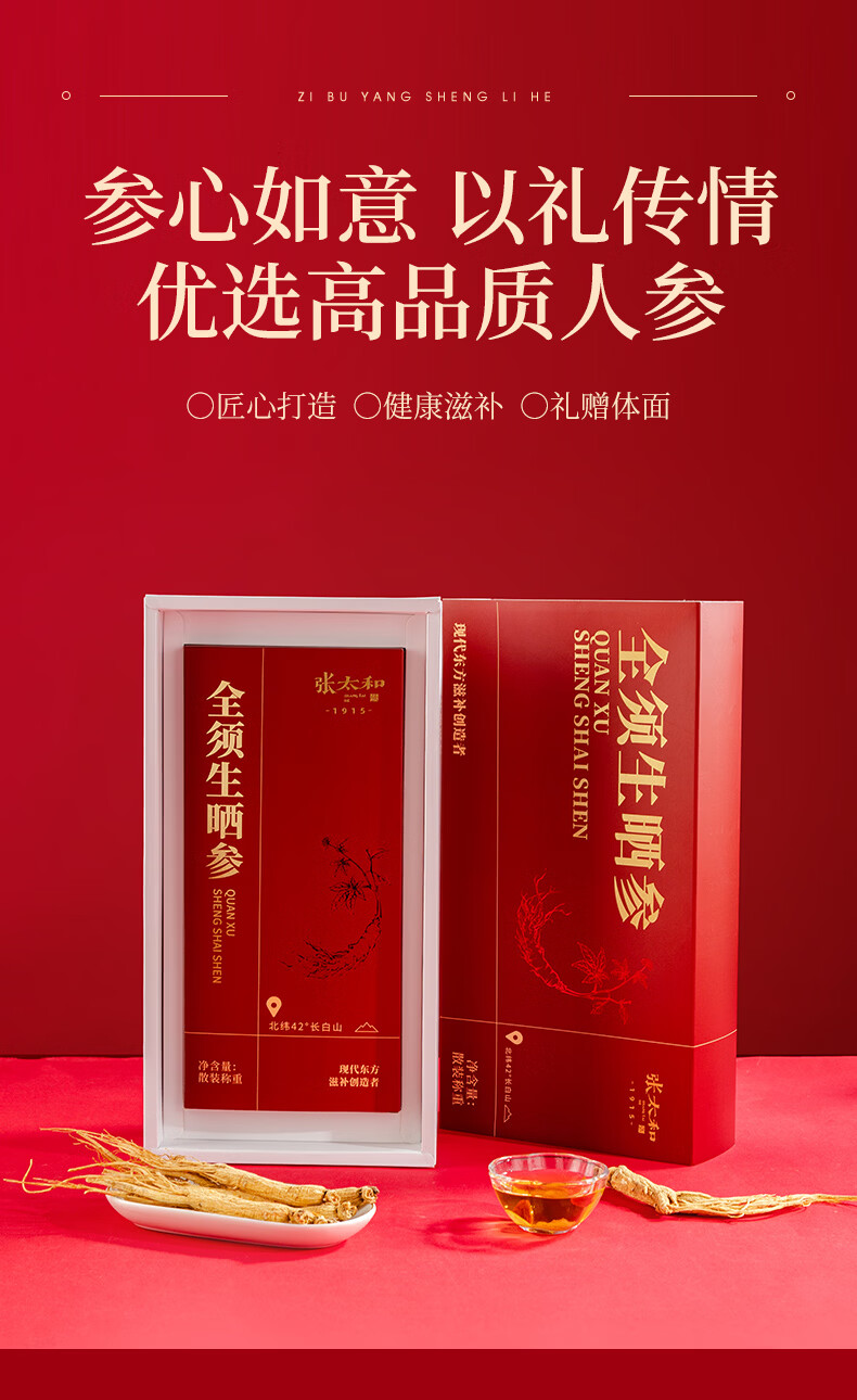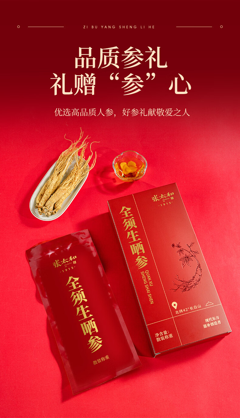 张太和全须生晒参礼盒 整枝年份足煲汤煮粥泡酒礼盒装 滋补送礼佳品礼盒 全须生晒参 20g*4盒 【赠礼袋】