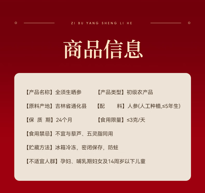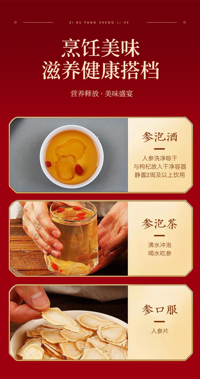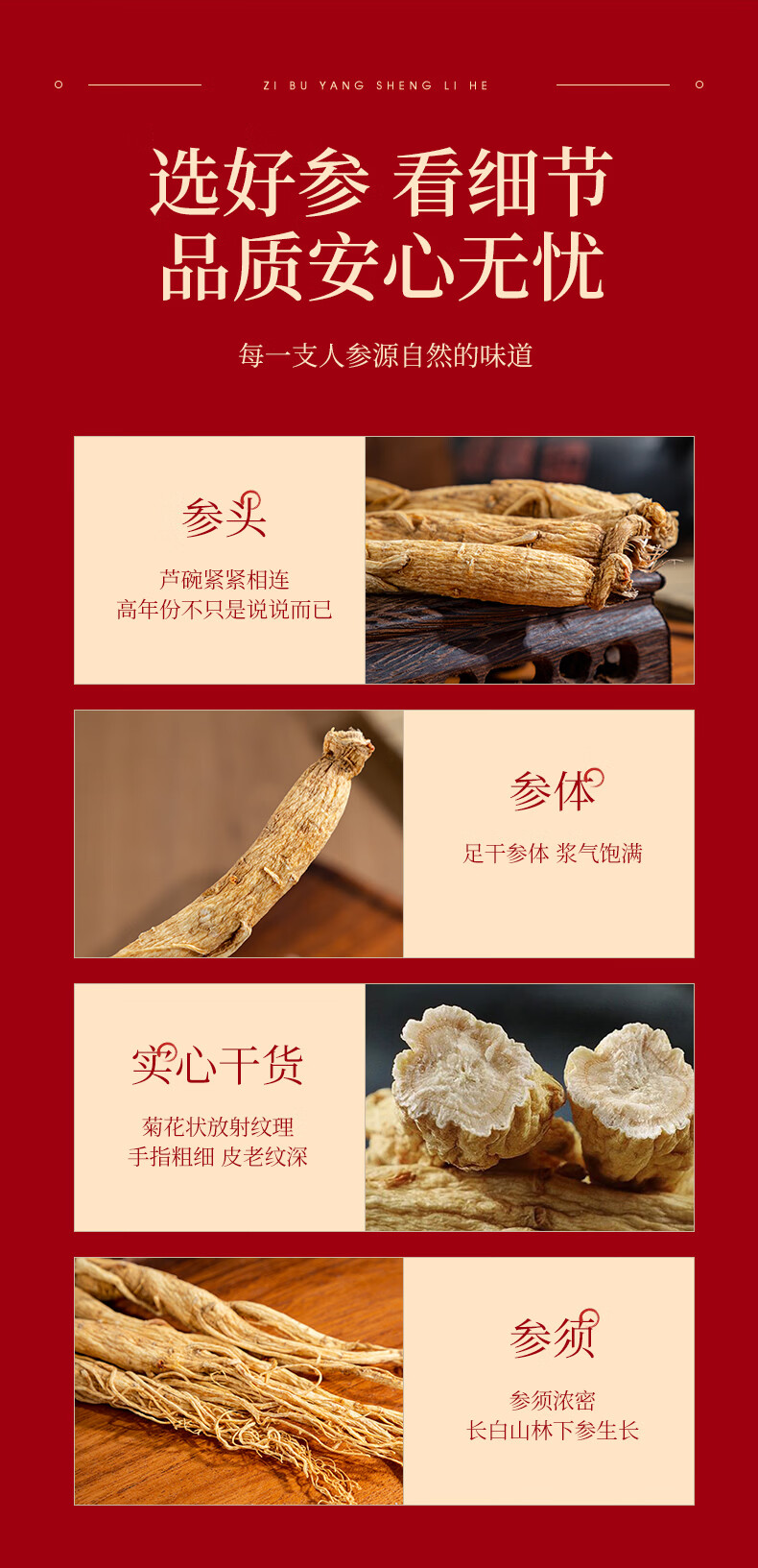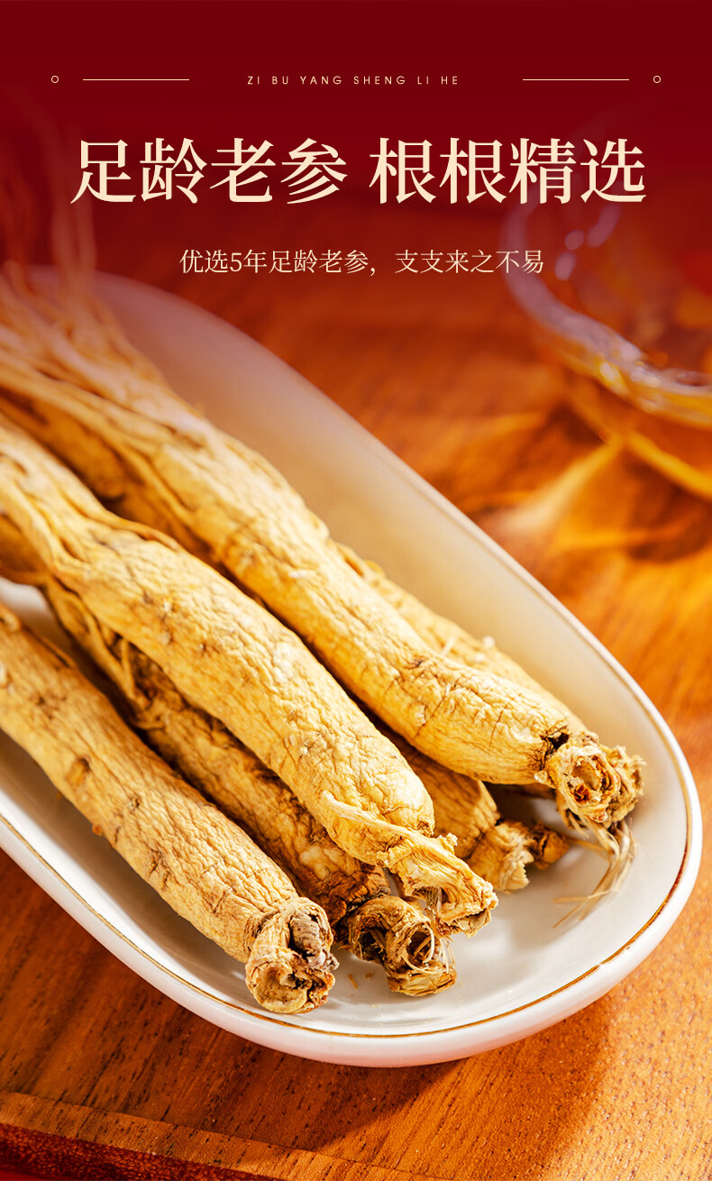 张太和全须生晒参礼盒 整枝年份足煲汤煮粥泡酒礼盒装 滋补送礼佳品礼盒 全须生晒参 20g*4盒 【赠礼袋】