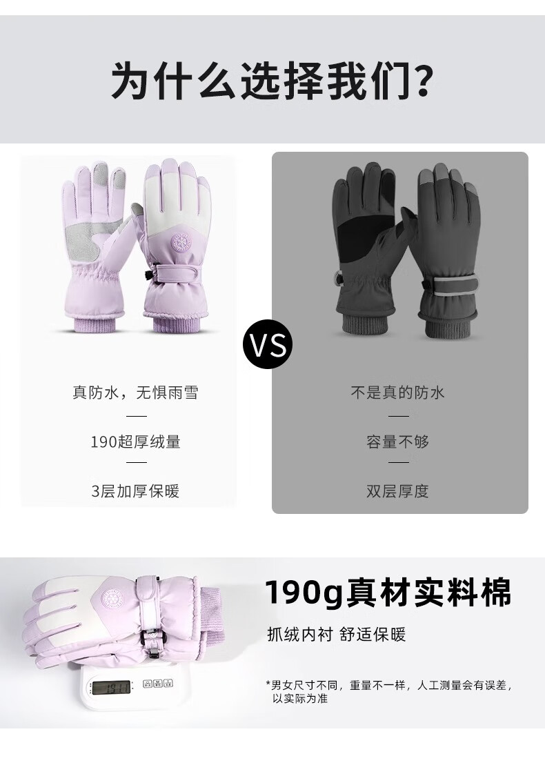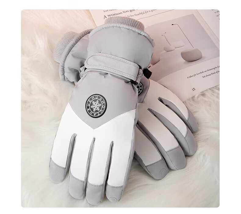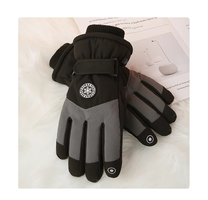 朋意保暖手套冬季2025新款加绒加厚保暖防寒可触屏防风电动车滑雪手套 男款黑灰【高密防风布】 加绒加厚/可触屏