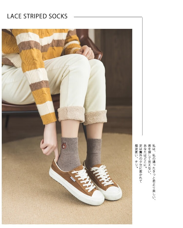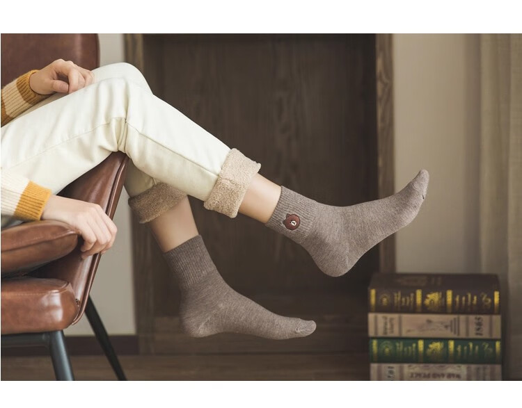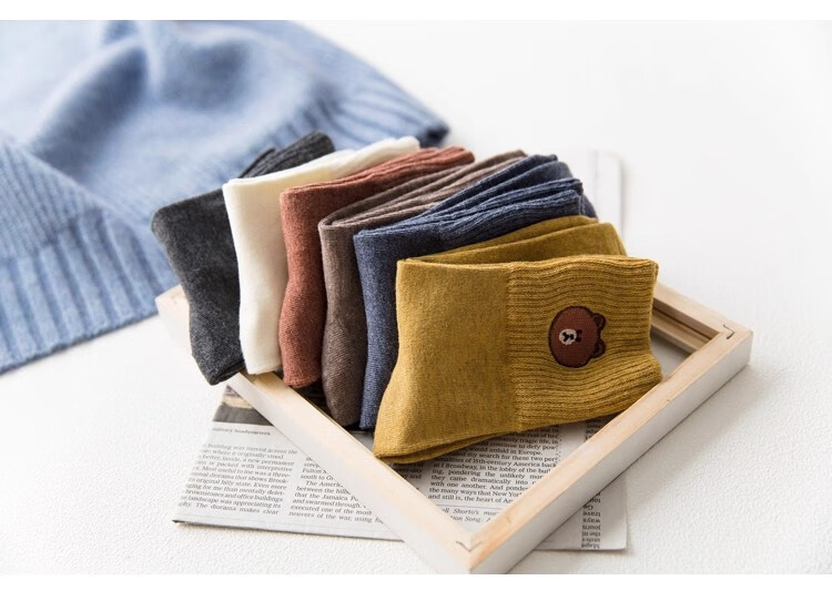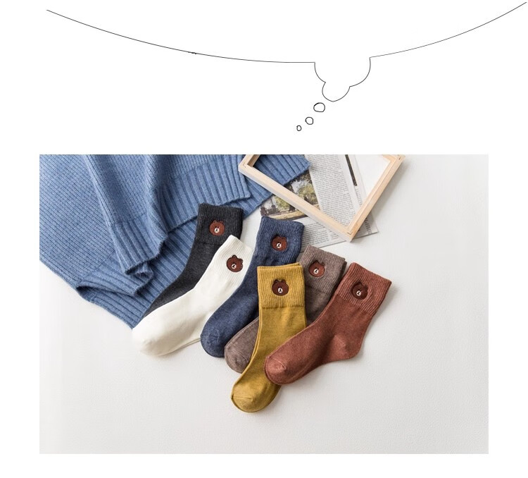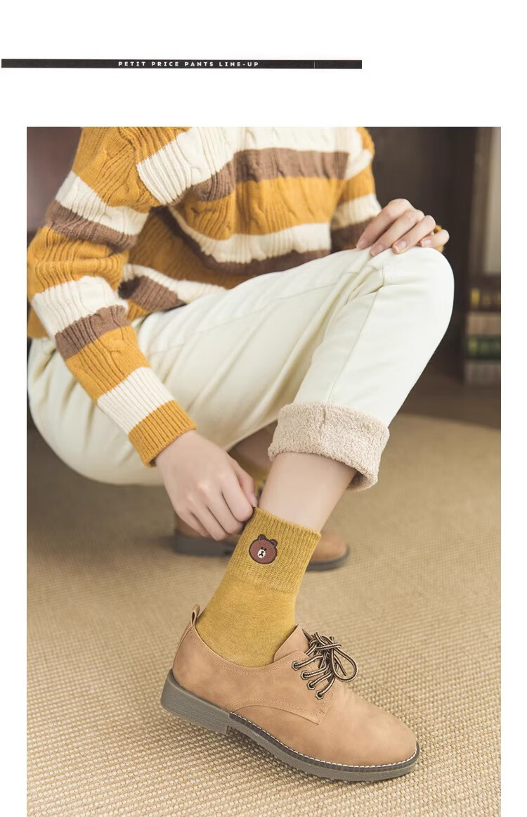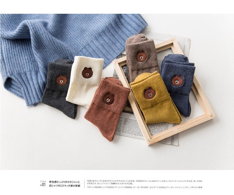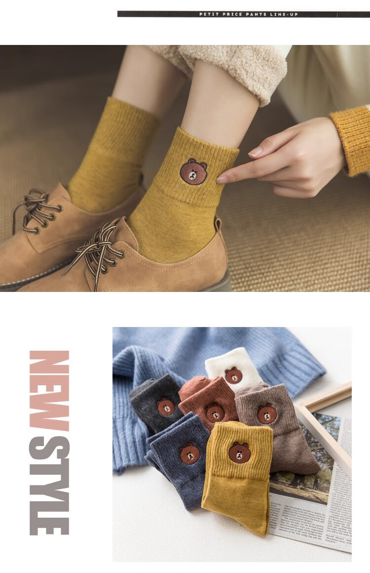 小熊袜子女中筒袜可爱学生长袜简约简约日系ins秋冬 2双【随机】 均码