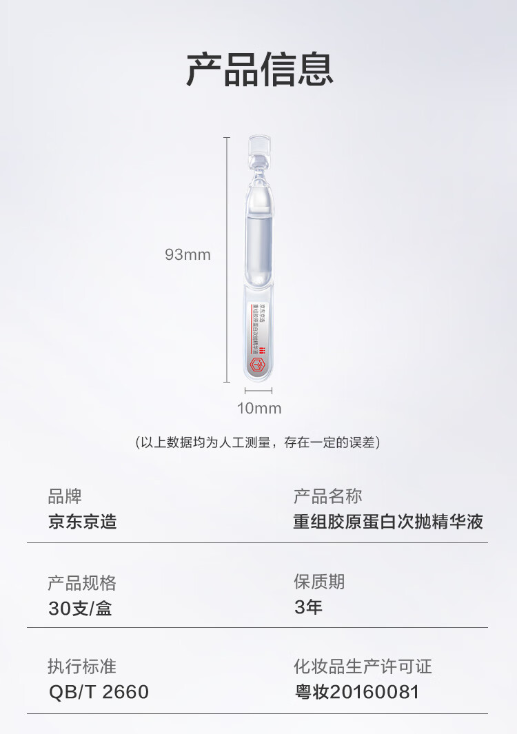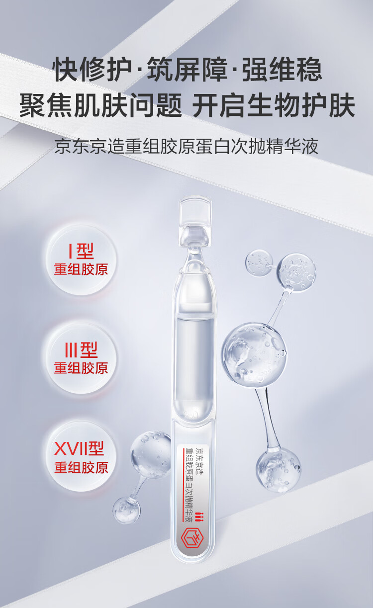 京东京造重组胶原蛋白次抛精华液30支装 修护舒缓补水保湿抗氧化B5积雪草