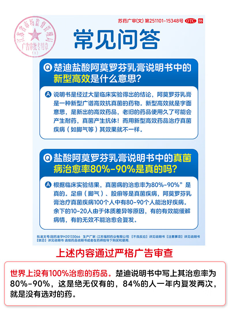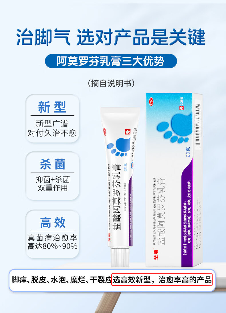 楚迪盐酸阿莫罗芬乳膏20g治脚气药止痒脱皮烂脚丫真菌感染自营去脚气软膏脚出汗脚臭专用药水泡型