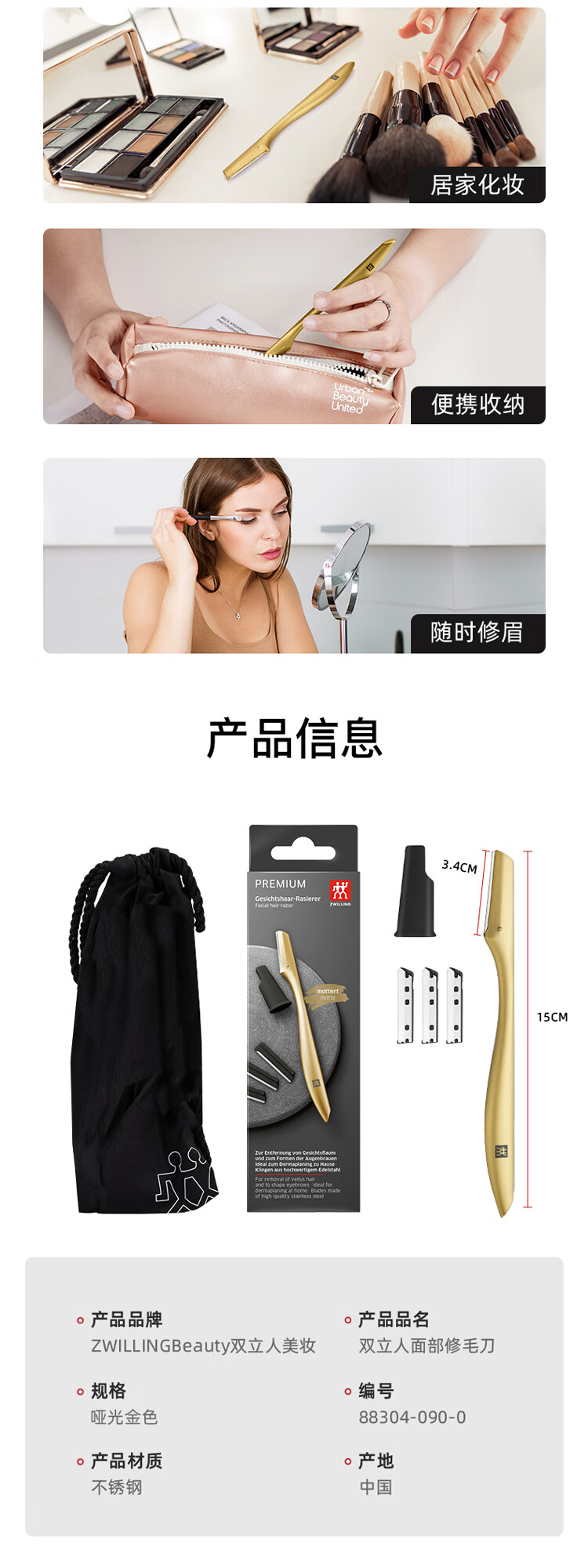 双立人(ZWILLING)修眉刀面部刮毛刀刮眉刀美容镊子工具防刮伤剃毛刀修眉神器送女友