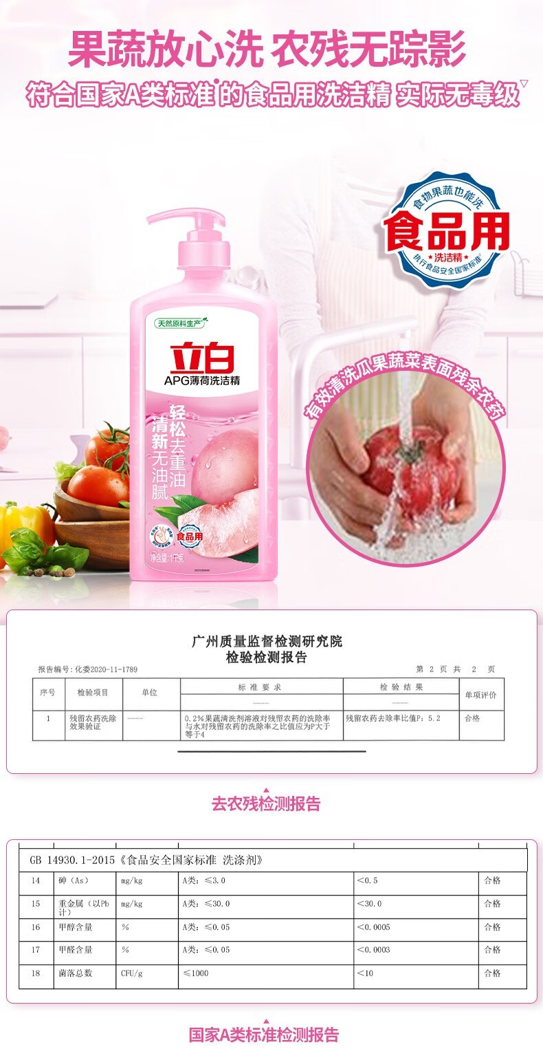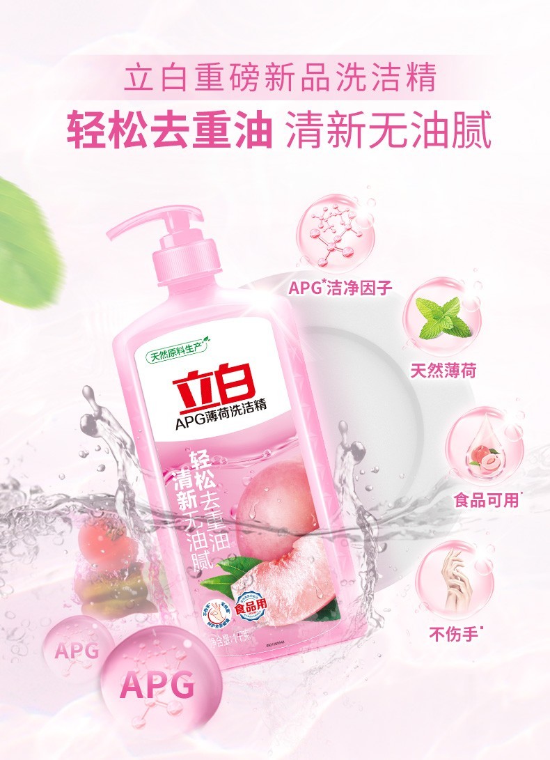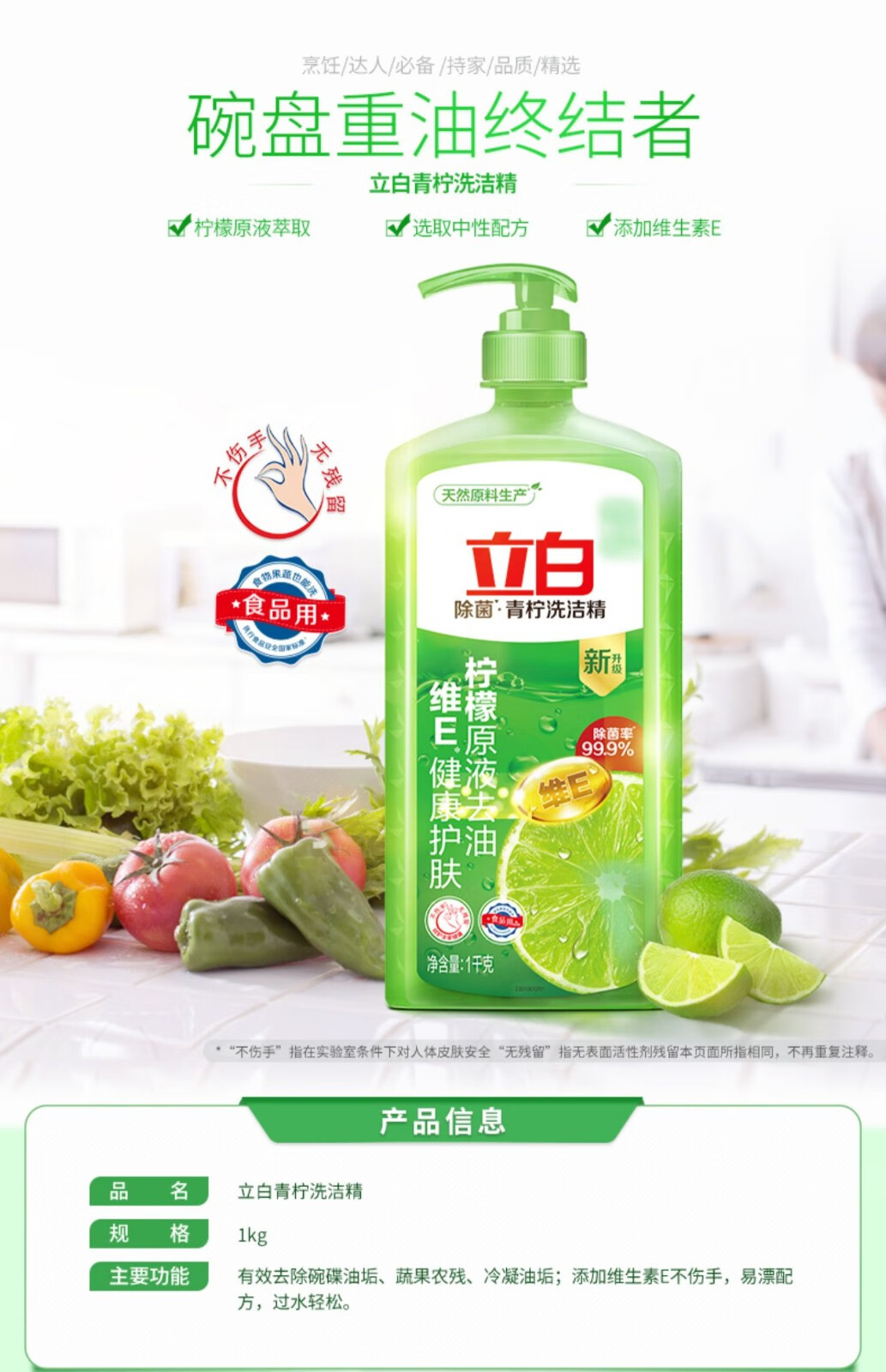 立白洗洁精 食品用 不伤手无残留家用组合装 青柠除菌洗洁精 2斤*1瓶