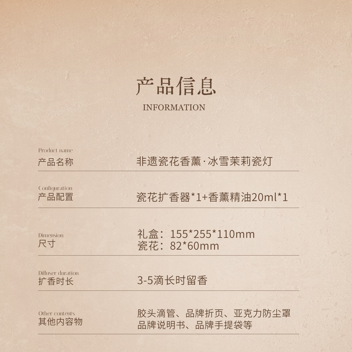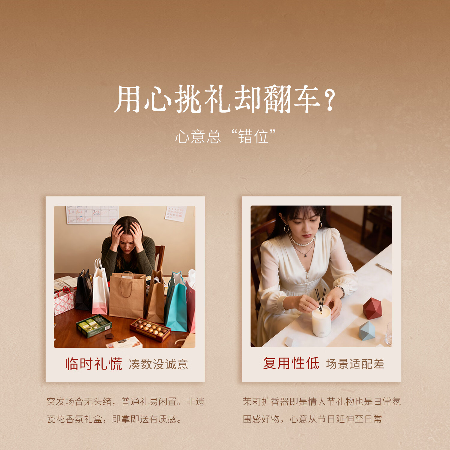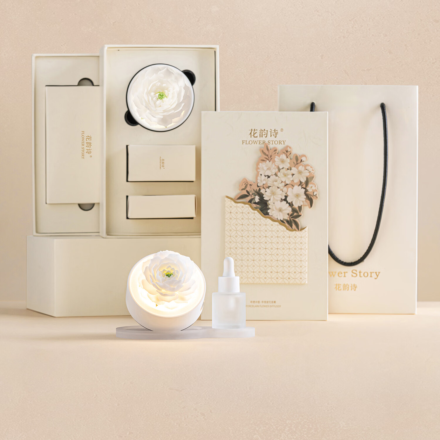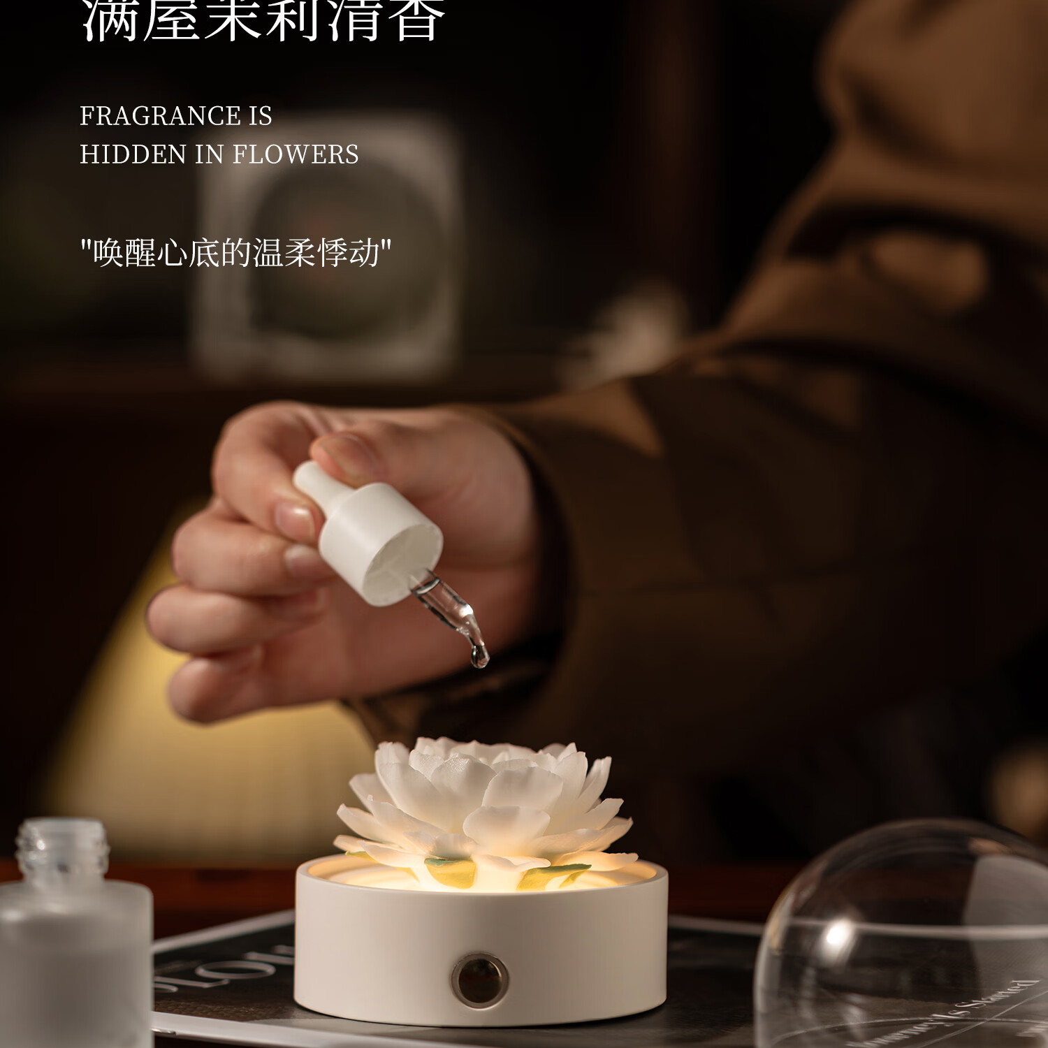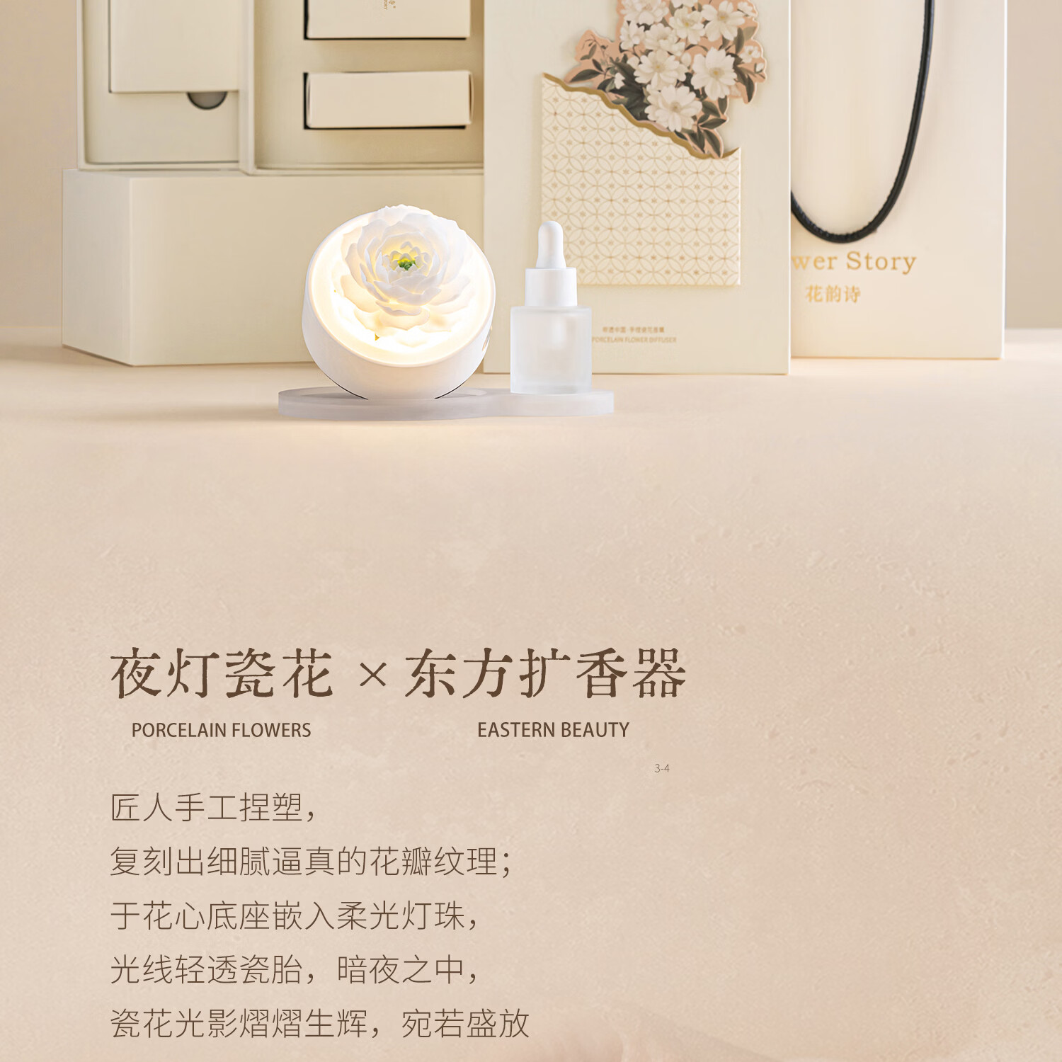 FLOWER STORY【生日礼物】非遗瓷花香薰灯礼盒扩香家居夜灯助眠高级送女友闺蜜 限定礼盒「茉莉夜灯」 予卿茉莉 拥卿莫离