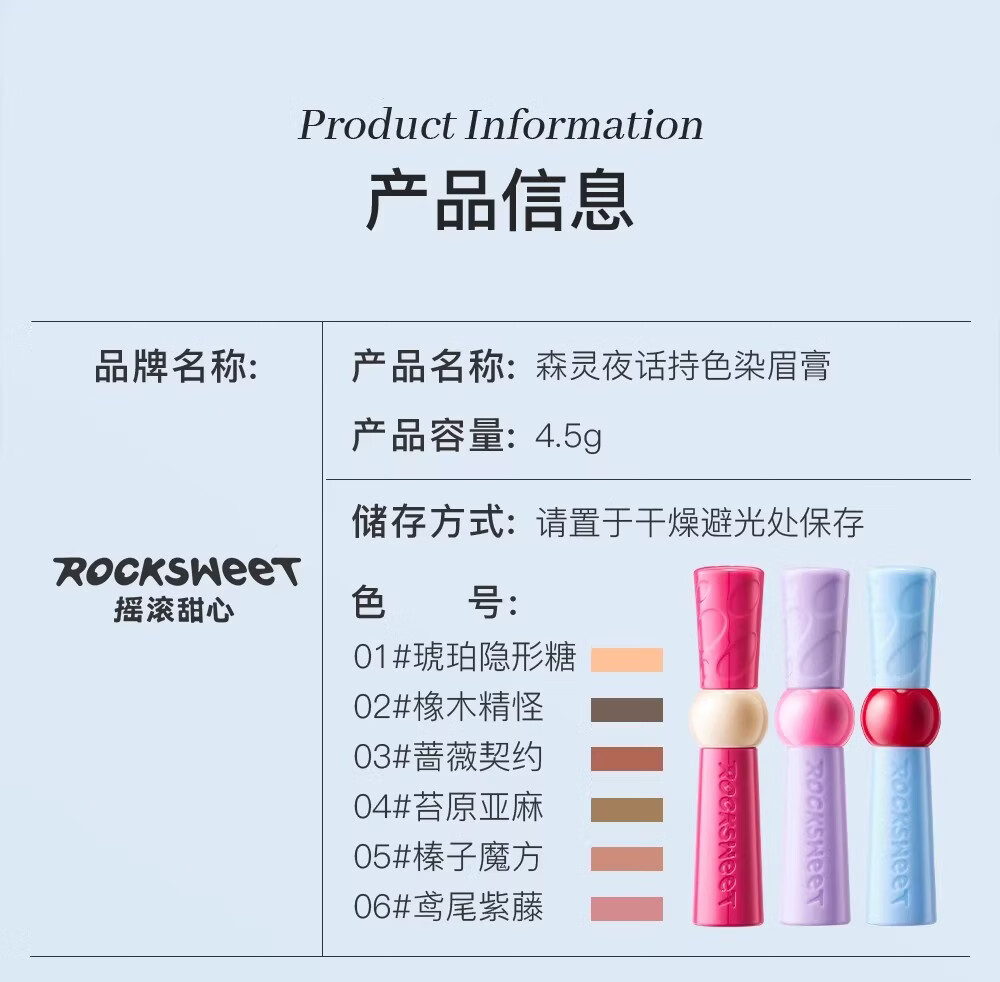 摇滚甜心 ROCK SWEET森灵夜话持色染眉膏自然防水持久不脱色不晕染定型【送女友礼物】 #P05 榛子魔方-榛果棕【NEW】【紫管】