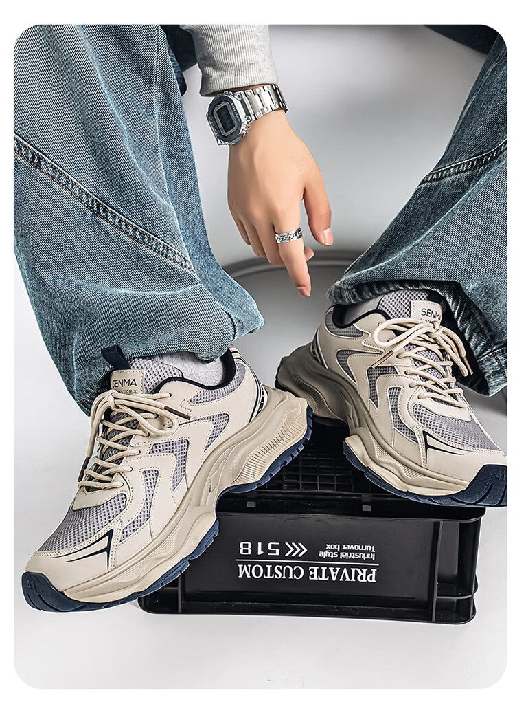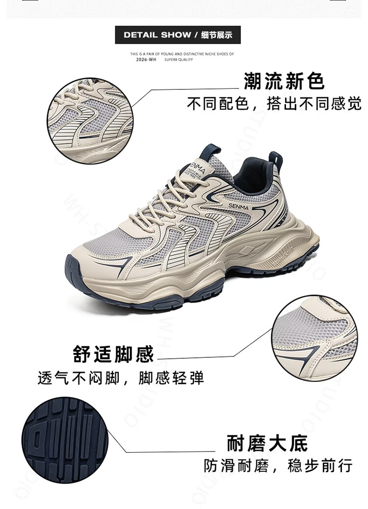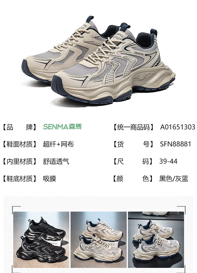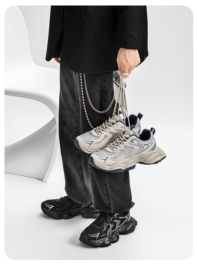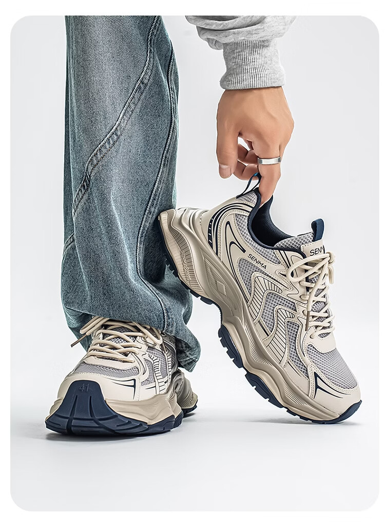 森馬老爹鞋男款2026春季潮流百搭防滑耐磨运动鞋男士户外轻便跑步潮鞋 灰蓝【基础款】 39 标准码数/现货秒发