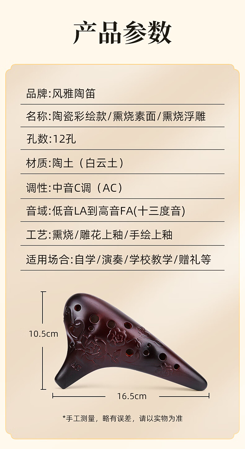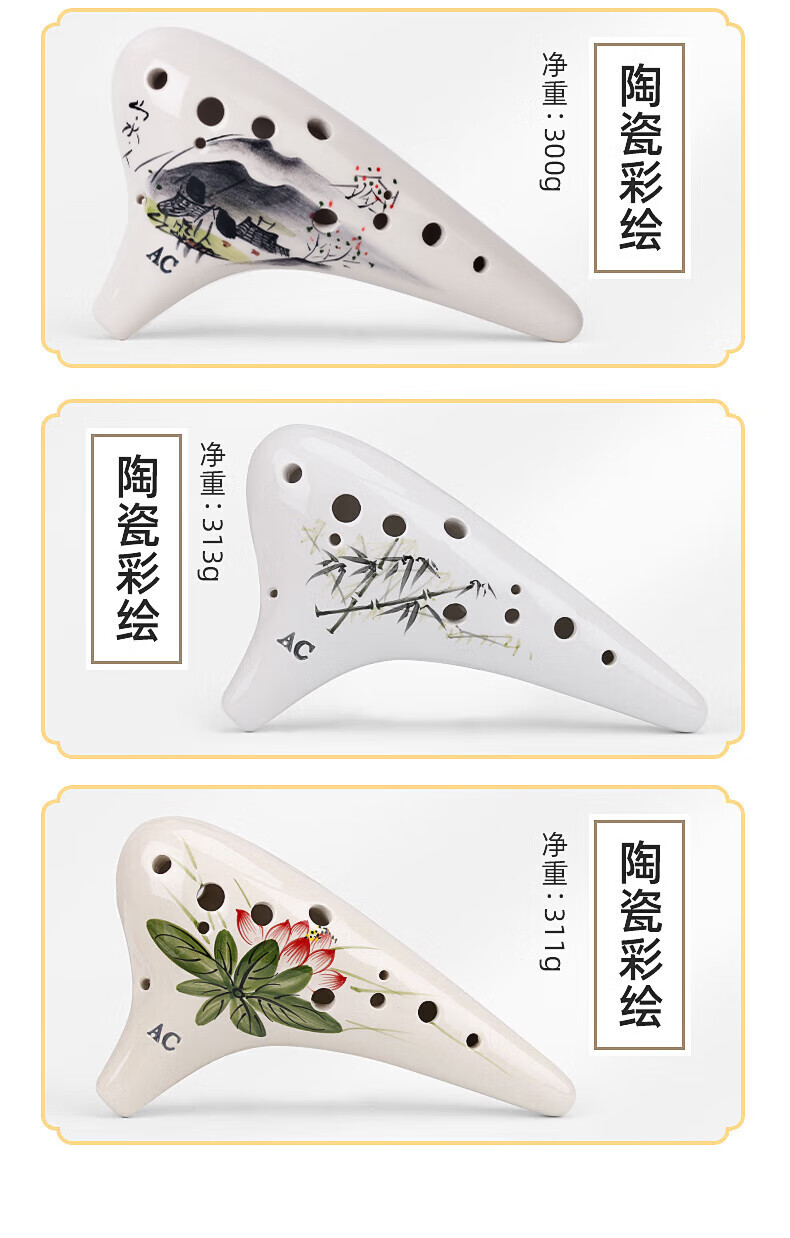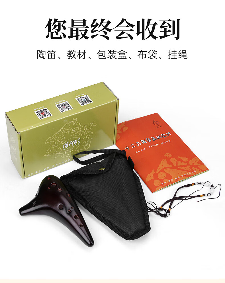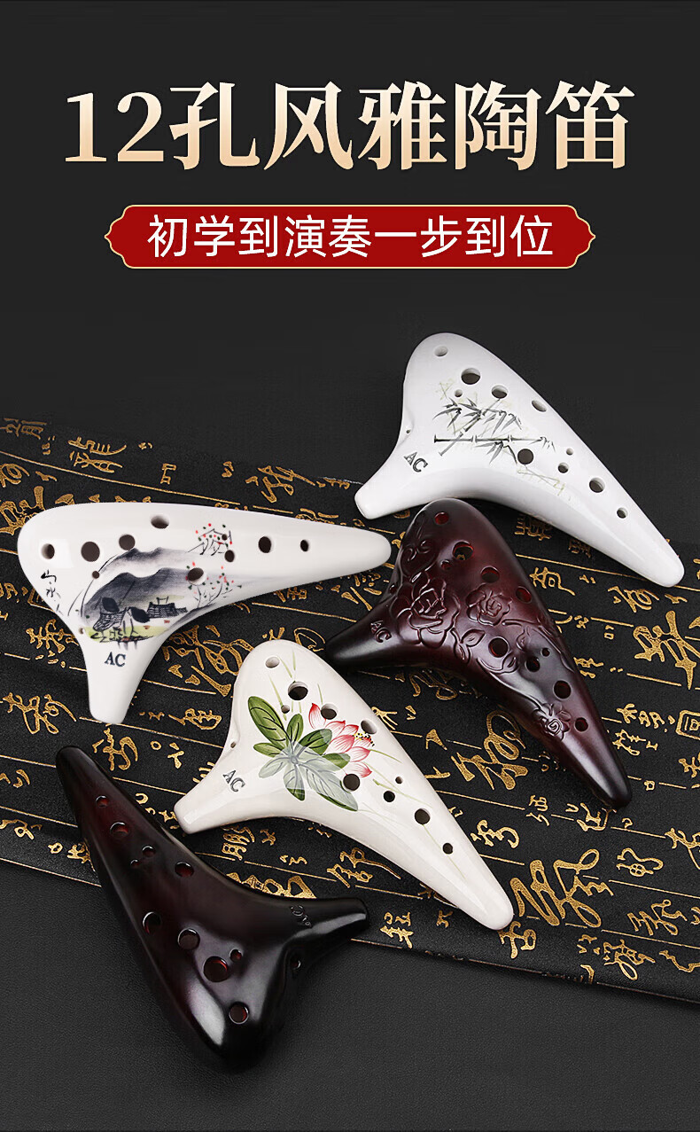 风雅陶笛 12孔陶笛 AC中音C调十二孔演奏陶笛 音准好带曲谱 山水人