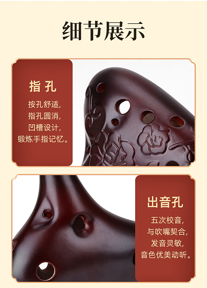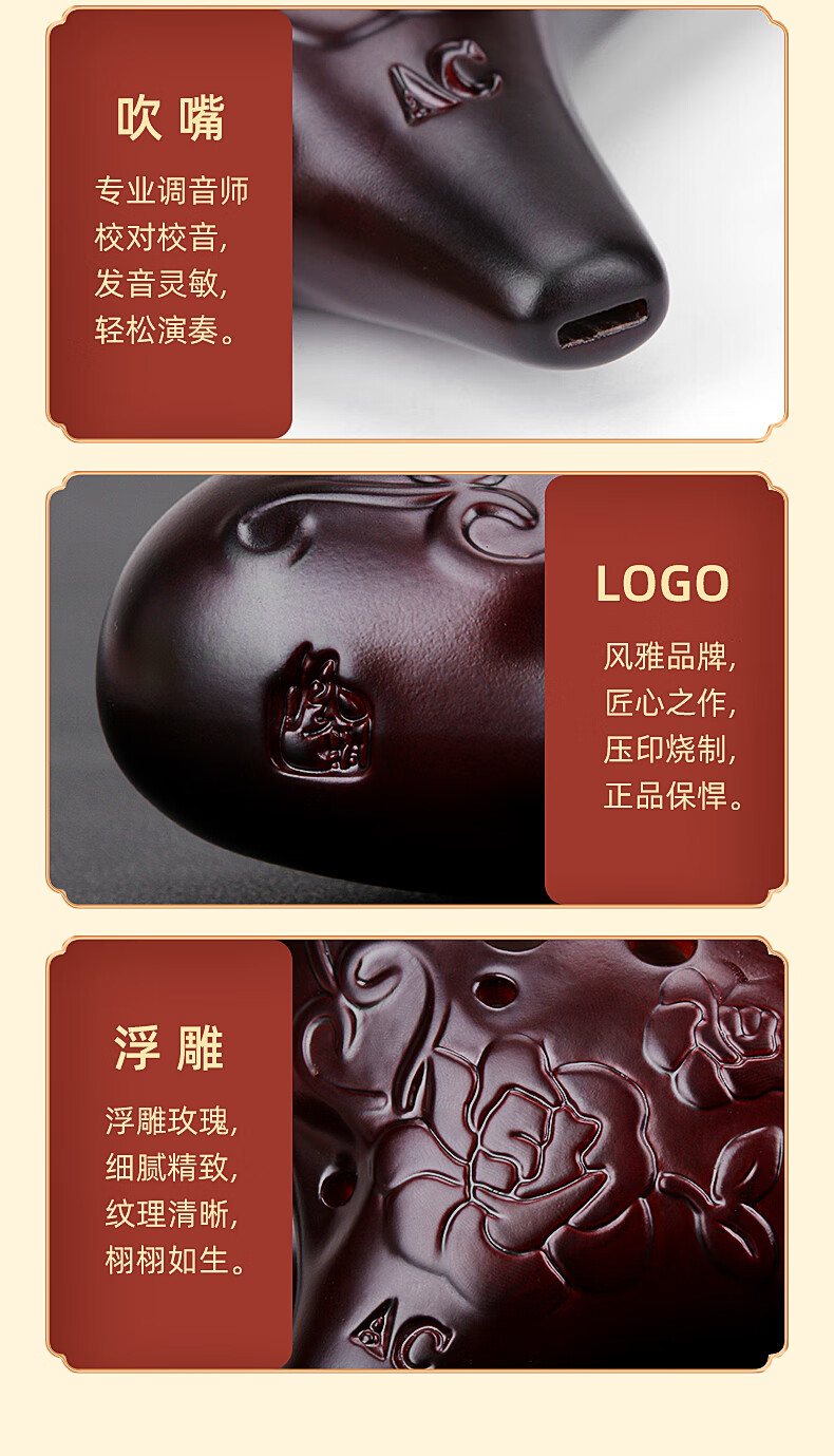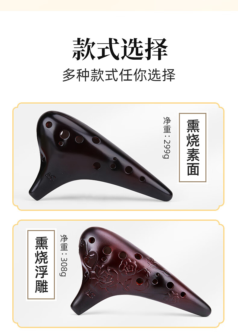 风雅陶笛 12孔陶笛 AC中音C调十二孔演奏陶笛 音准好带曲谱 山水人