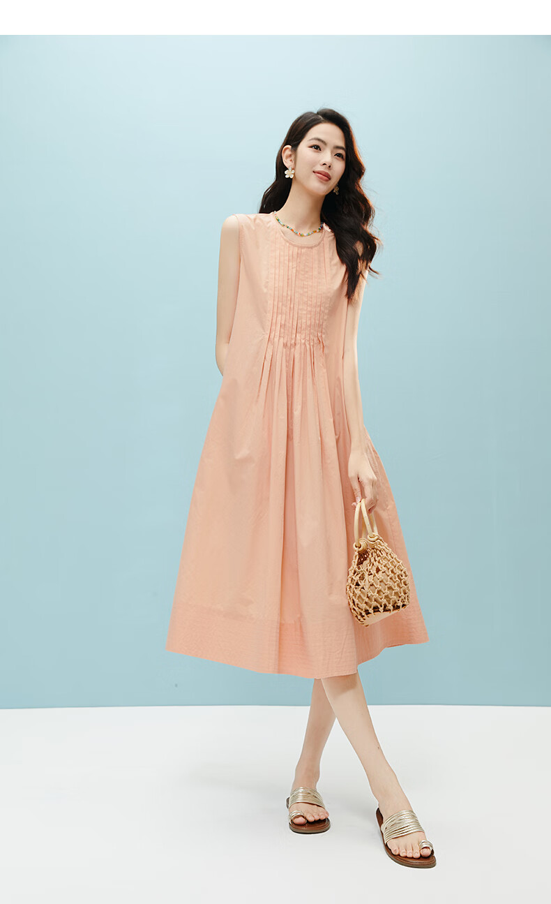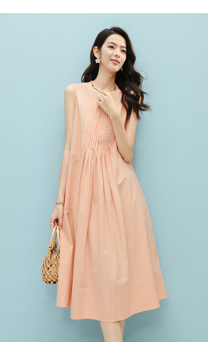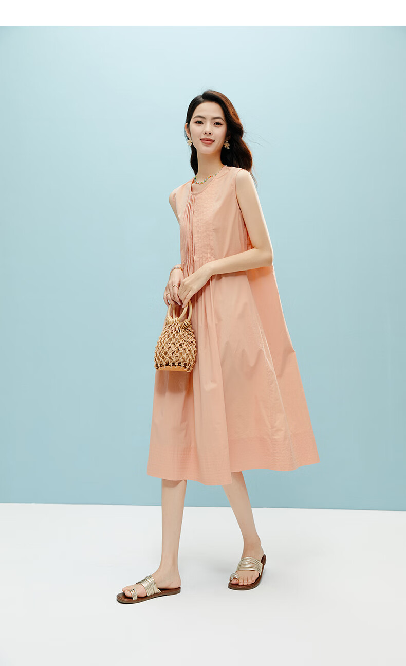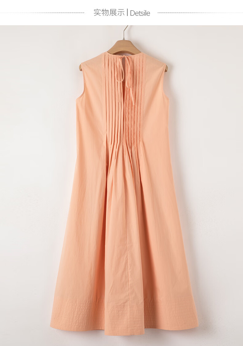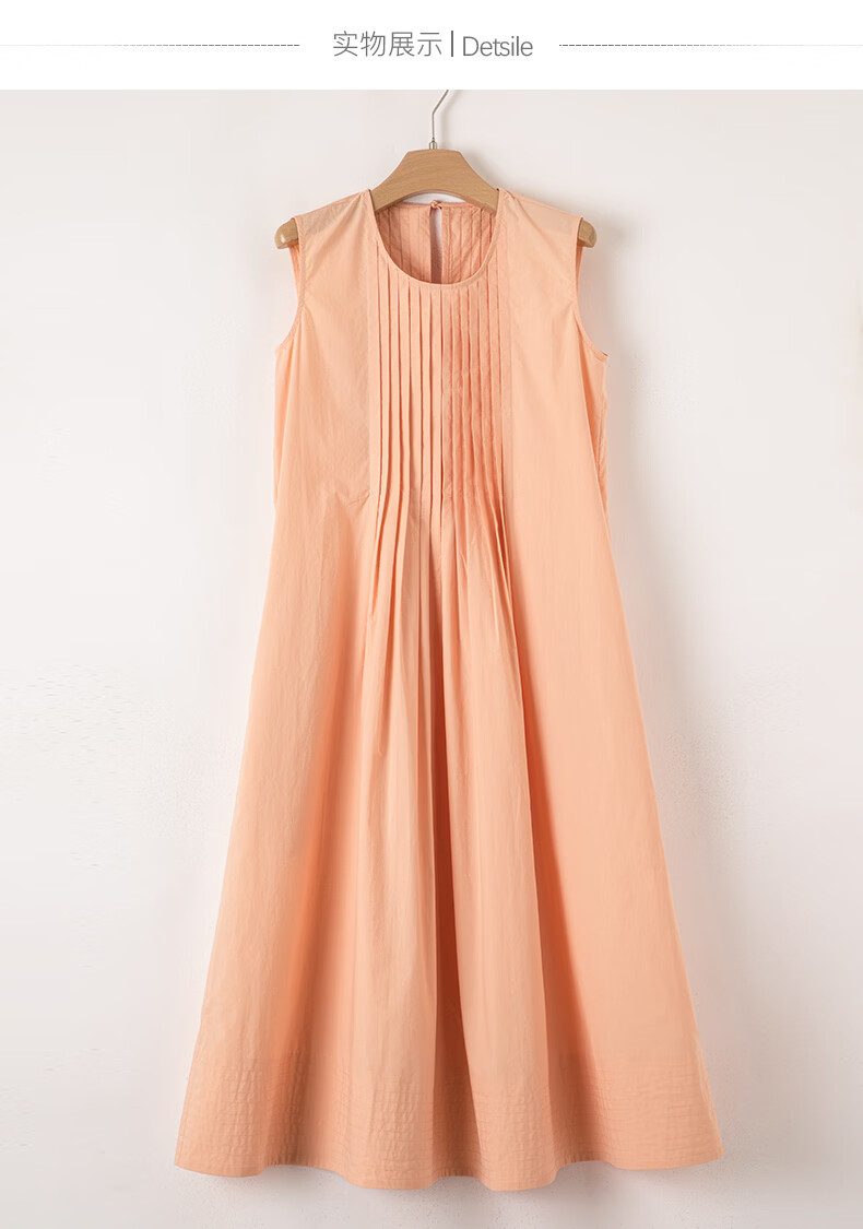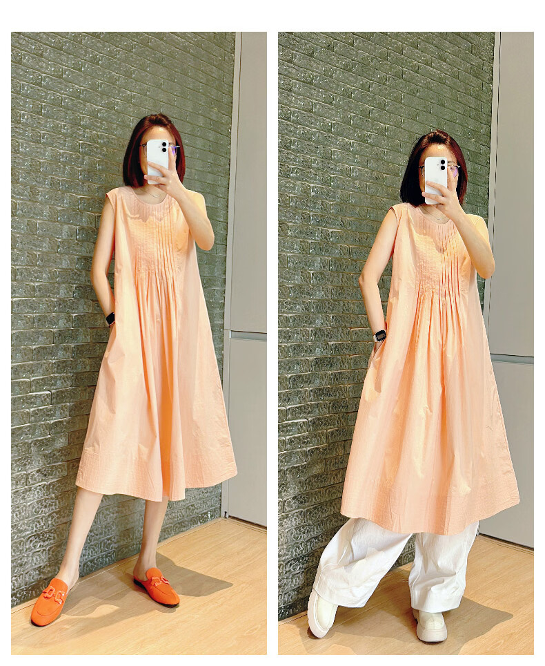晚白【新品】2026年春款时尚减龄全棉裙子高腰捏褶宽松舒适无袖连衣裙 橘粉色 M