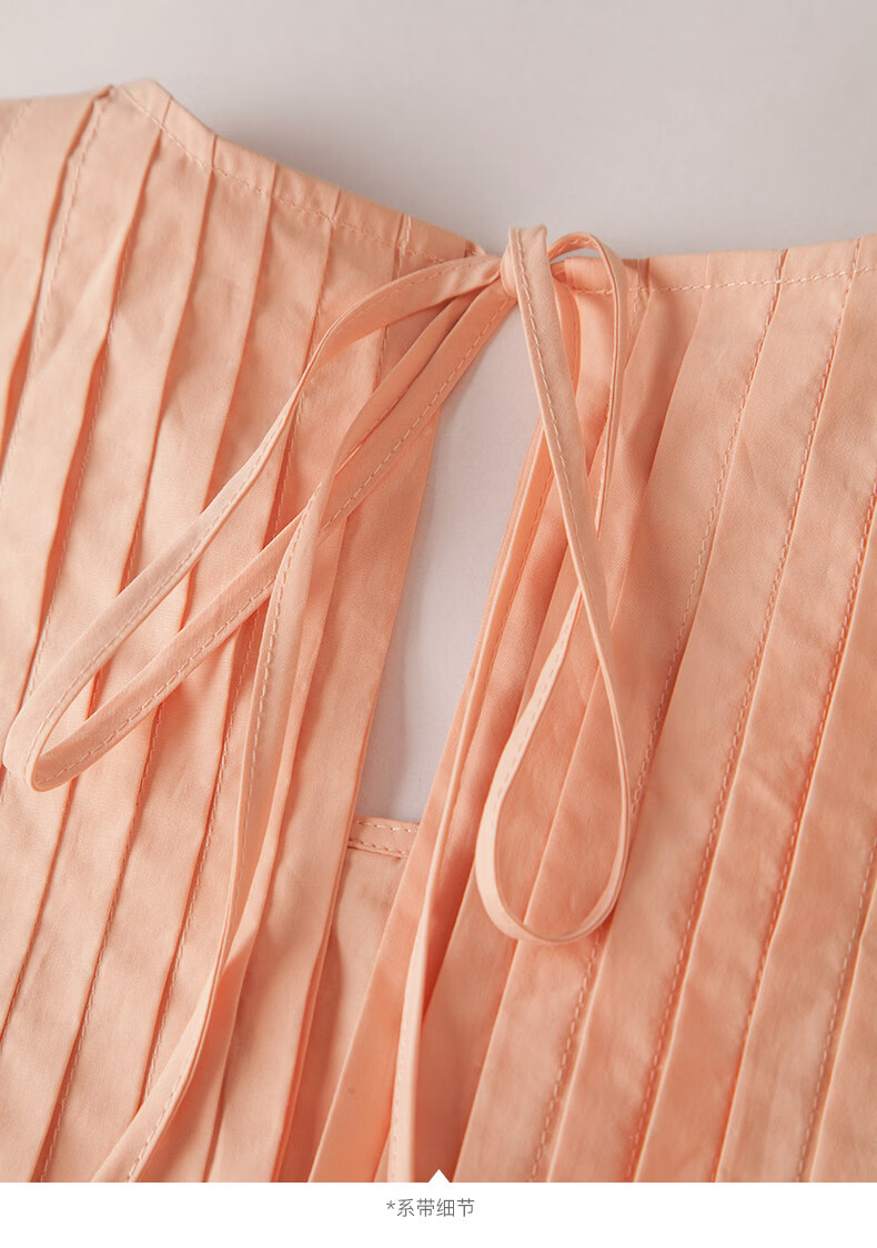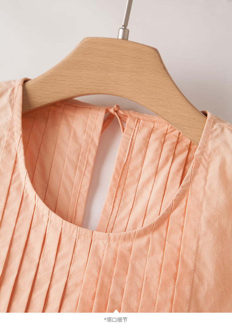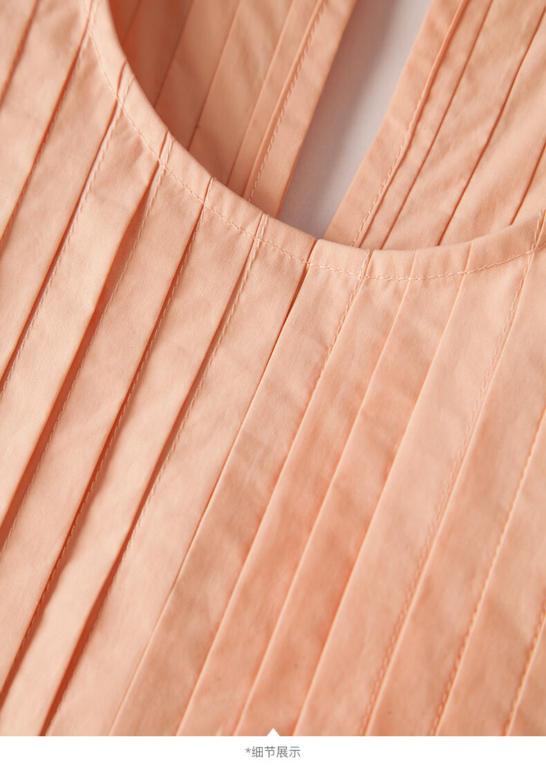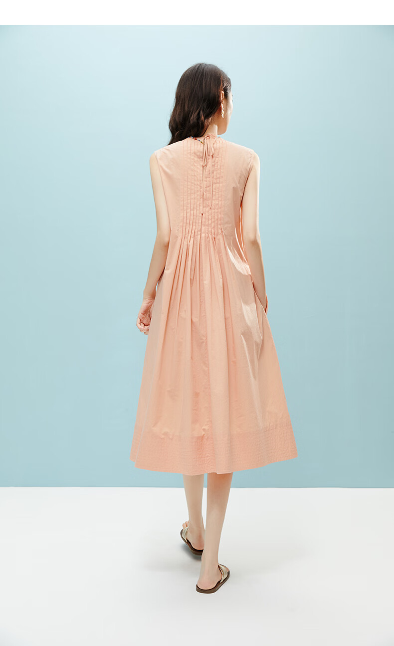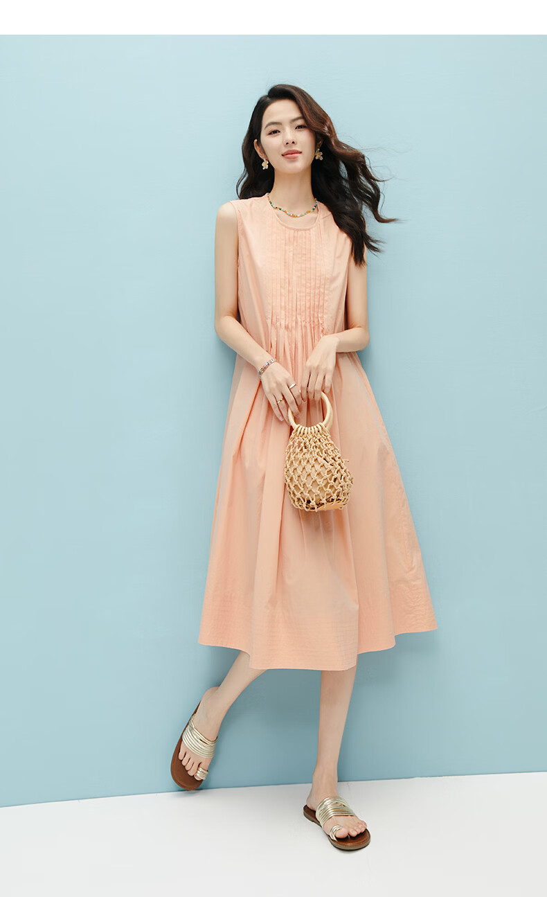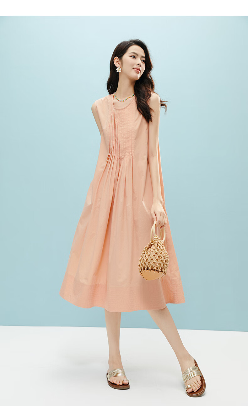 晚白【新品】2026年春款时尚减龄全棉裙子高腰捏褶宽松舒适无袖连衣裙 橘粉色 M