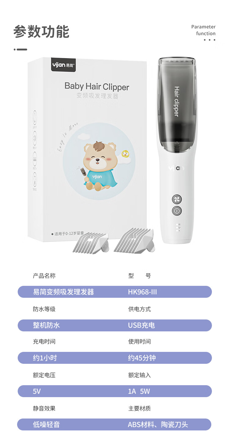 易简(yijan)自动吸发婴儿理发器儿童理发器剪发器宝宝剃头器电推子HK968II