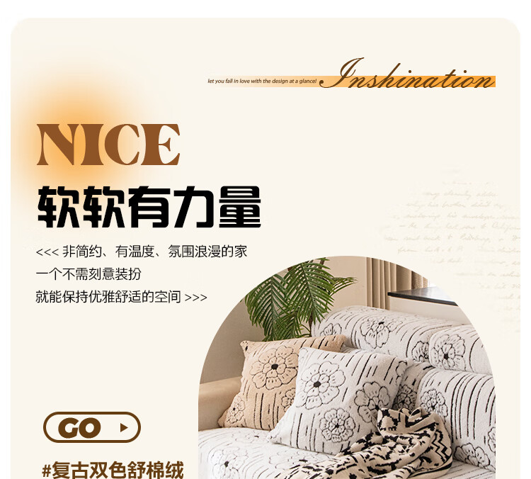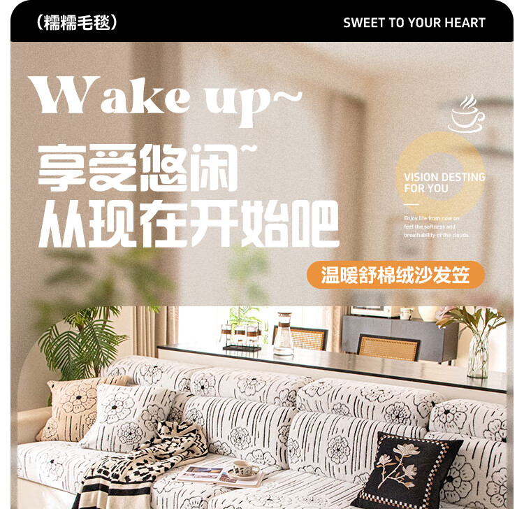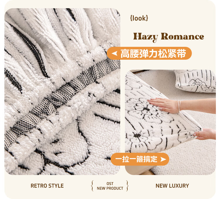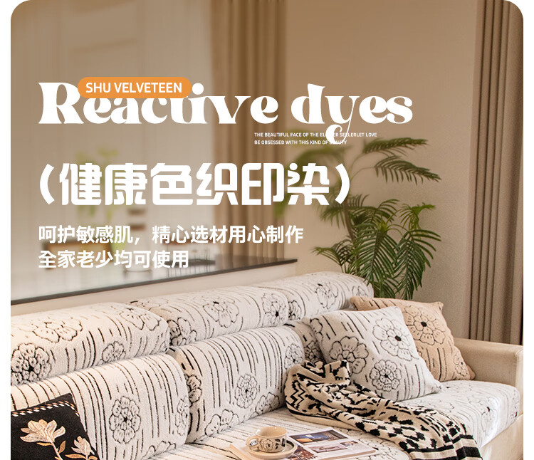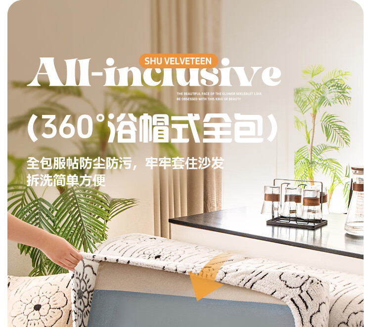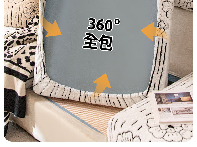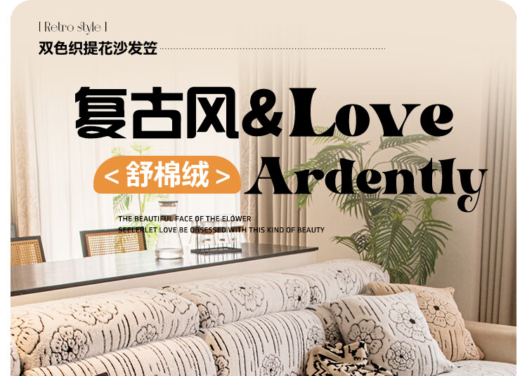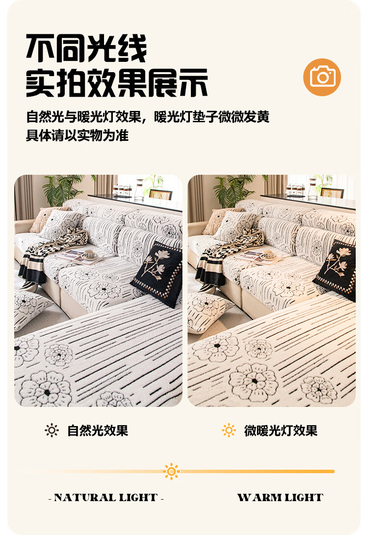 金拾美月舒棉绒冬季沙发笠2026新款三座一贵妃坐垫套罩防猫防滑抓盖布巾 花影-白色 单人加大S宽65-85cm*长65-95cm