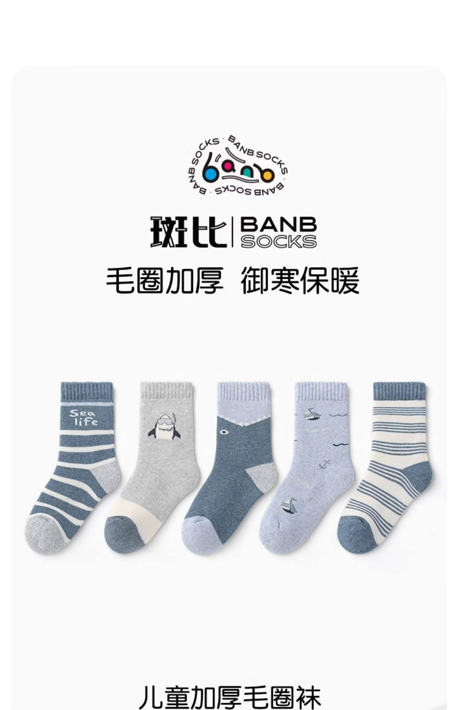 斑比童袜男童袜子秋冬加厚保暖中大童宝宝冬季儿童毛圈袜子 BB2186 秋冬款加厚儿童袜子 5双 0-1岁 建议脚码16码以内【12-14】