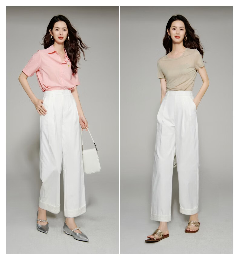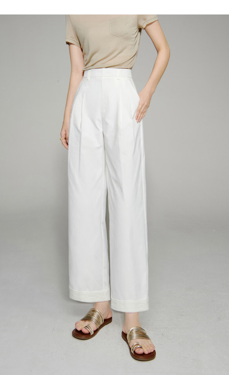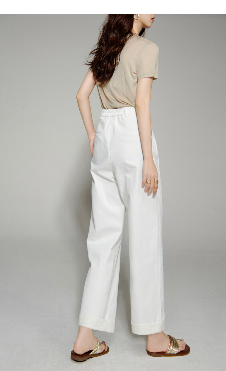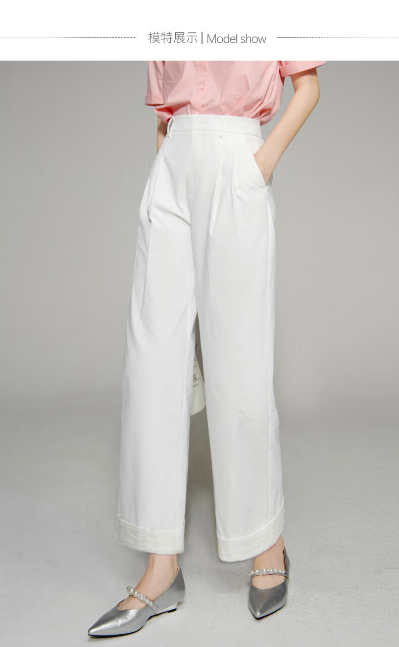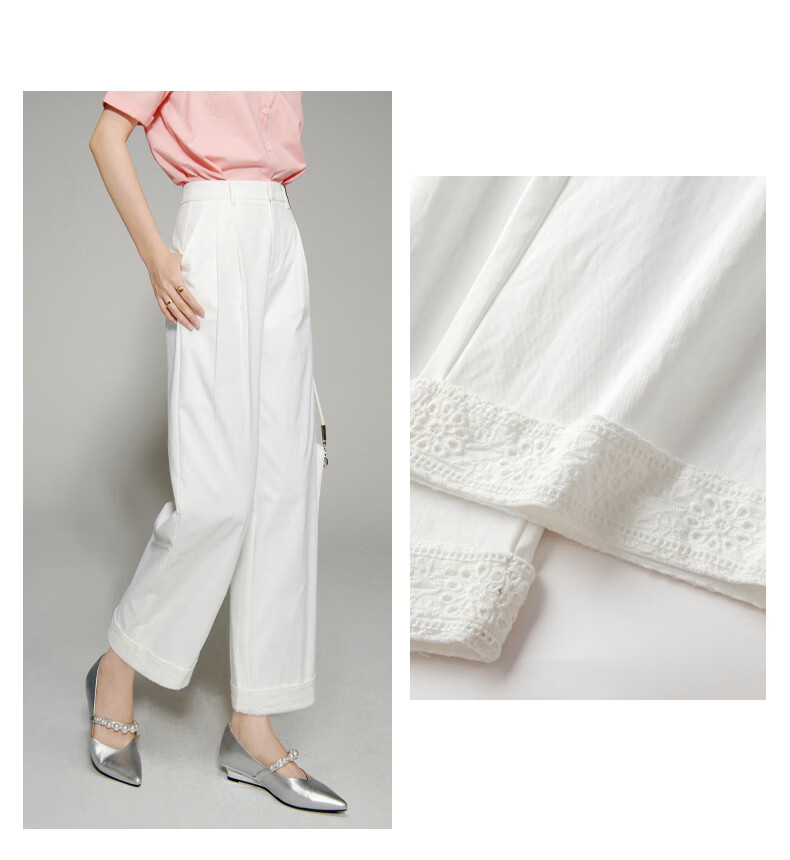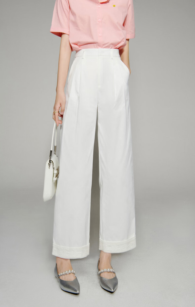 晚白【新品】2026年春款时尚花边直筒裤遮胯显瘦舒适休闲裤女 白色 26