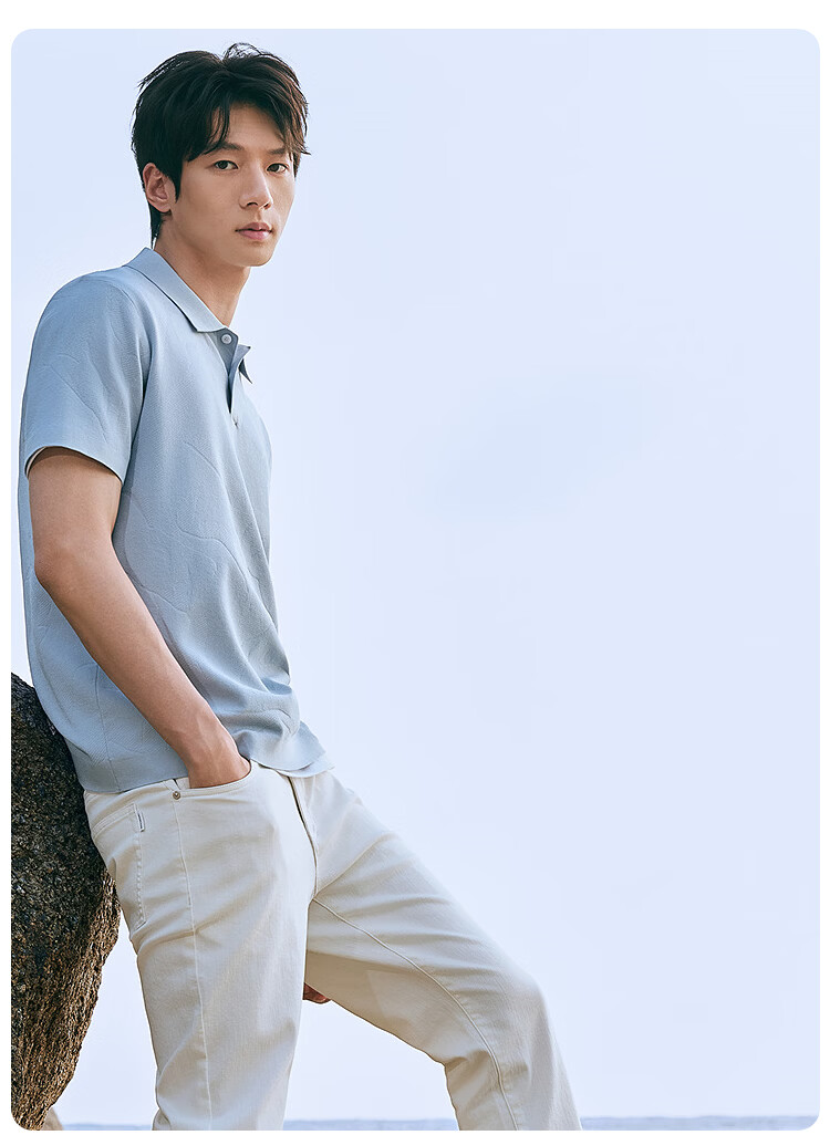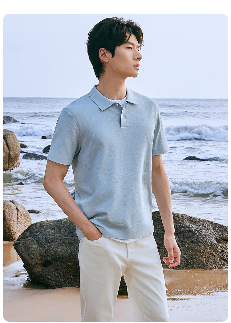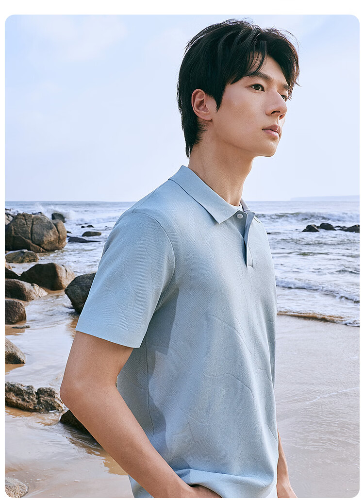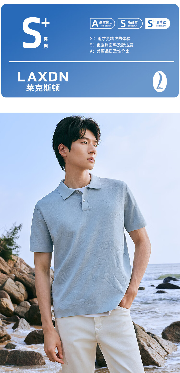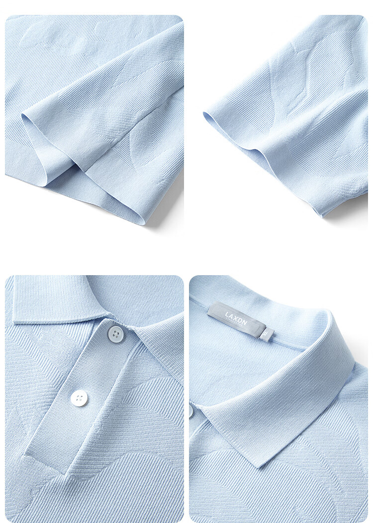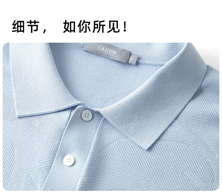 莱克斯顿(laxdn)短袖针织衫男夏季翻领纹理柔软亲肤弹力修身休闲男装上衣短袖t男 湖水蓝 S