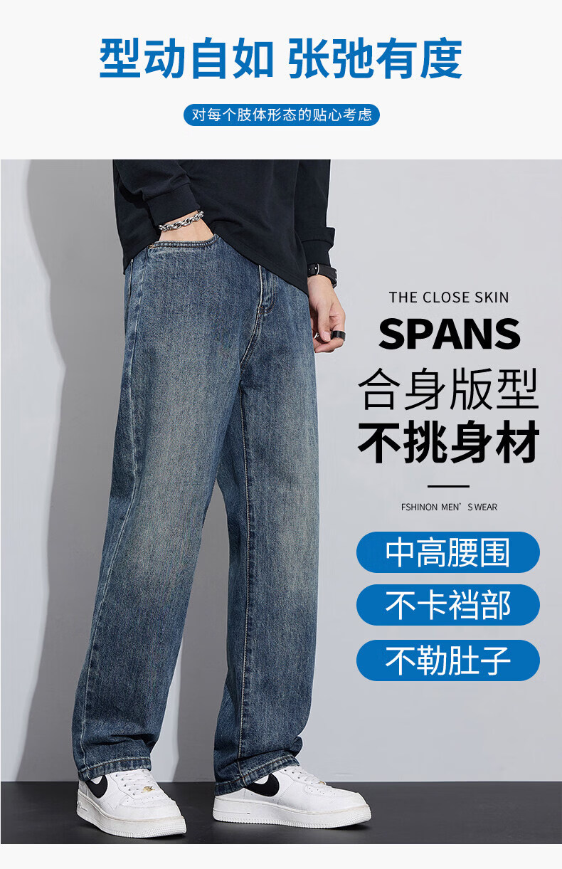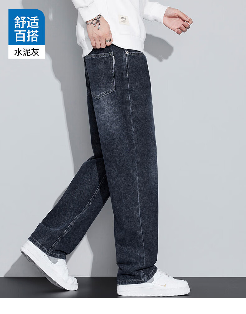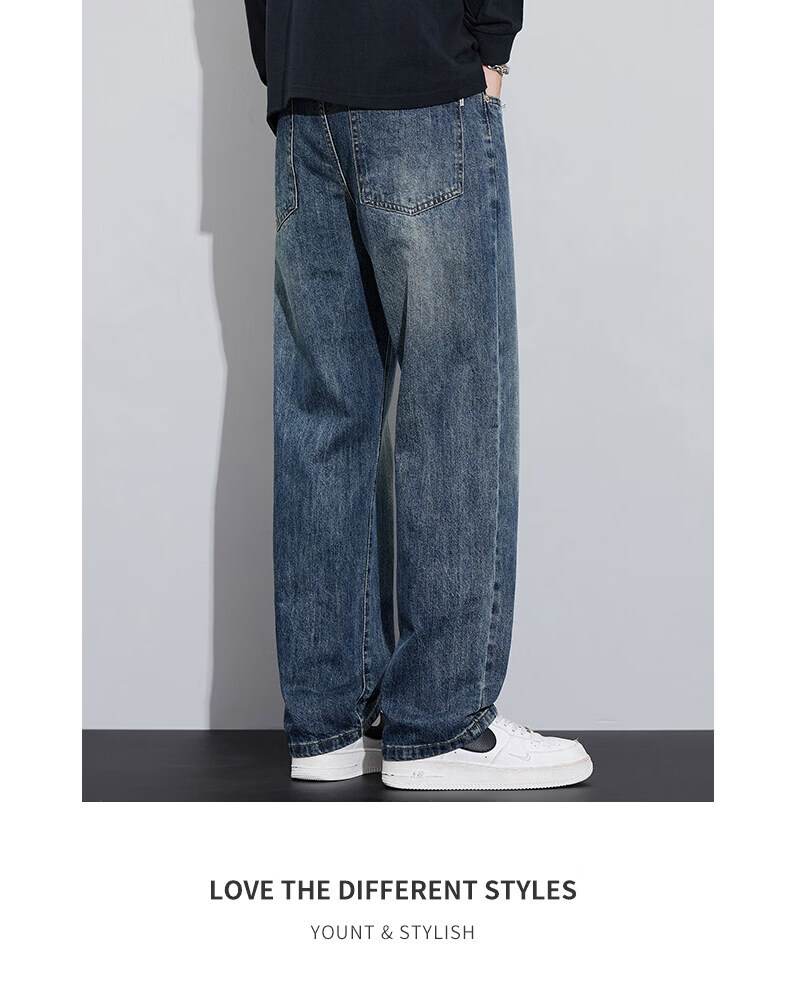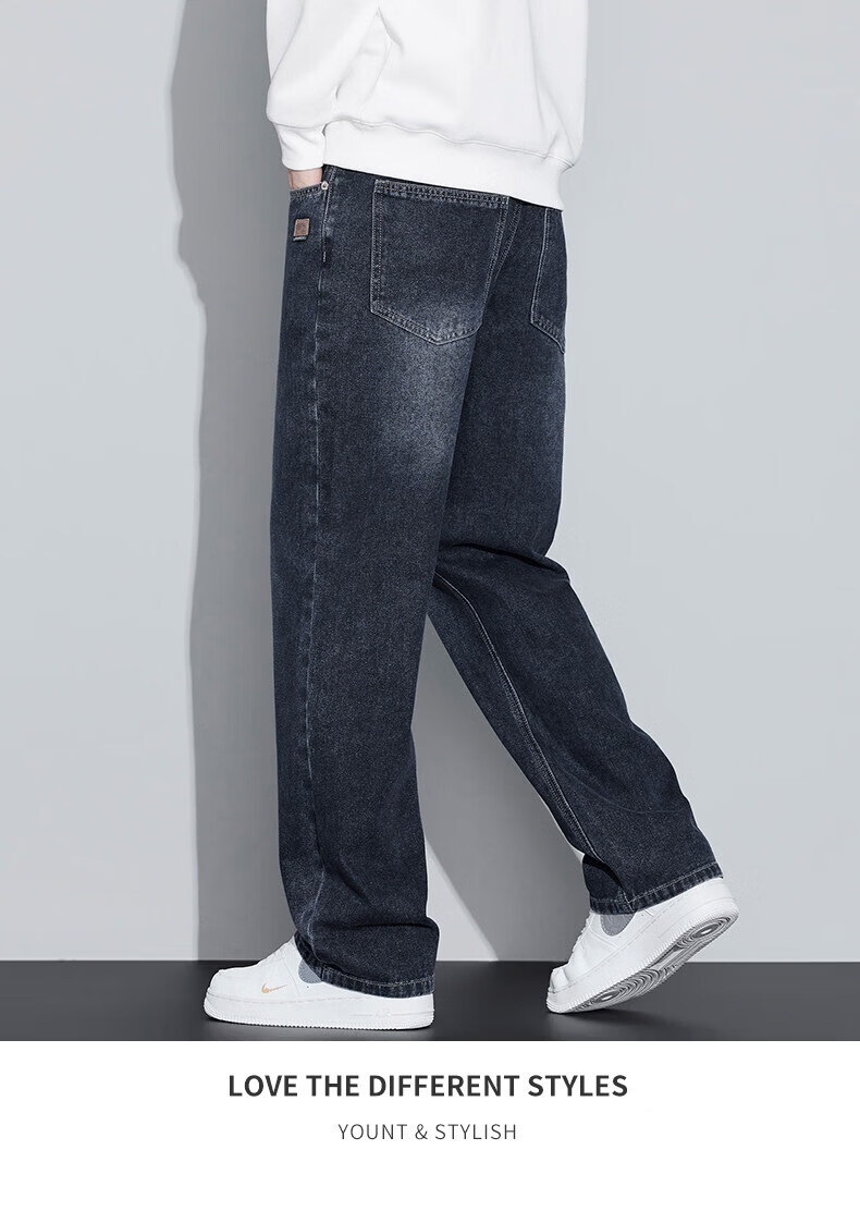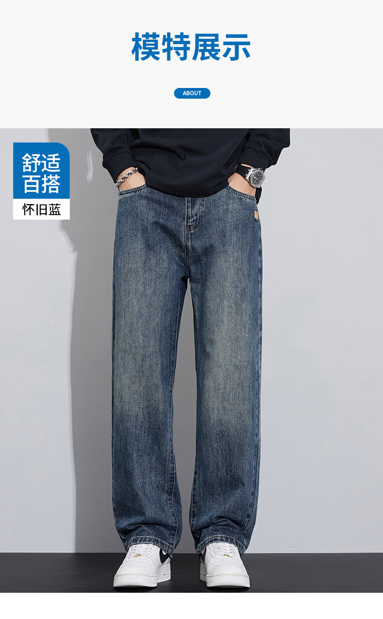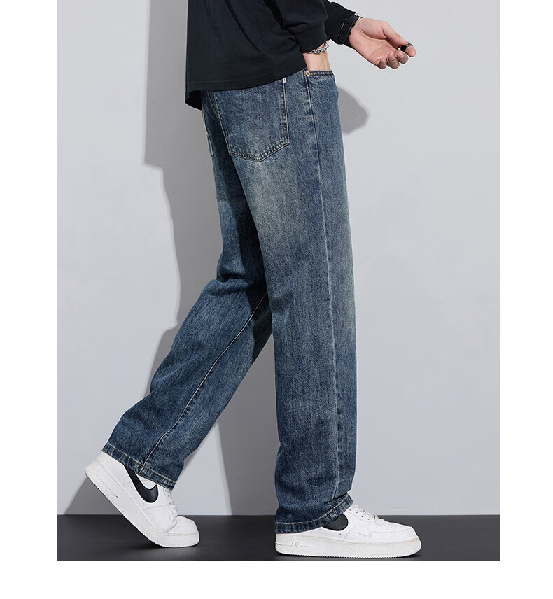 啄木鸟牛仔裤男士冬季新款宽松直筒水洗潮牌阔腿休闲百搭长裤子男 9321怀旧蓝 28