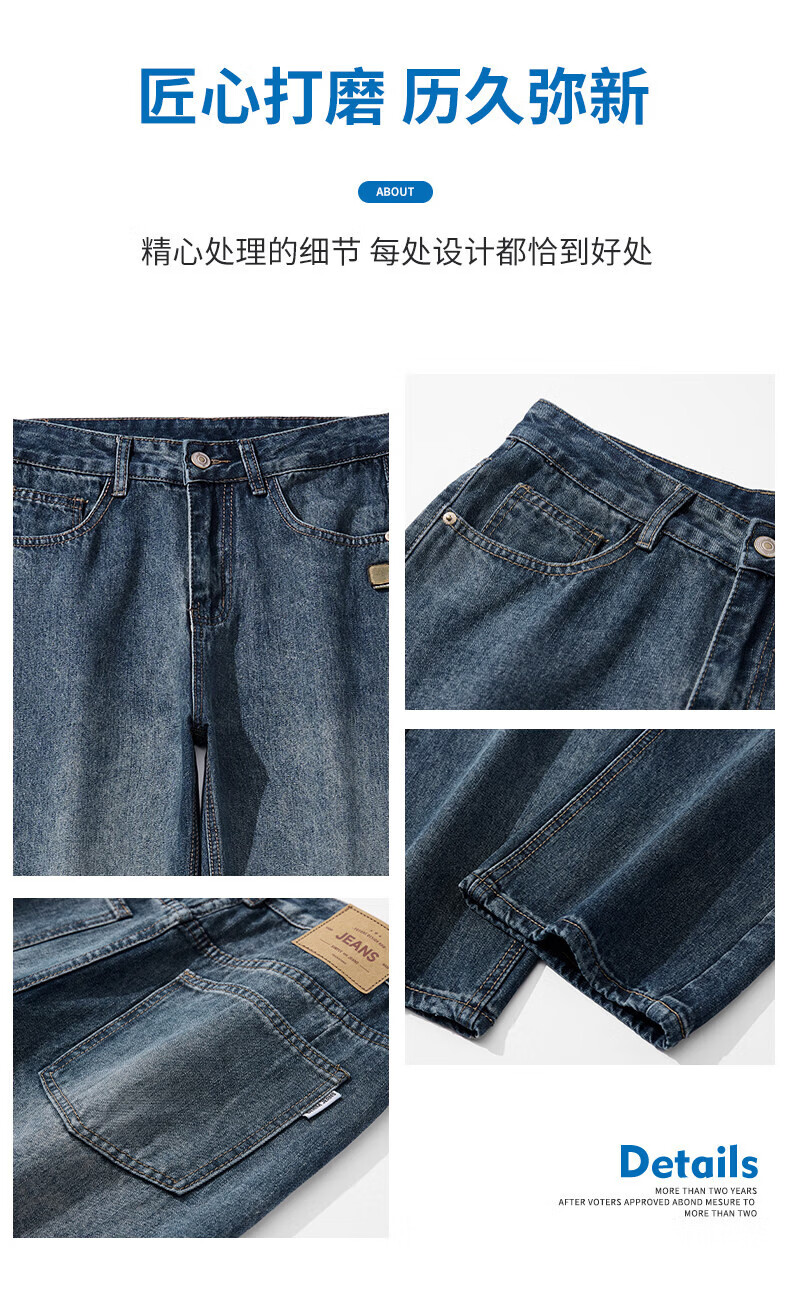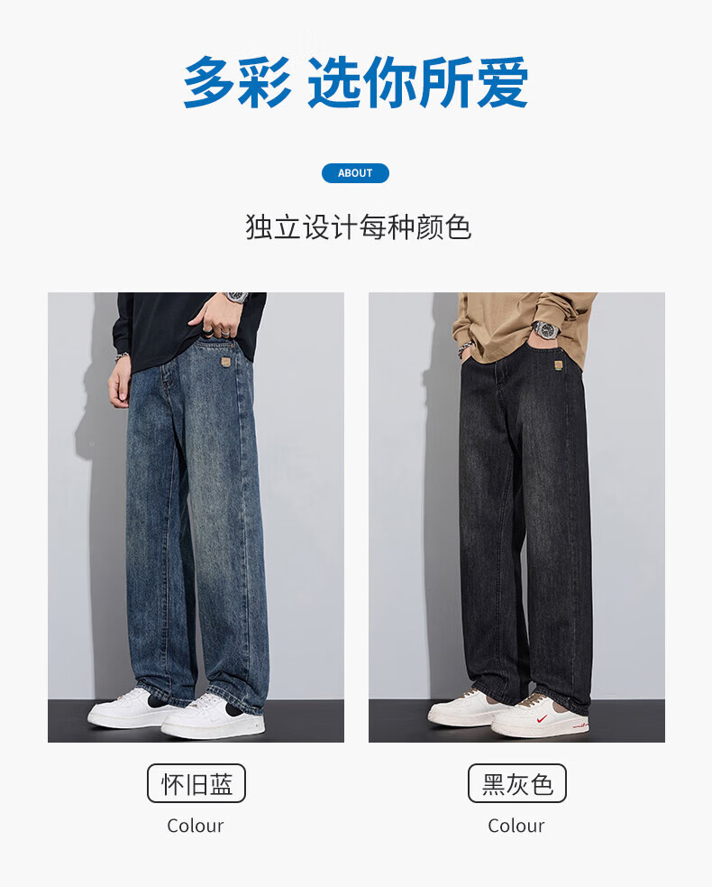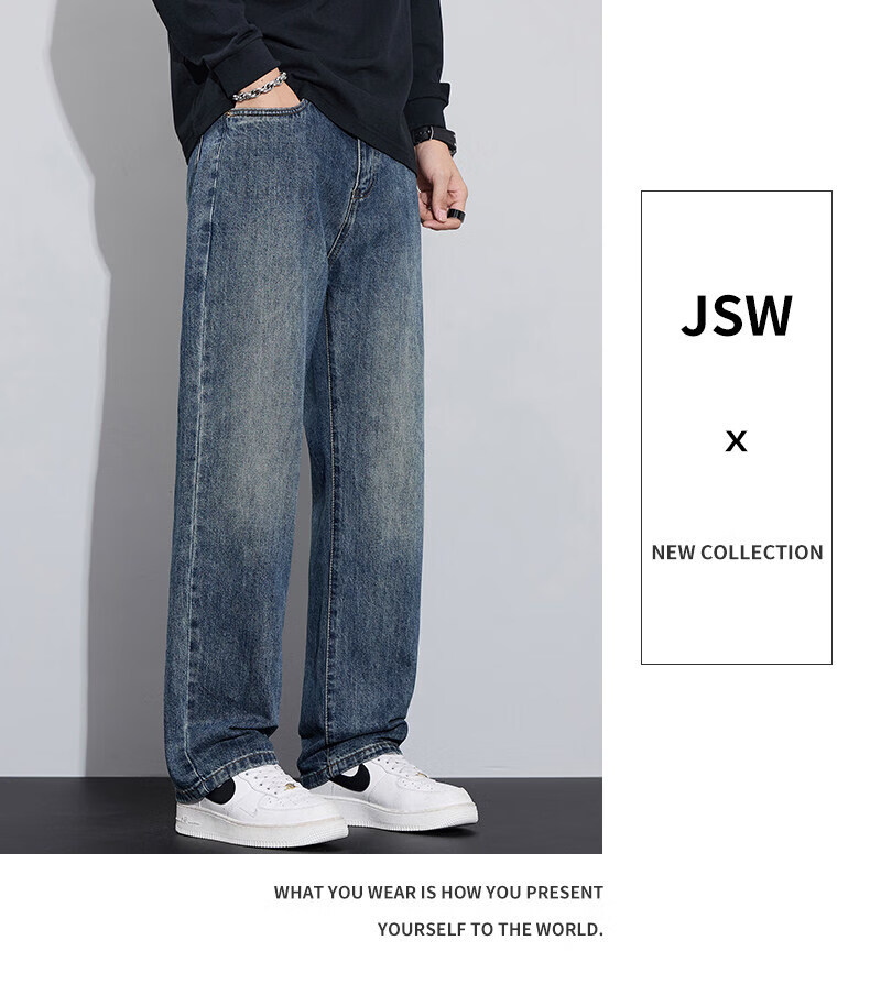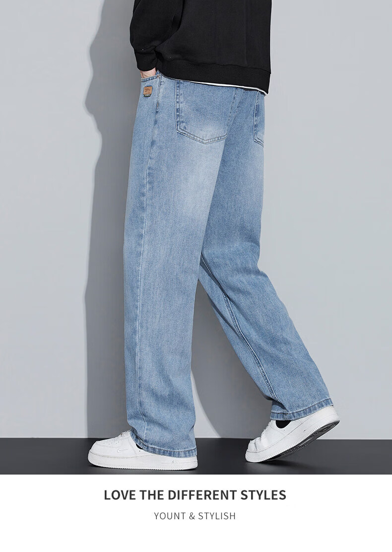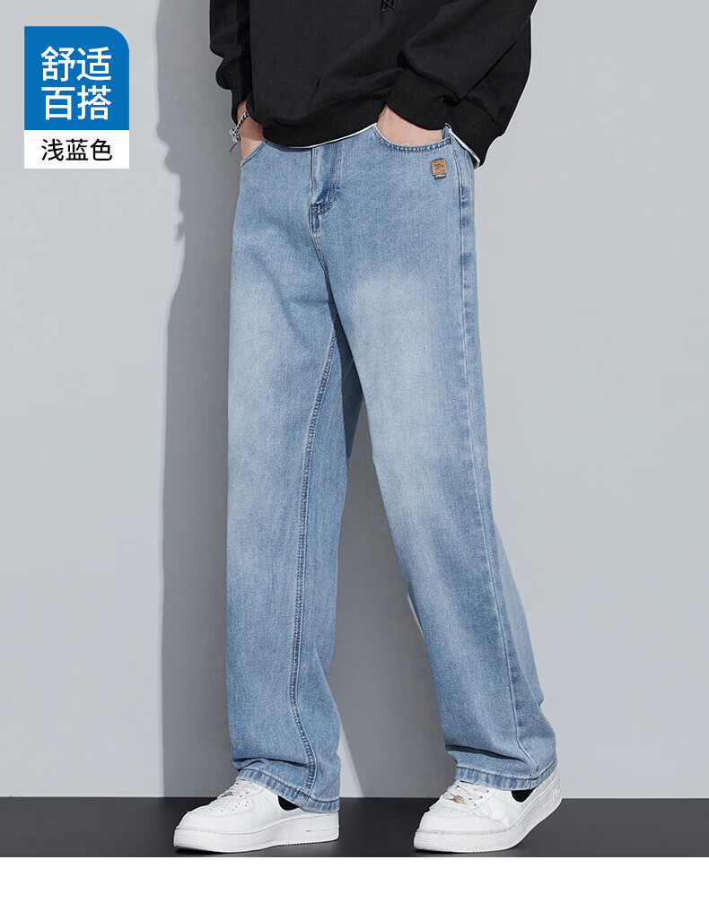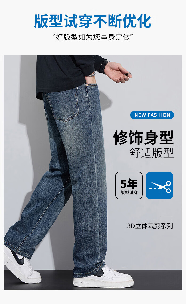 啄木鸟牛仔裤男士冬季新款宽松直筒水洗潮牌阔腿休闲百搭长裤子男 9321怀旧蓝 28