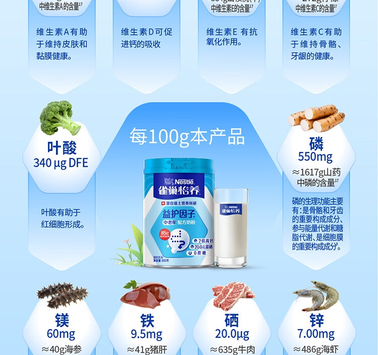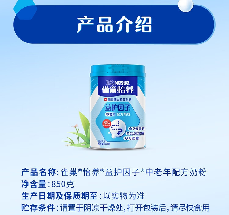 雀巢(Nestle)【年货节礼盒】怡养益护因子中老年奶粉高钙850g*2 年货礼盒送礼