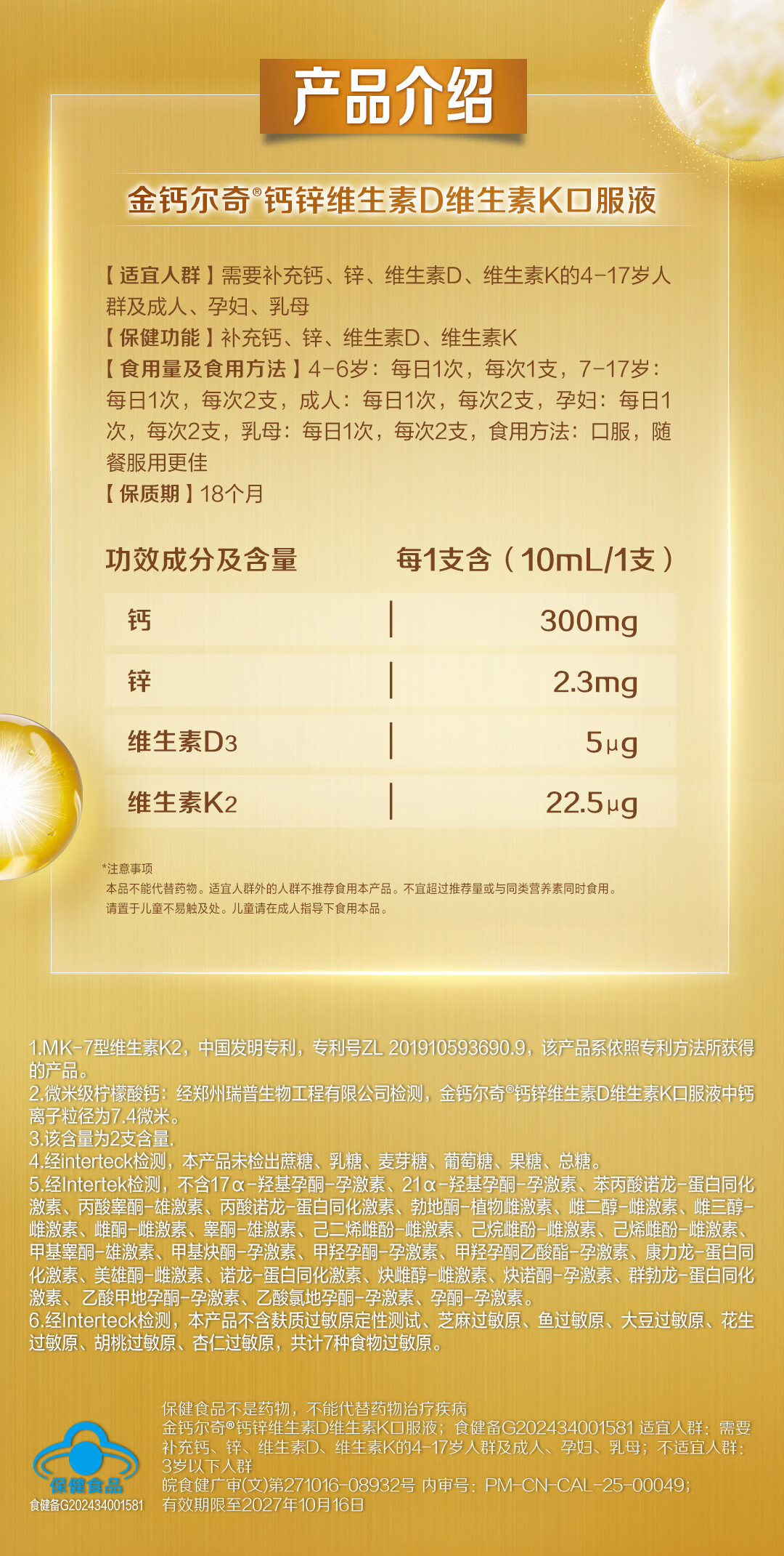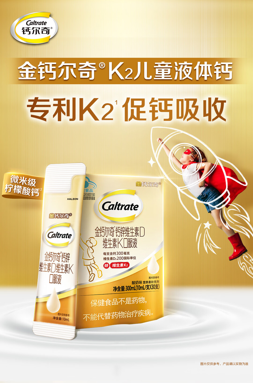 钙尔奇儿童液体柠檬酸钙90支 4岁+青少年助成长钙锌维生素DK VK2补钙片