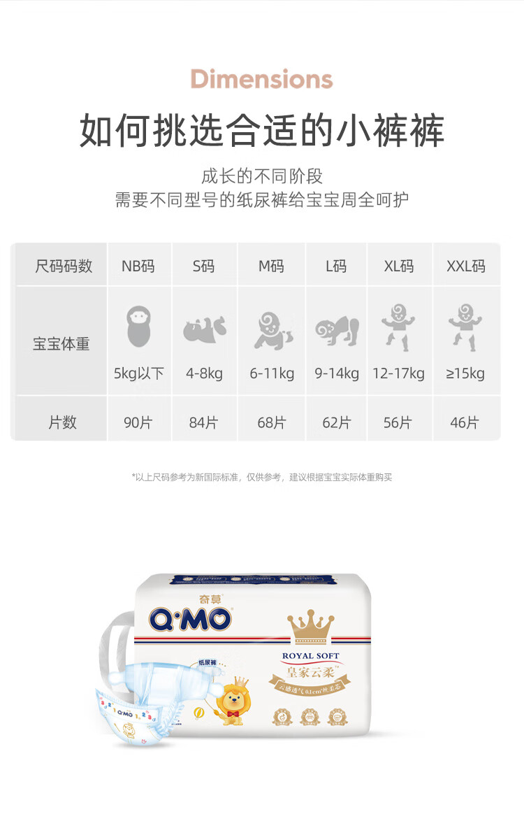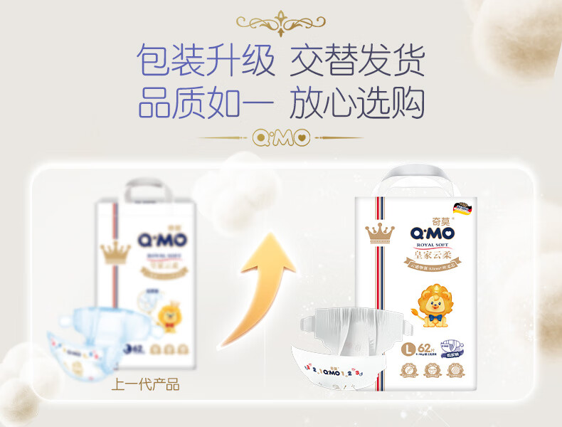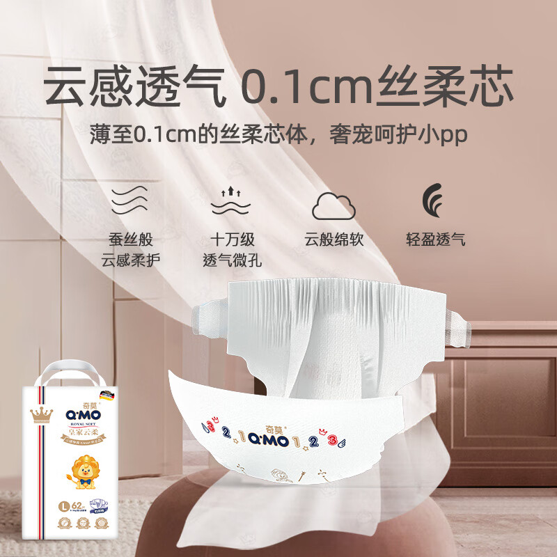 奇莫Q-MO皇家云柔纸尿裤L62片(9-14kg)尿不湿大号超薄透气