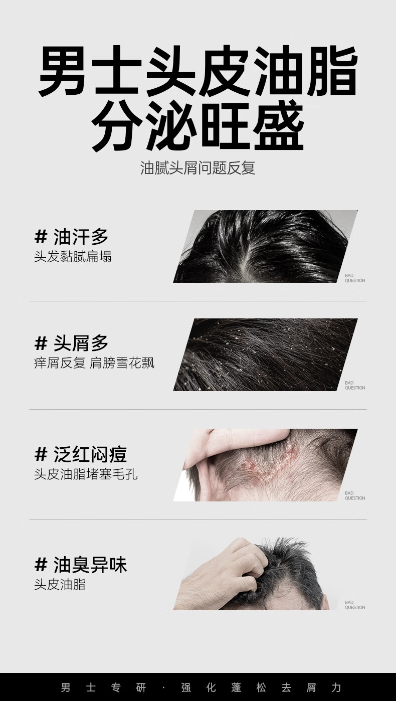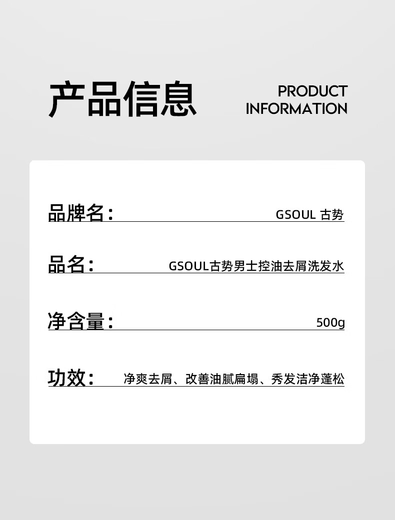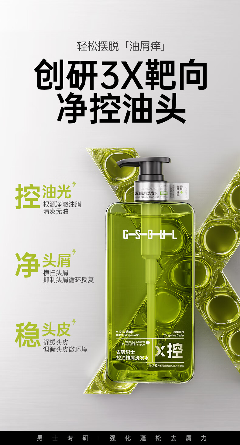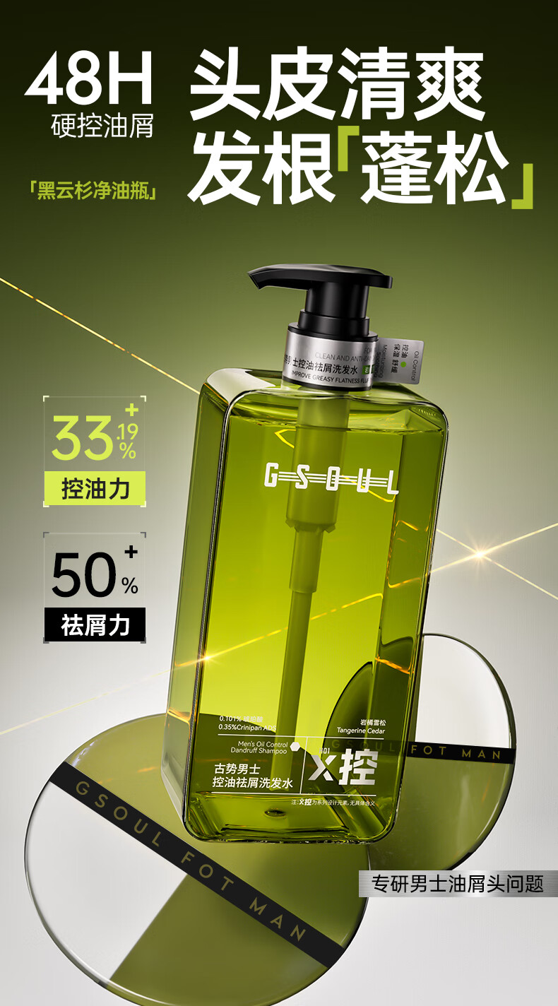 古势洗发水男士专用 控油去屑止痒持久蓬松留香 氨基酸洗头膏露500g