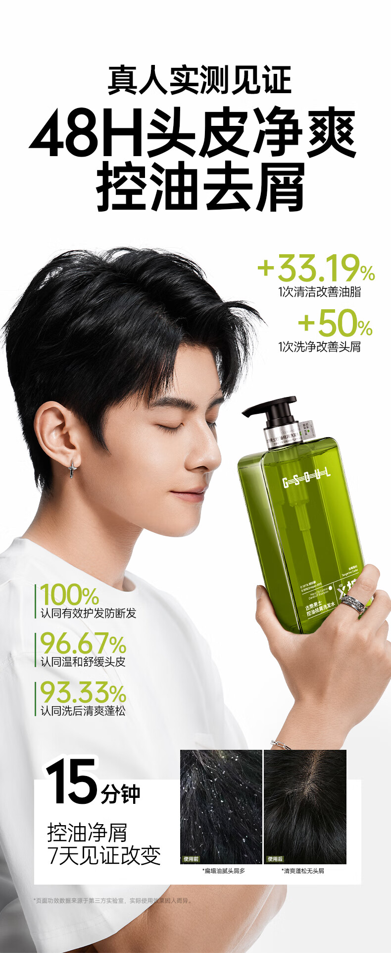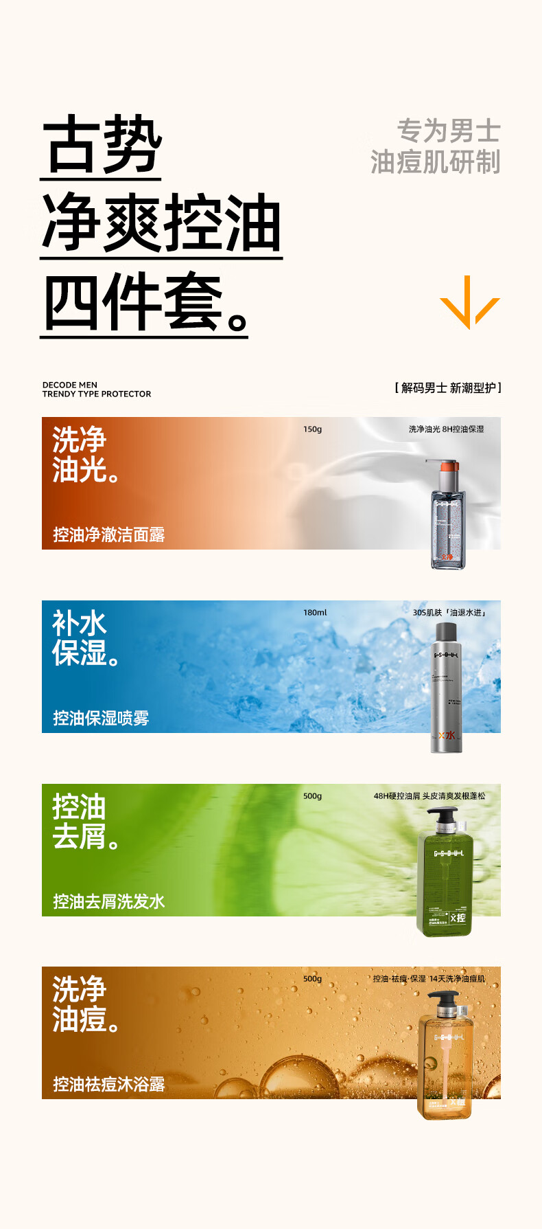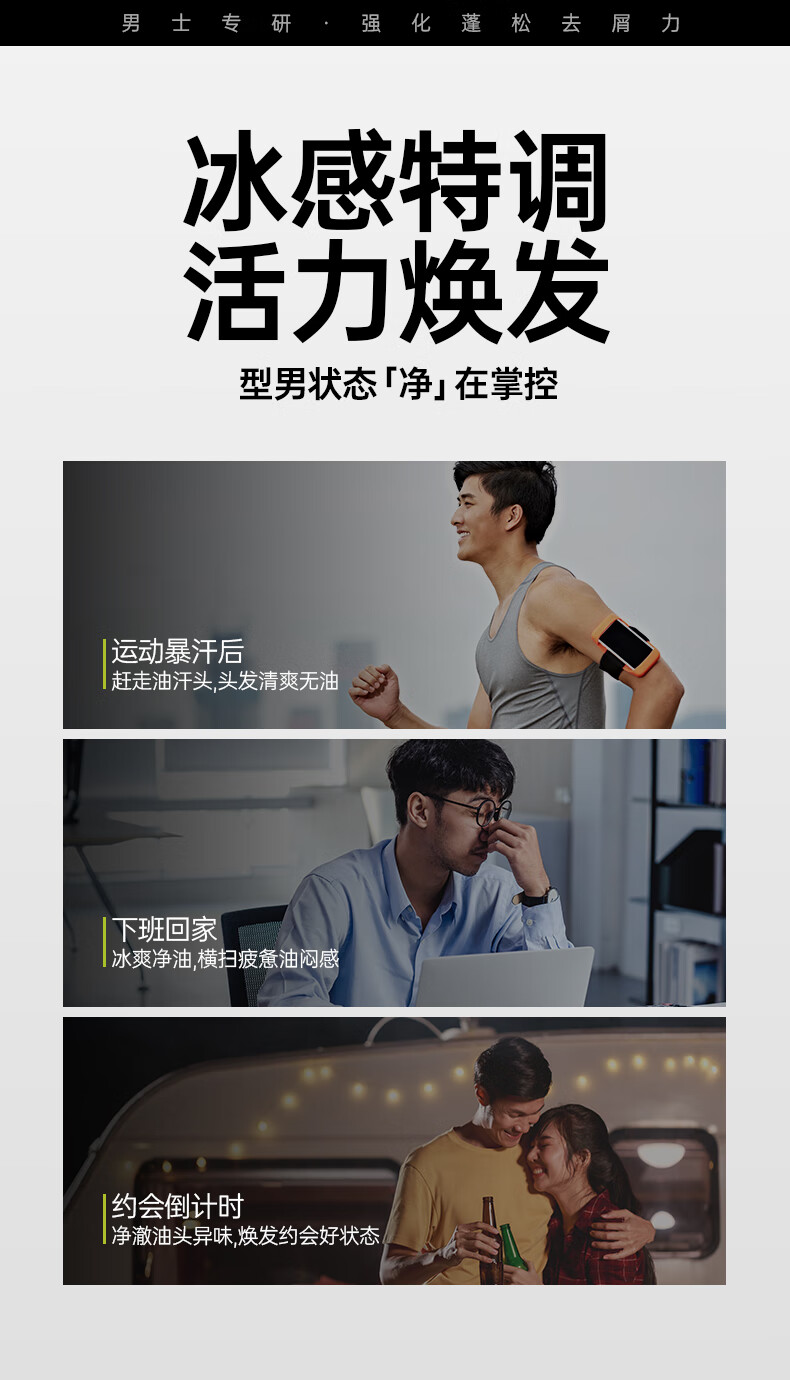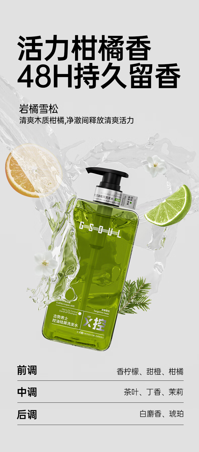 古势洗发水男士专用 控油去屑止痒持久蓬松留香 氨基酸洗头膏露500g