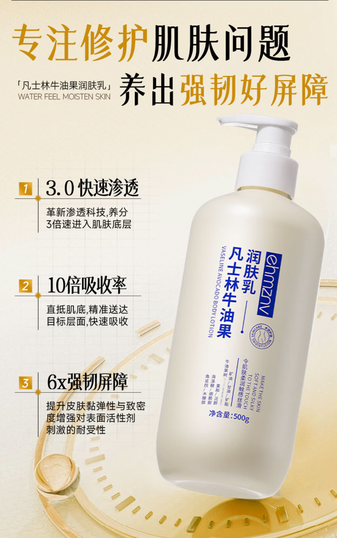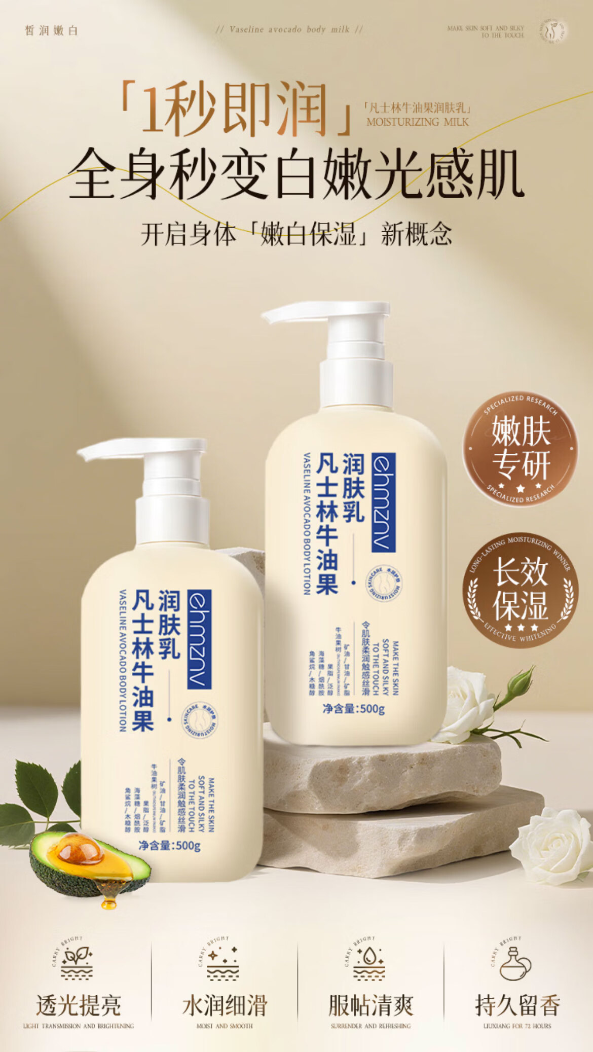 ehmznv身体乳女男士皮肤干燥起皮补水保湿润肤乳秋冬滋润 凡士林牛油果身体乳 500g 1瓶