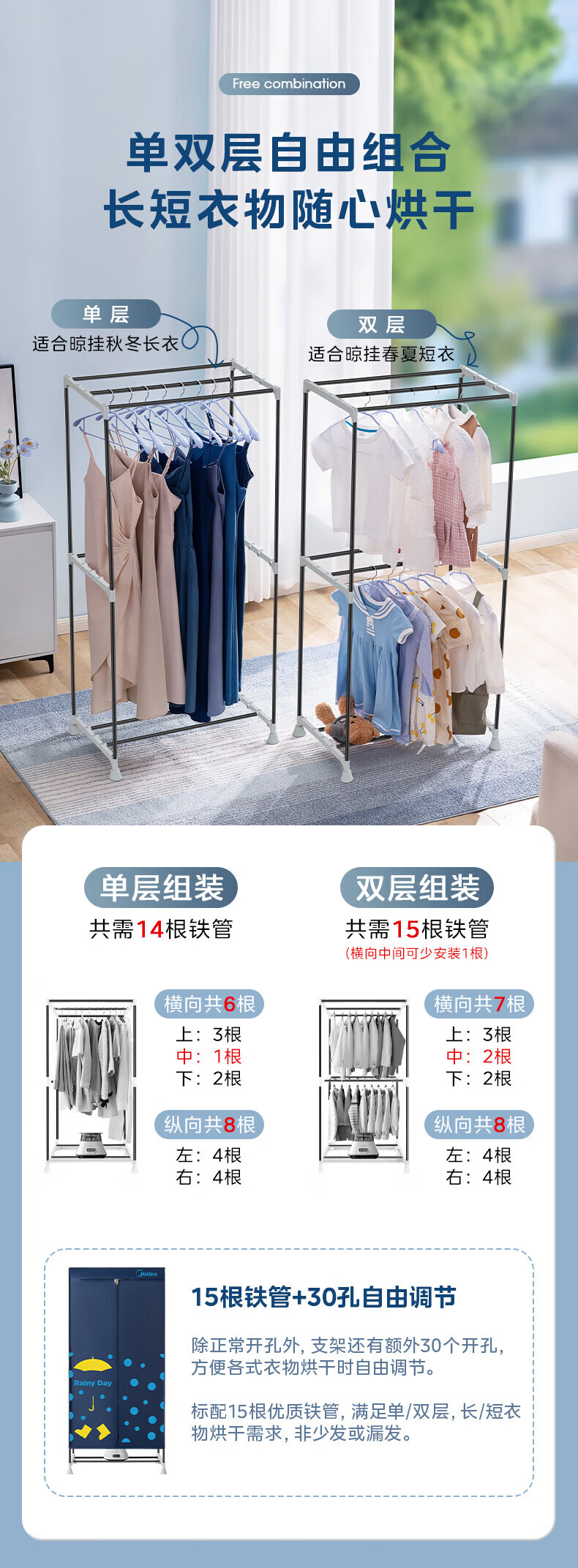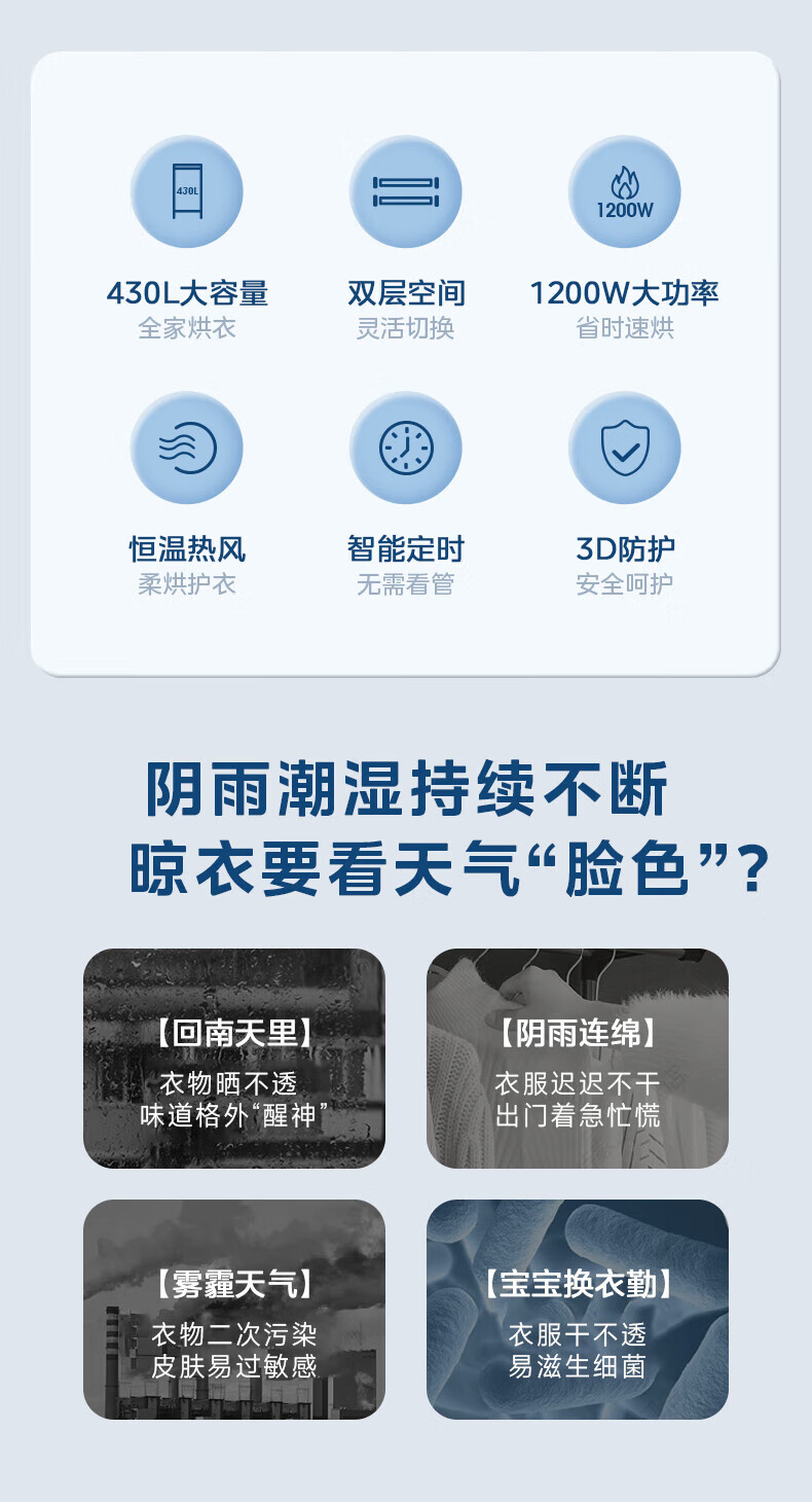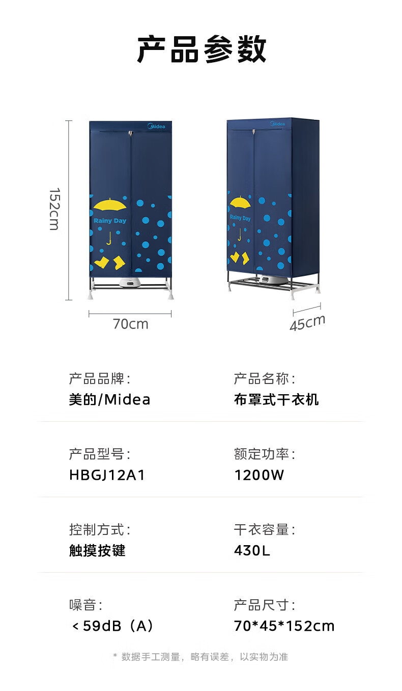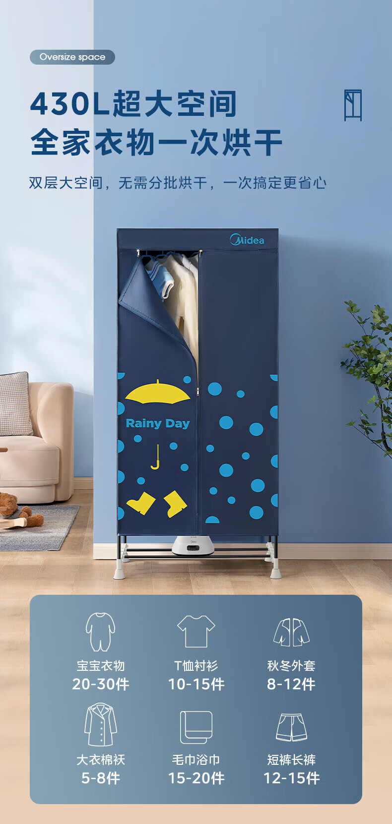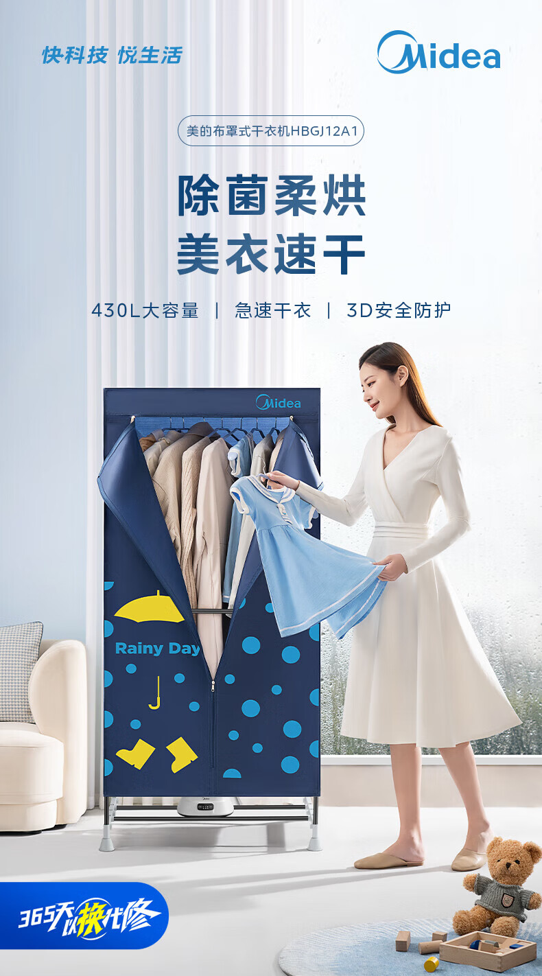 美的(Midea)【430升大容量】干衣机烘干机家用烘衣物护理机烘鞋婴儿内裤脱水小型除菌除螨烘衣机/HBGJ12A1