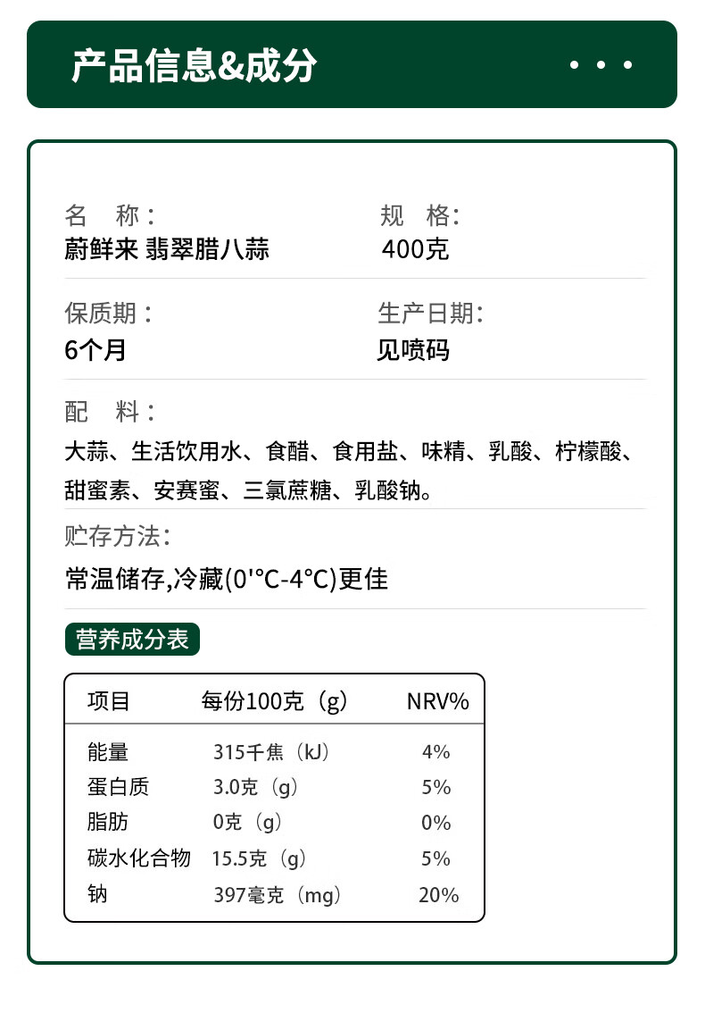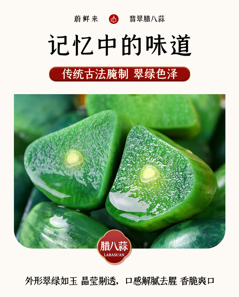 蔚鲜来特级翡翠腊八蒜400g 出口级品质 山东特产醋泡蒜腌大蒜春节也送货