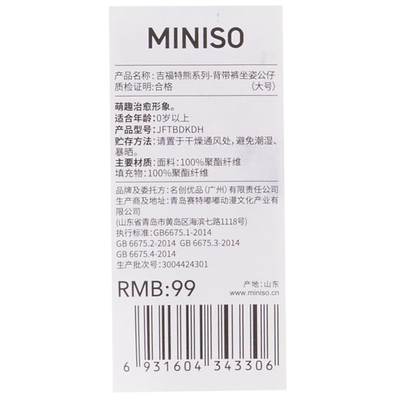 名创优品(MINISO)吉福特熊背带裤大号公仔儿童玩具毛绒玩偶娃娃抱枕生日礼物女
