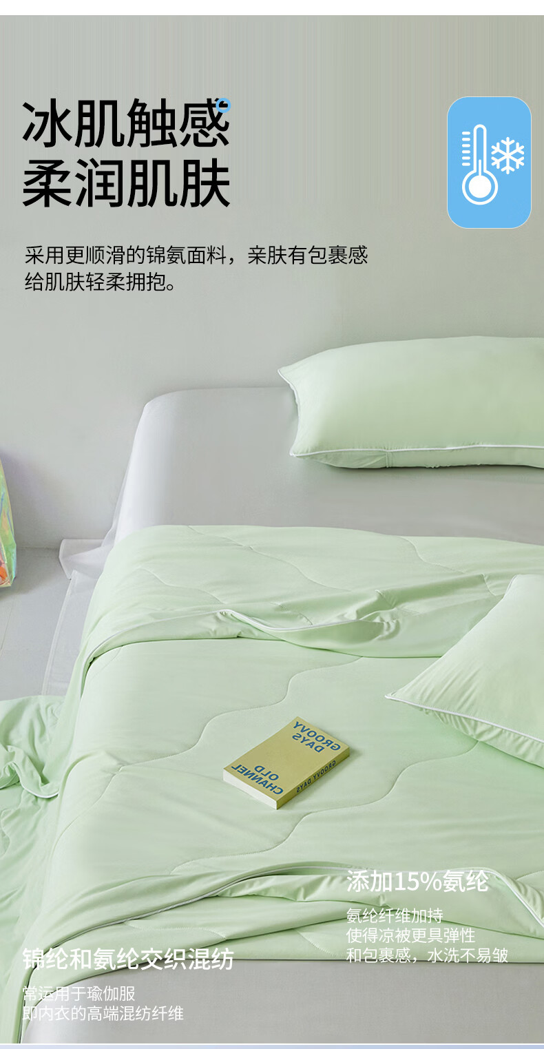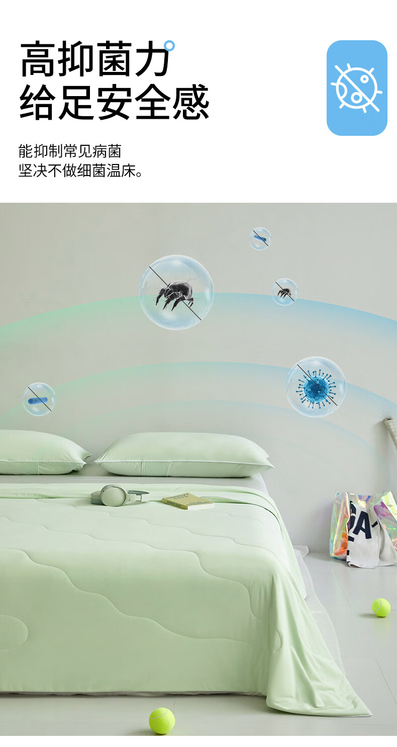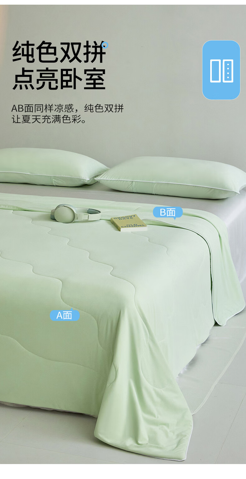 水星家纺被子夏凉被 空调被可机洗凉感天丝棉夏被 A类夏被 植愈舒爽【60S莱赛尔纤维/A类抑菌】绿 200cm*230cm