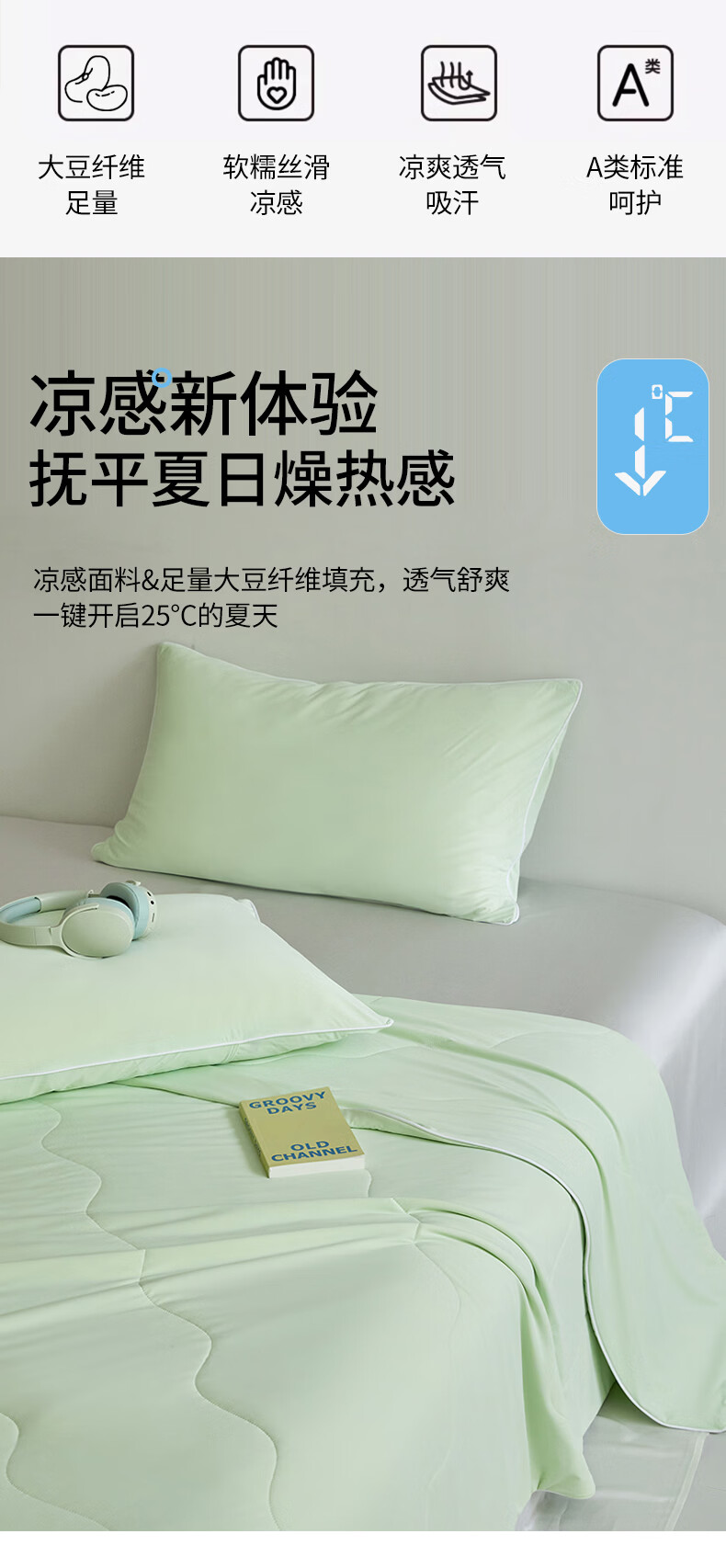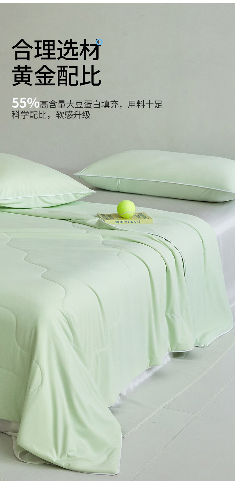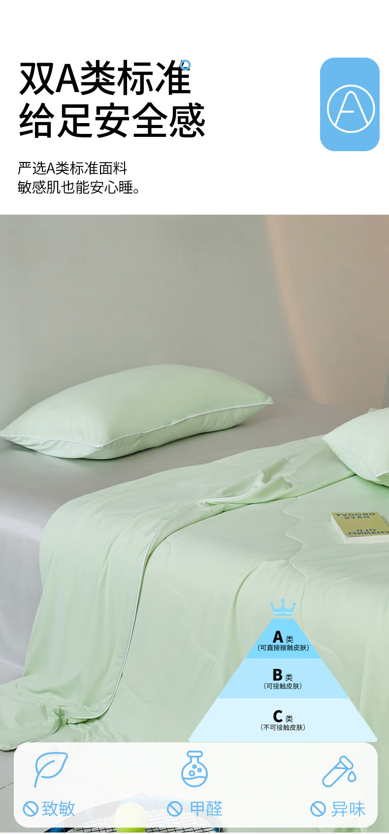 水星家纺被子夏凉被 空调被可机洗凉感天丝棉夏被 A类夏被 植愈舒爽【60S莱赛尔纤维/A类抑菌】绿 200cm*230cm