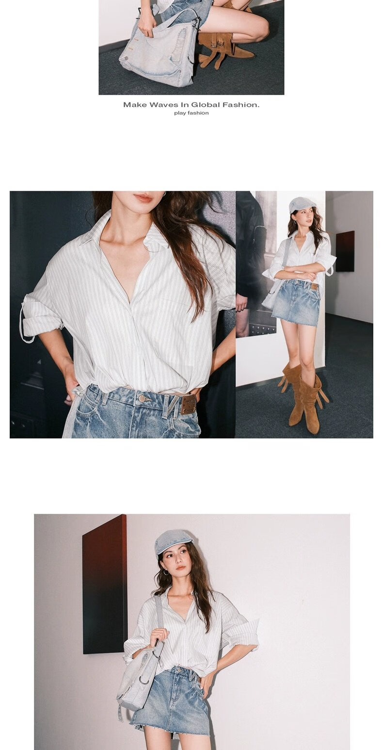 UR2025秋季新款女装流动哲学潮流扭结条纹罩衫衬衫UWJ250058