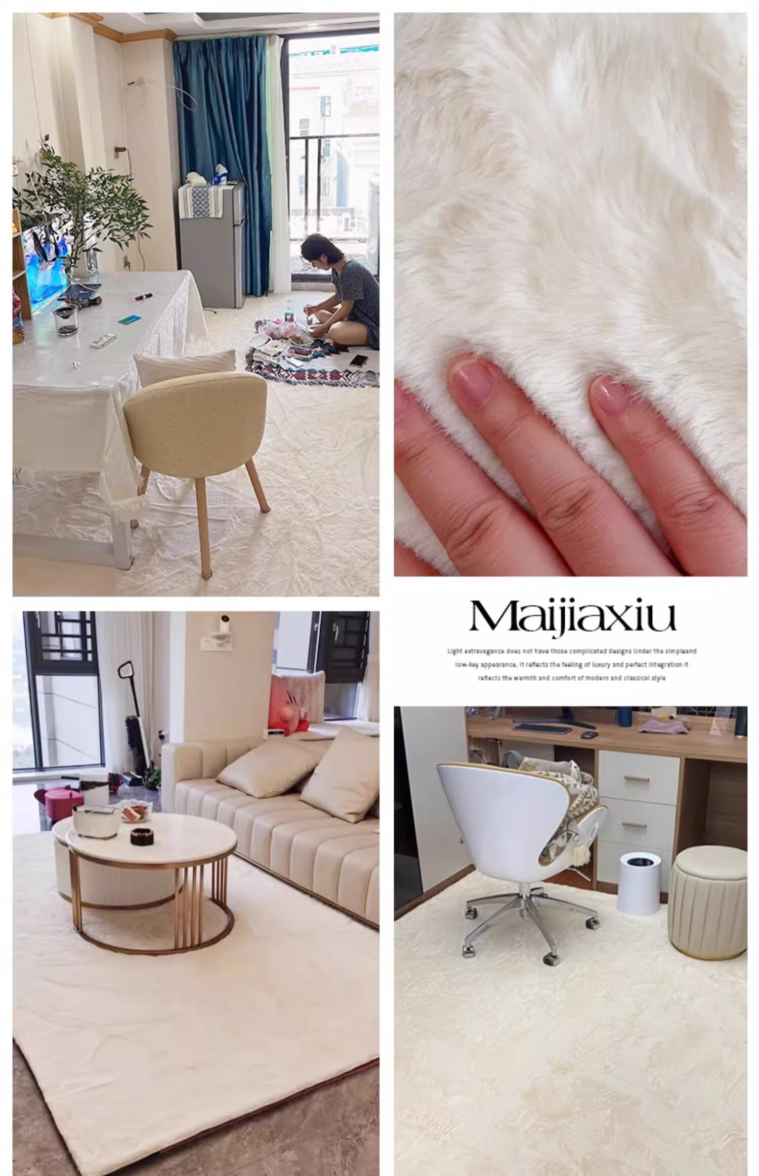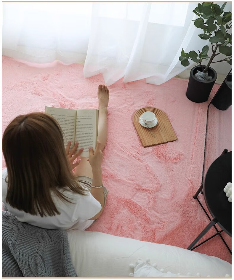 兴连心地毯卧室客厅2025新款可擦免洗仿兔毛绒床边毛毯地垫飘窗垫厚白色 兔毛米白色【短毛】 定制请联系客服