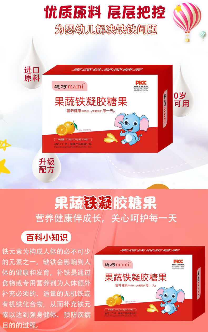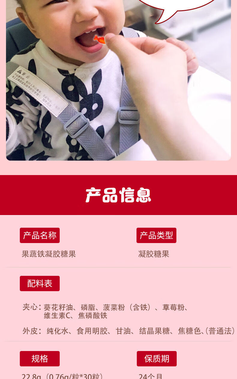 补铁剂果蔬铁补铁补气婴幼儿宝宝儿童补血营养品维生素 2盒装