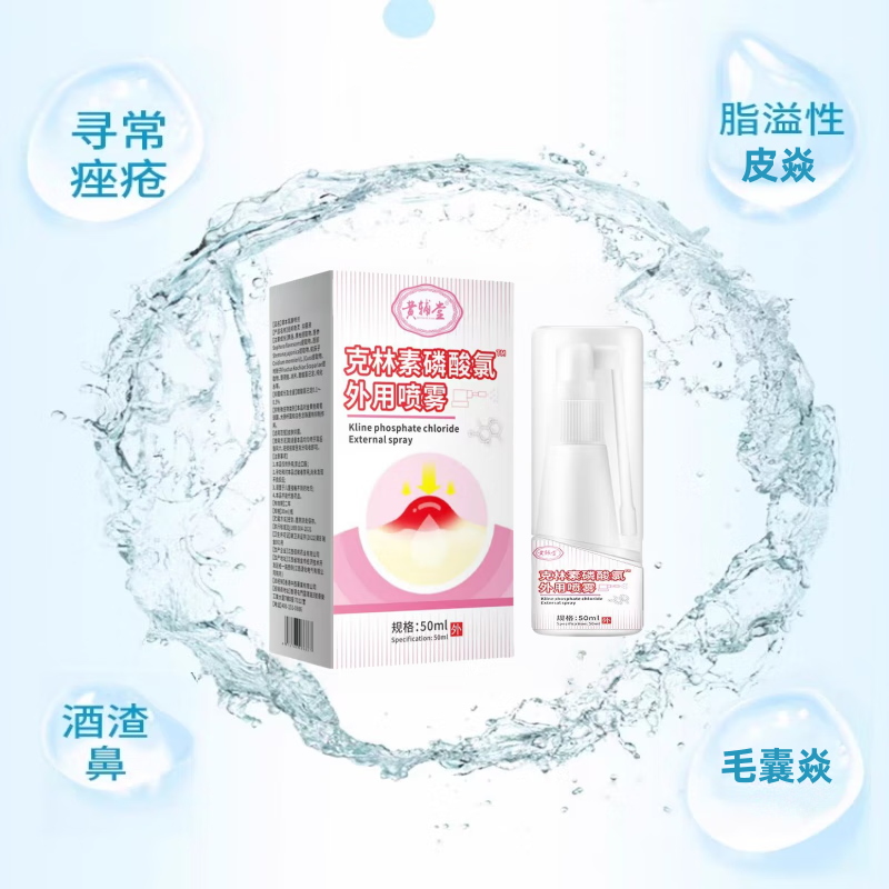 黄辅堂克林素磷酸霉喷雾毛囊型痘痘专用脸上面部痘胸前痘背部痘头部痤疮 祛痘抑菌痤疮专用青少年【8瓶*50ml】巩固装