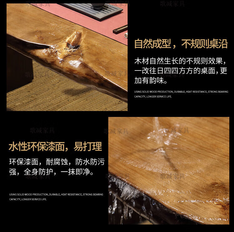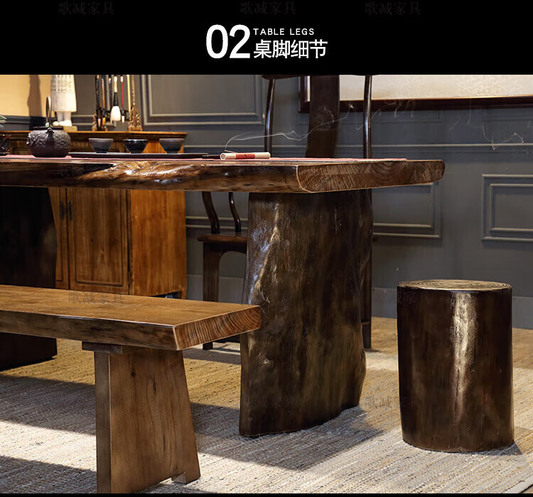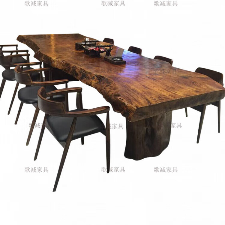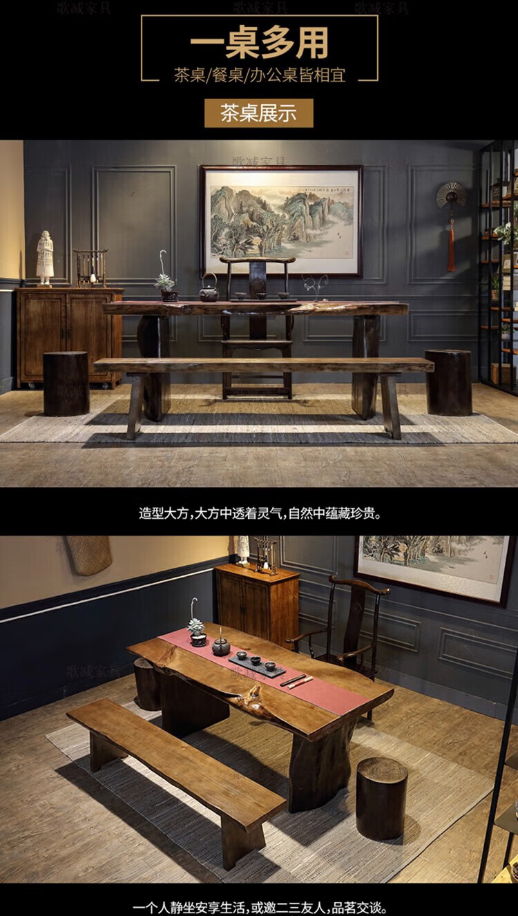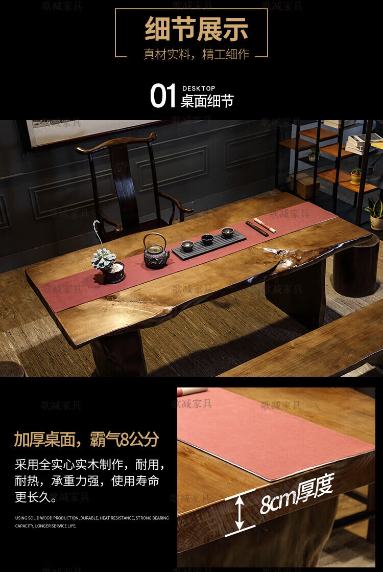 歌减2025新款实木大板茶桌现代简约功夫茶台新中式禅意办公室原木泡茶 单桌:300*(90-100)*75(厚8cm)