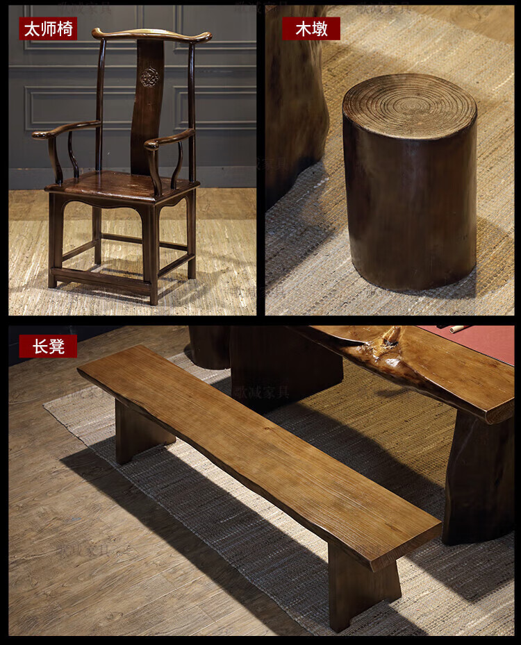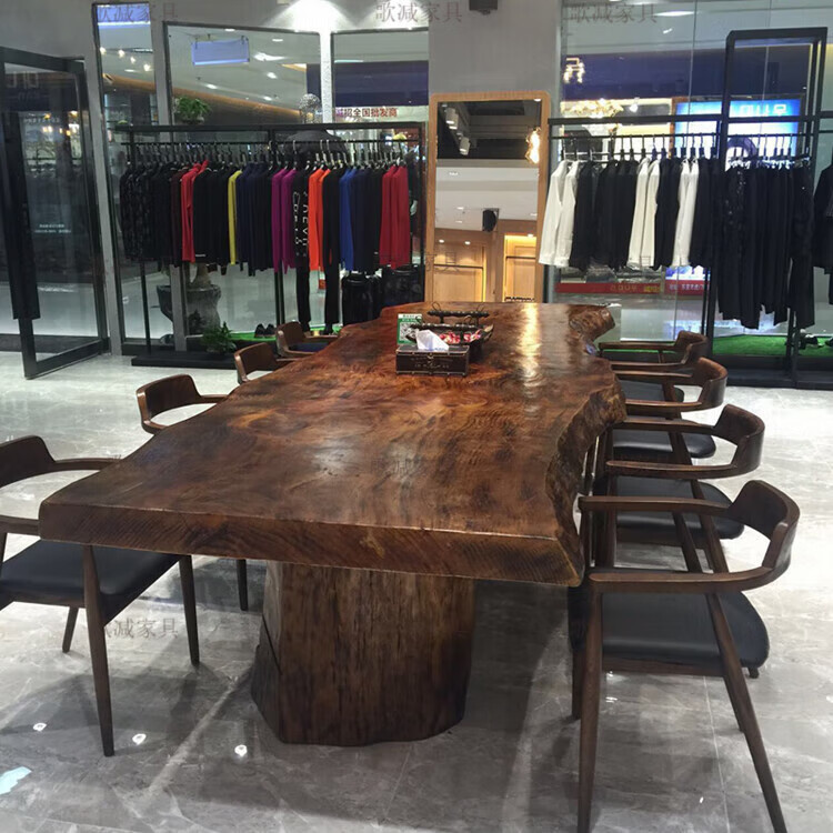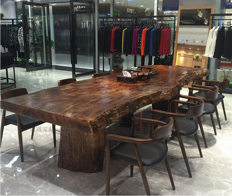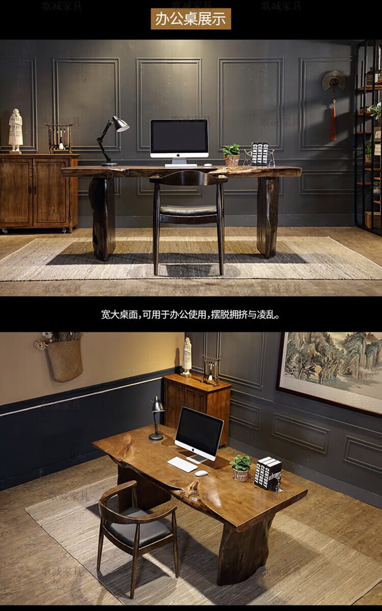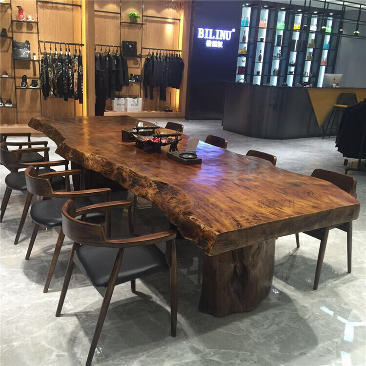 歌减2025新款实木大板茶桌现代简约功夫茶台新中式禅意办公室原木泡茶 单桌:300*(90-100)*75(厚8cm)