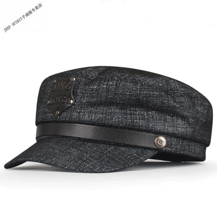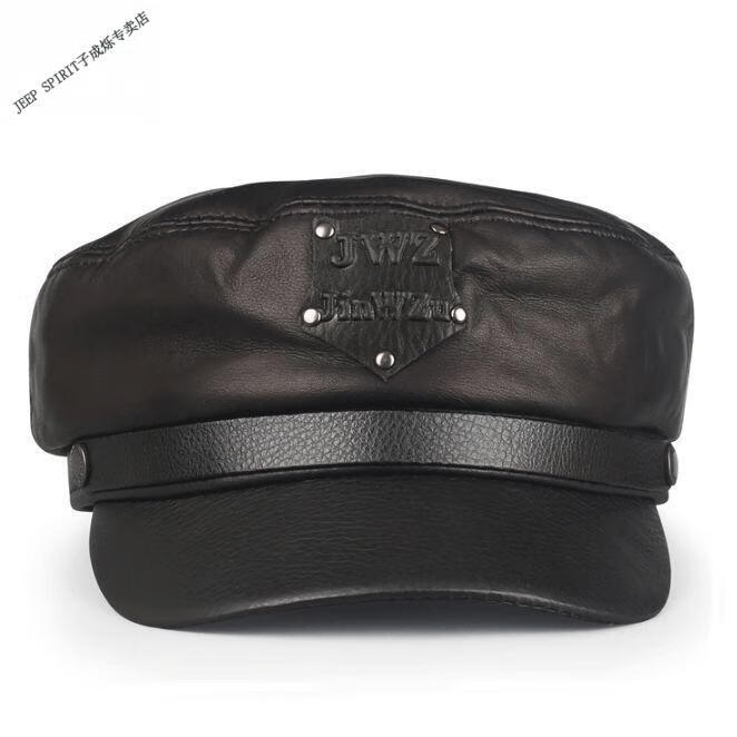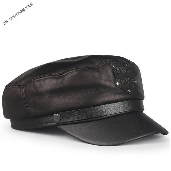 JEEP羊皮真皮帽子潮鸭舌男女平顶朋克秋冬季军帽英伦中老年人机车冬天 黑色羊皮 M 大码XXL(适合59-60c围)