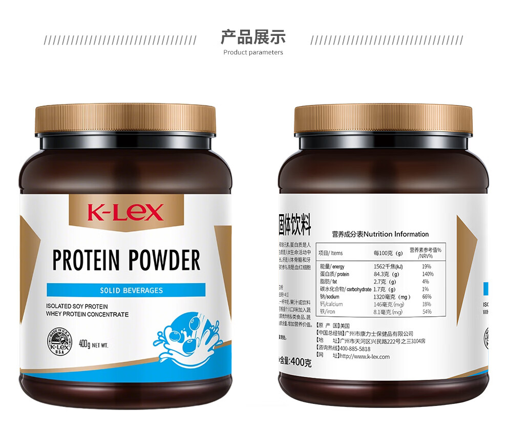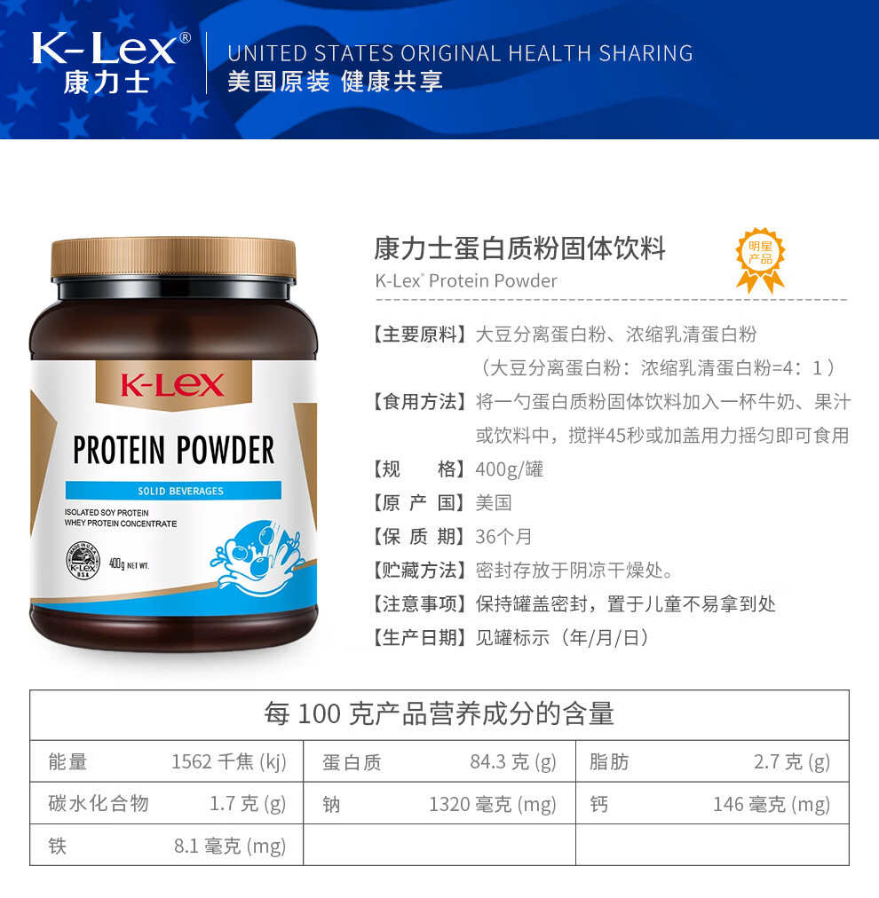 康力士美国原装进口蛋白质粉原味大豆分离蛋白动植物双蛋白固体饮料 400g*2桶