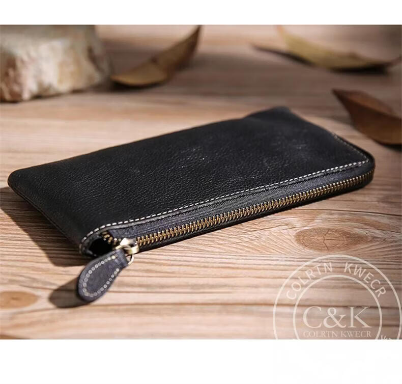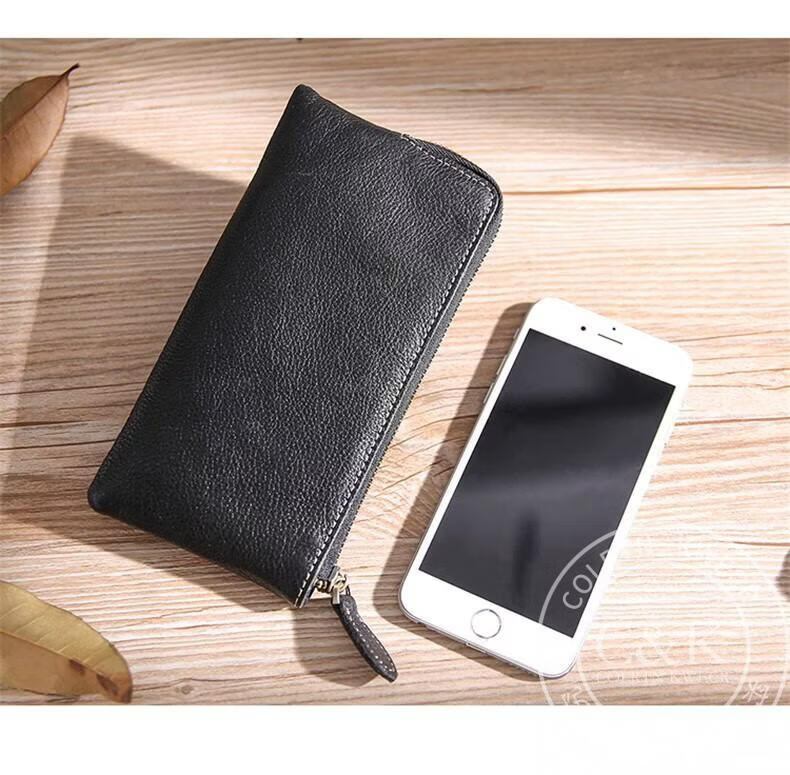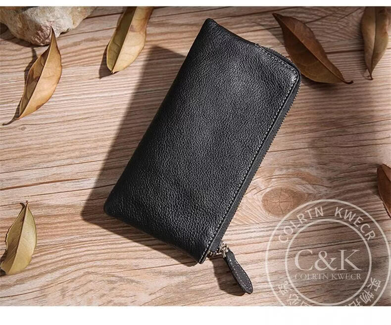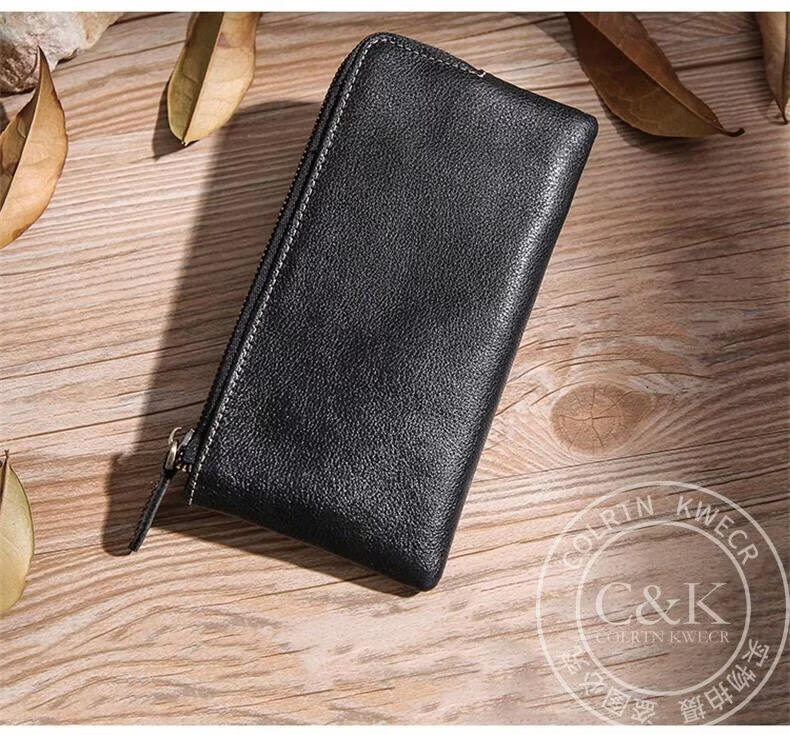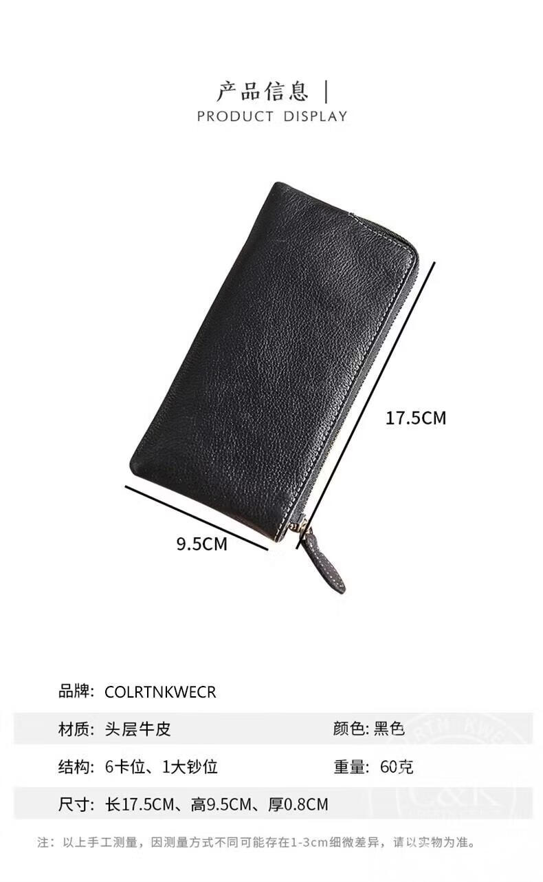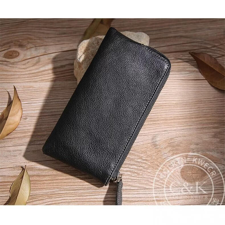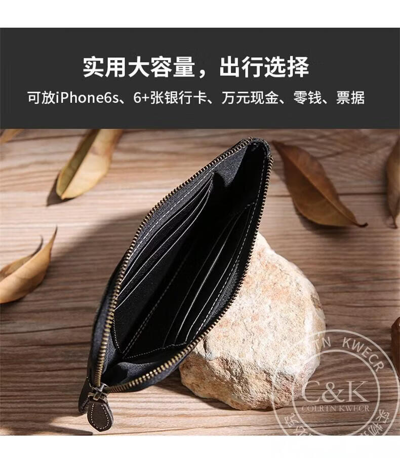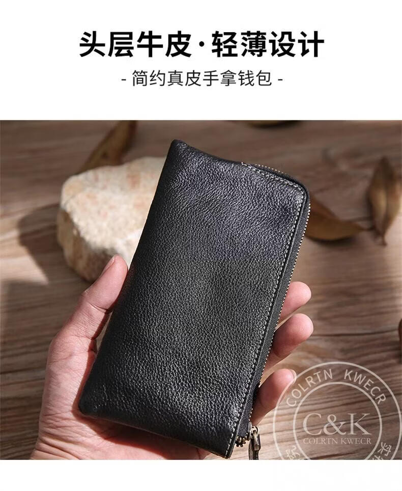 Colrtn Kwecr 男士手包真皮长皮夹钱包手机包头层牛皮时尚多功能手拿包奢侈品 黑色17.5*9.5*0.8