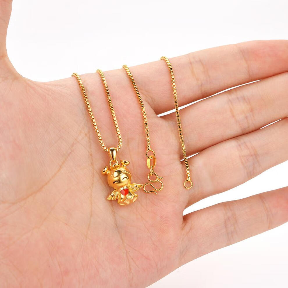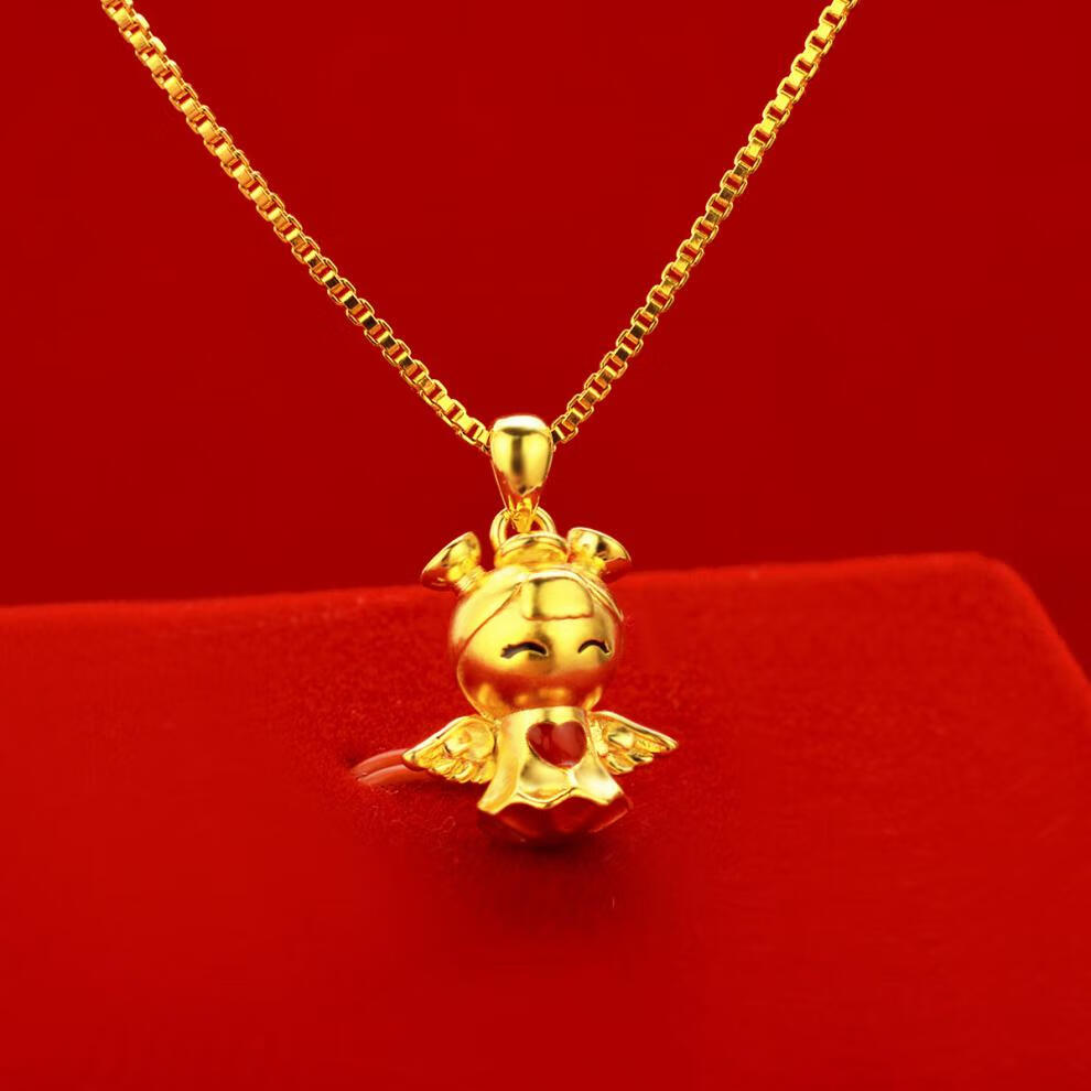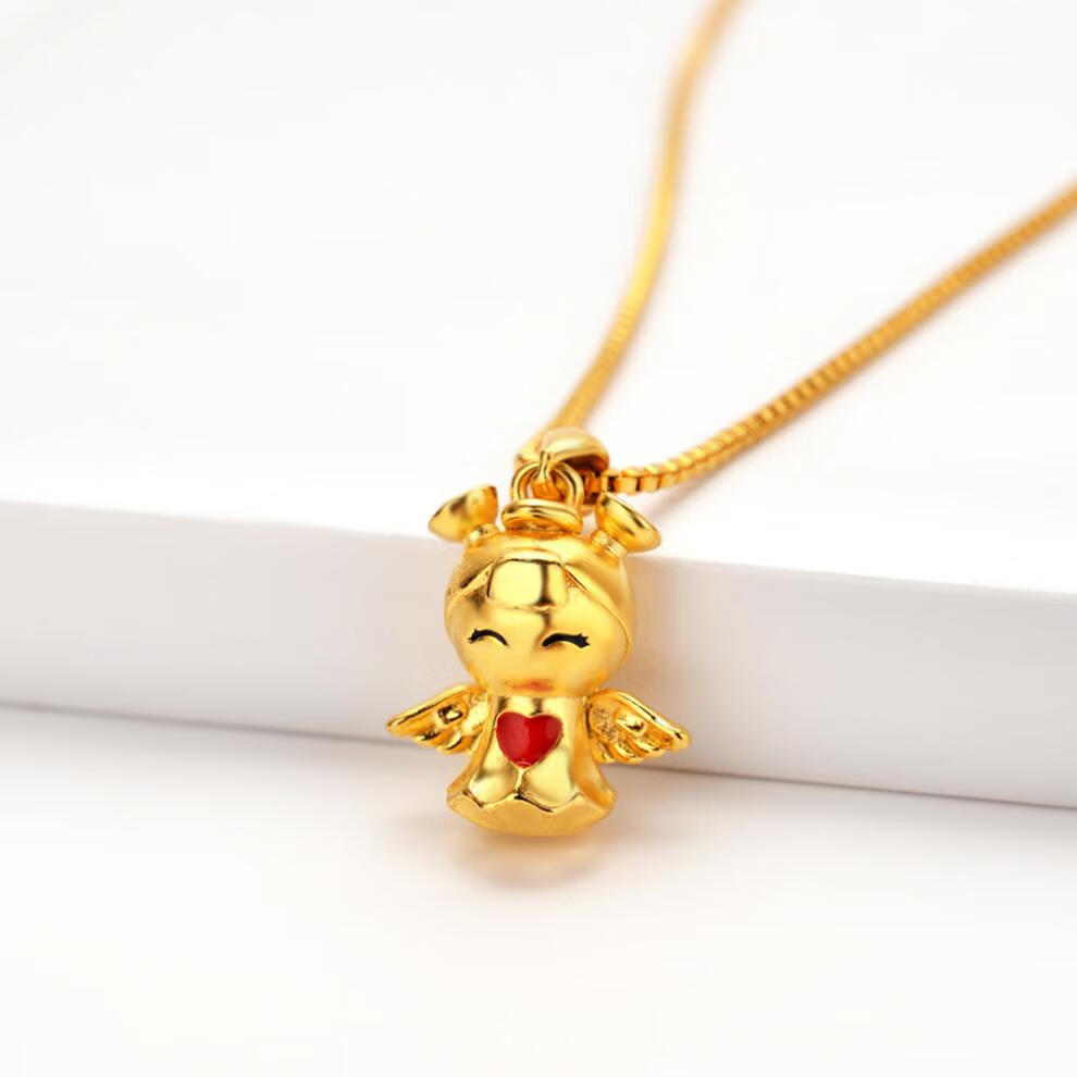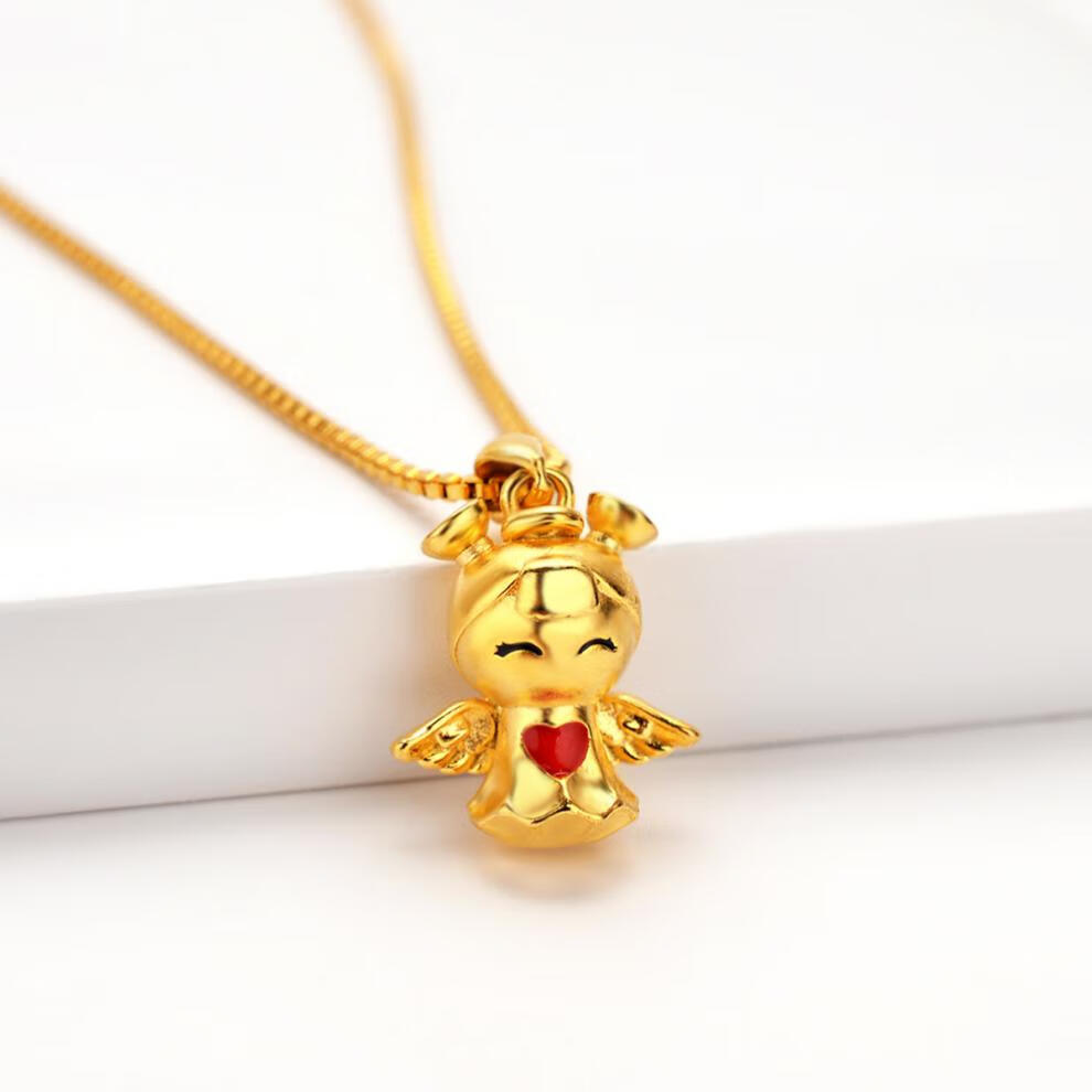 仿3D硬金滴油吊坠 小女孩天使挂坠 翅膀心形搭配锁骨链 沙金首饰 吊坠+限时送链