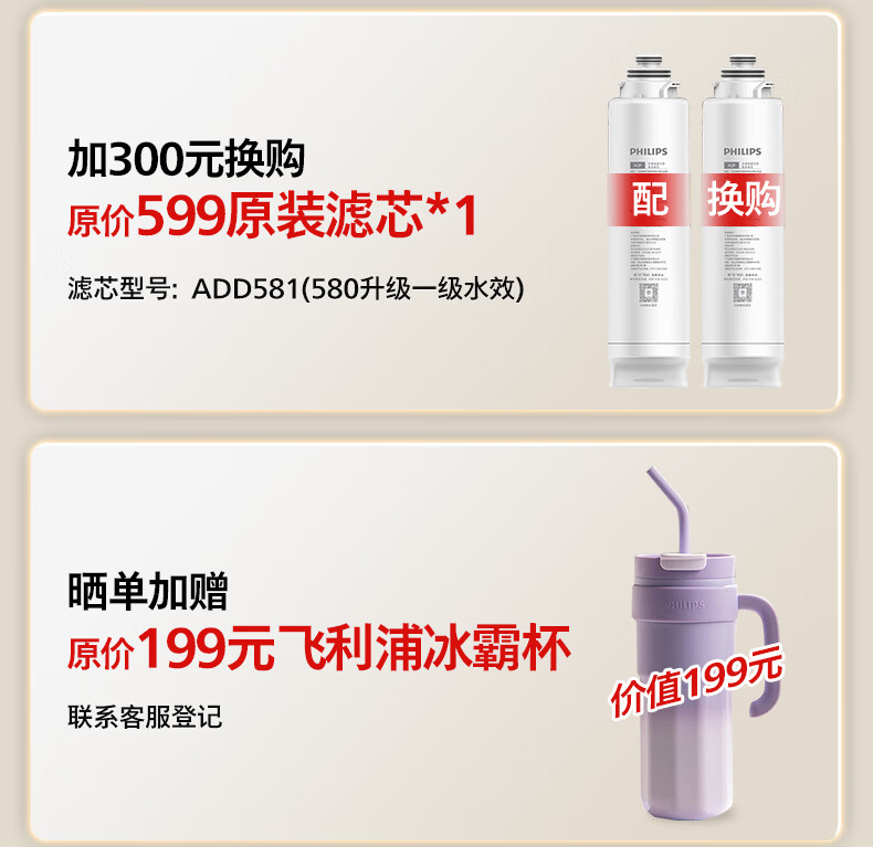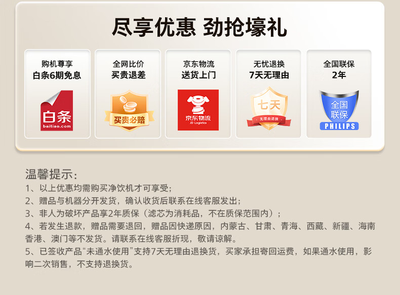 飞利浦(PHILIPS) 净水器家用加热直饮一体机台上净饮机反渗透富锶矿化台式即热式饮水机 ADD6862升级款ADD8637 ADD8637【升级一级水效】