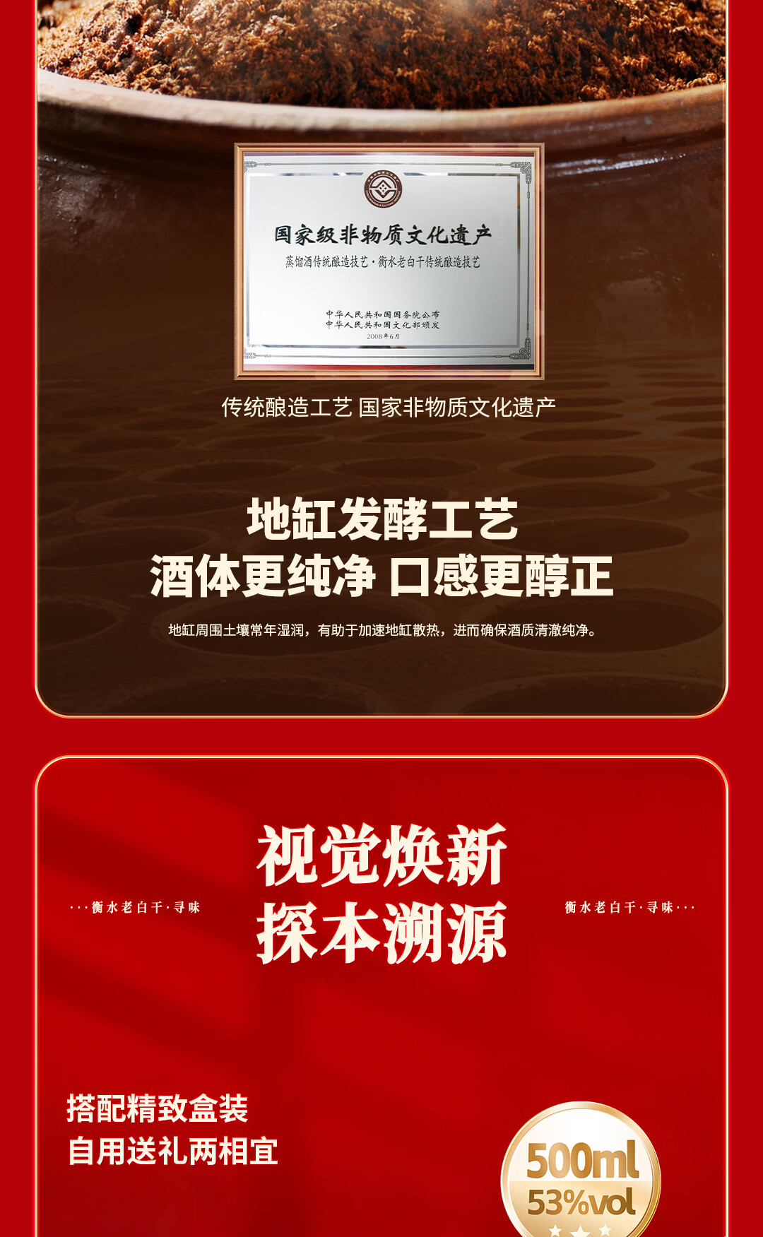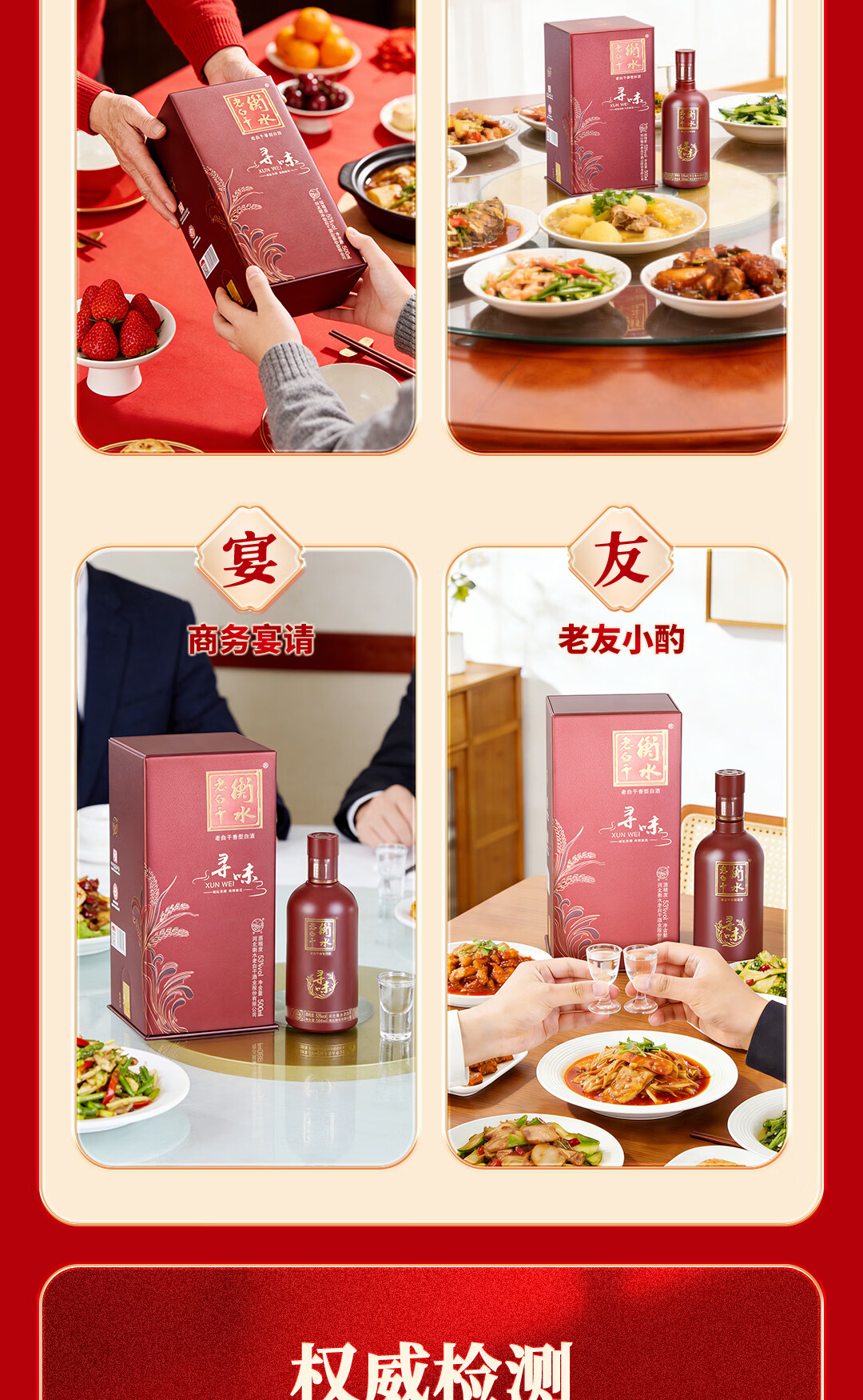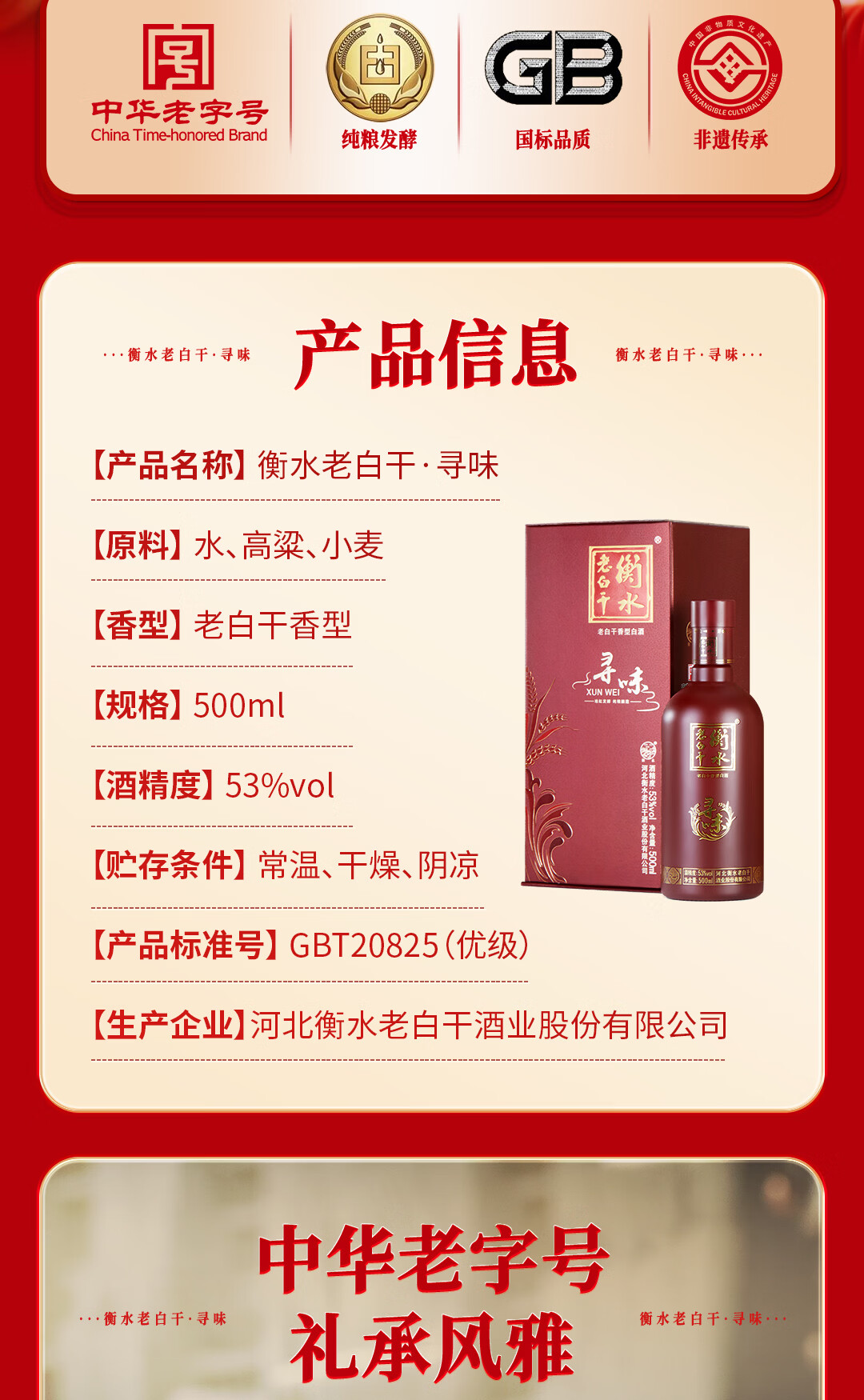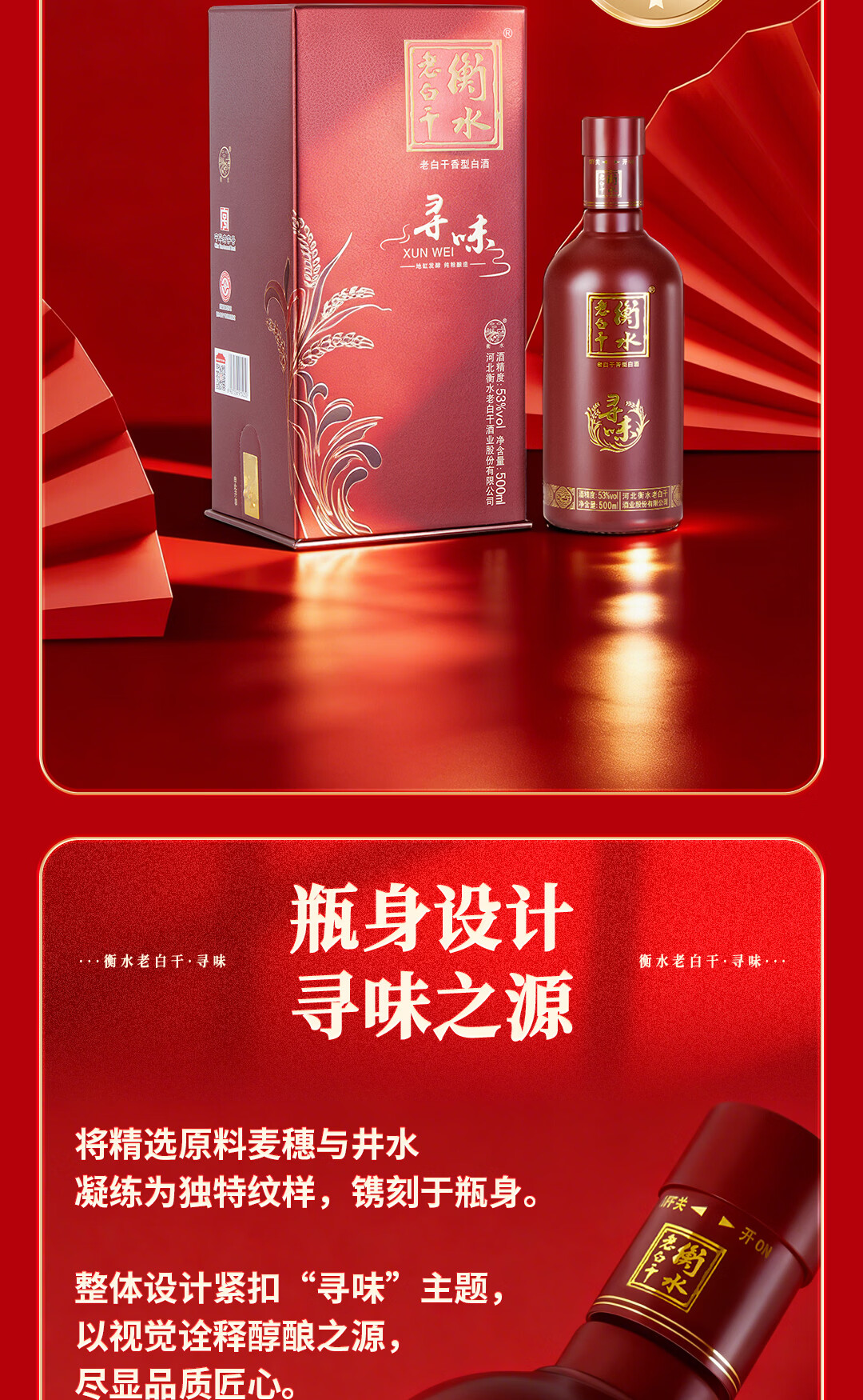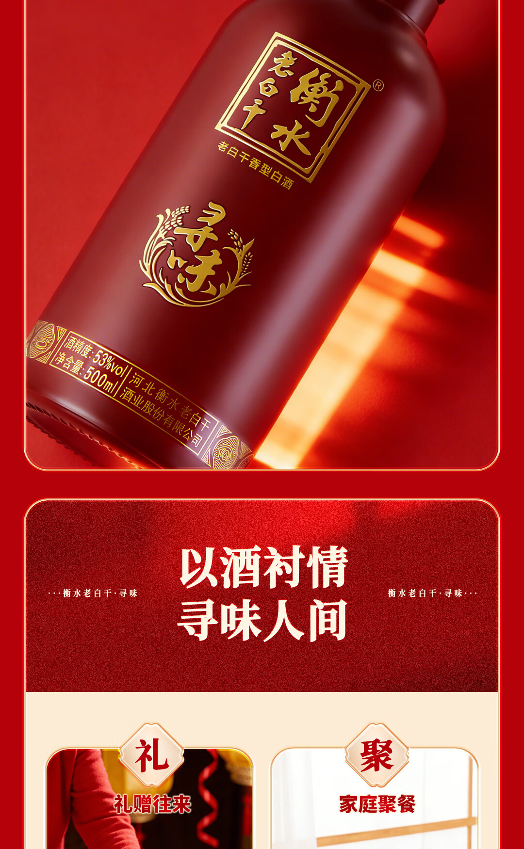 衡水老白干53度寻味 老白干香型白酒 手提礼盒 古法酿造 聚会自饮 53度 500mL 4瓶 (500ml*4)手提装