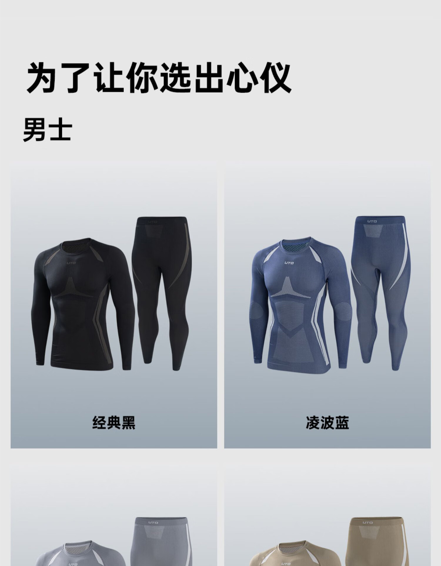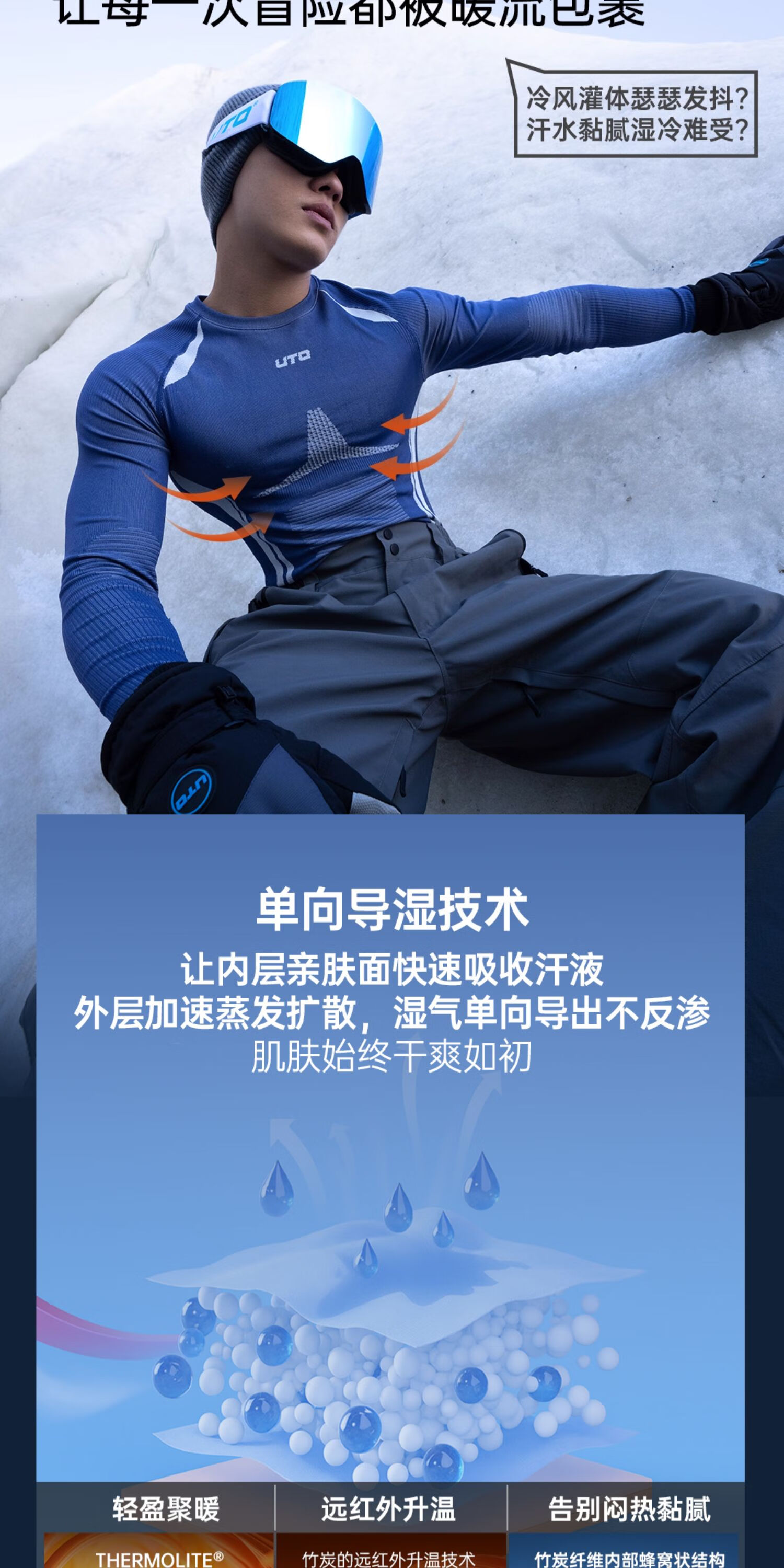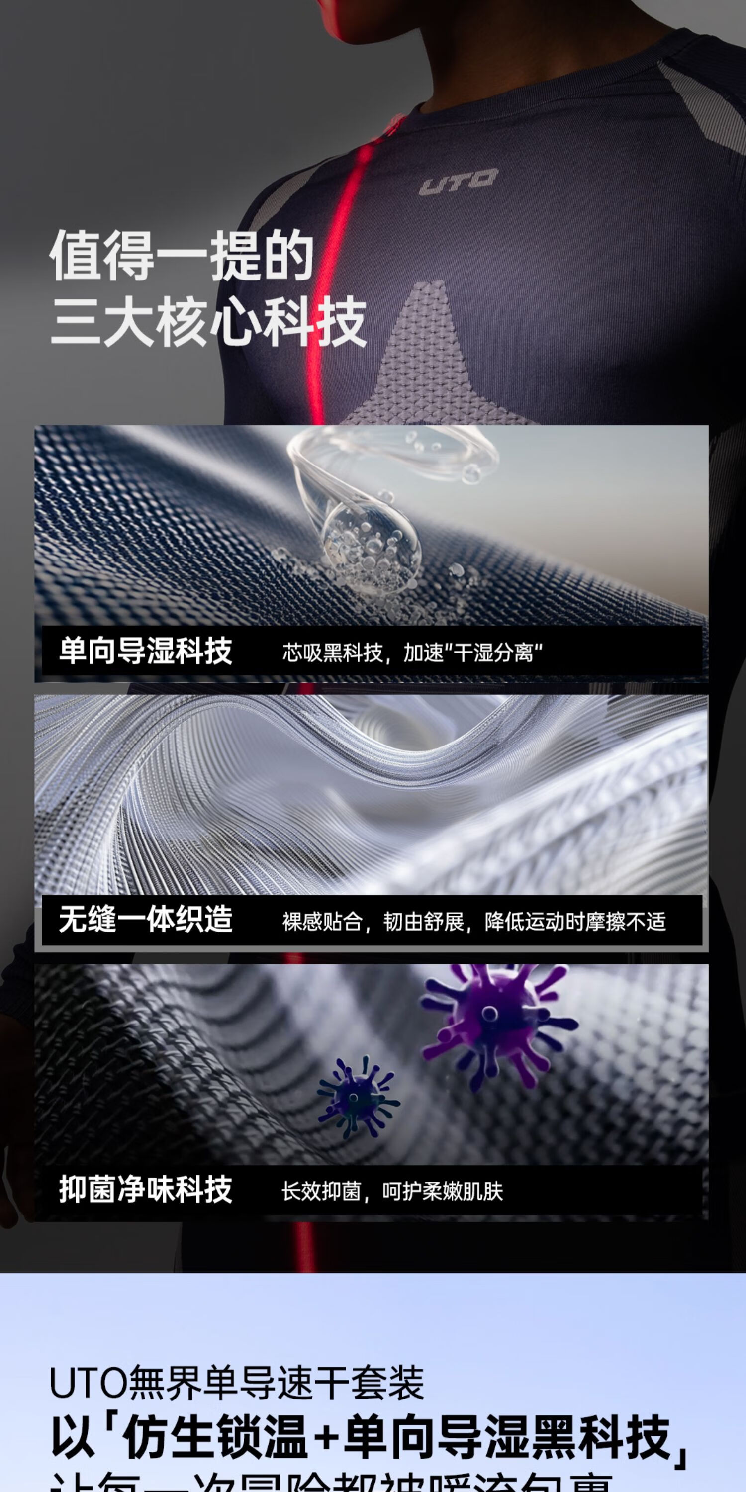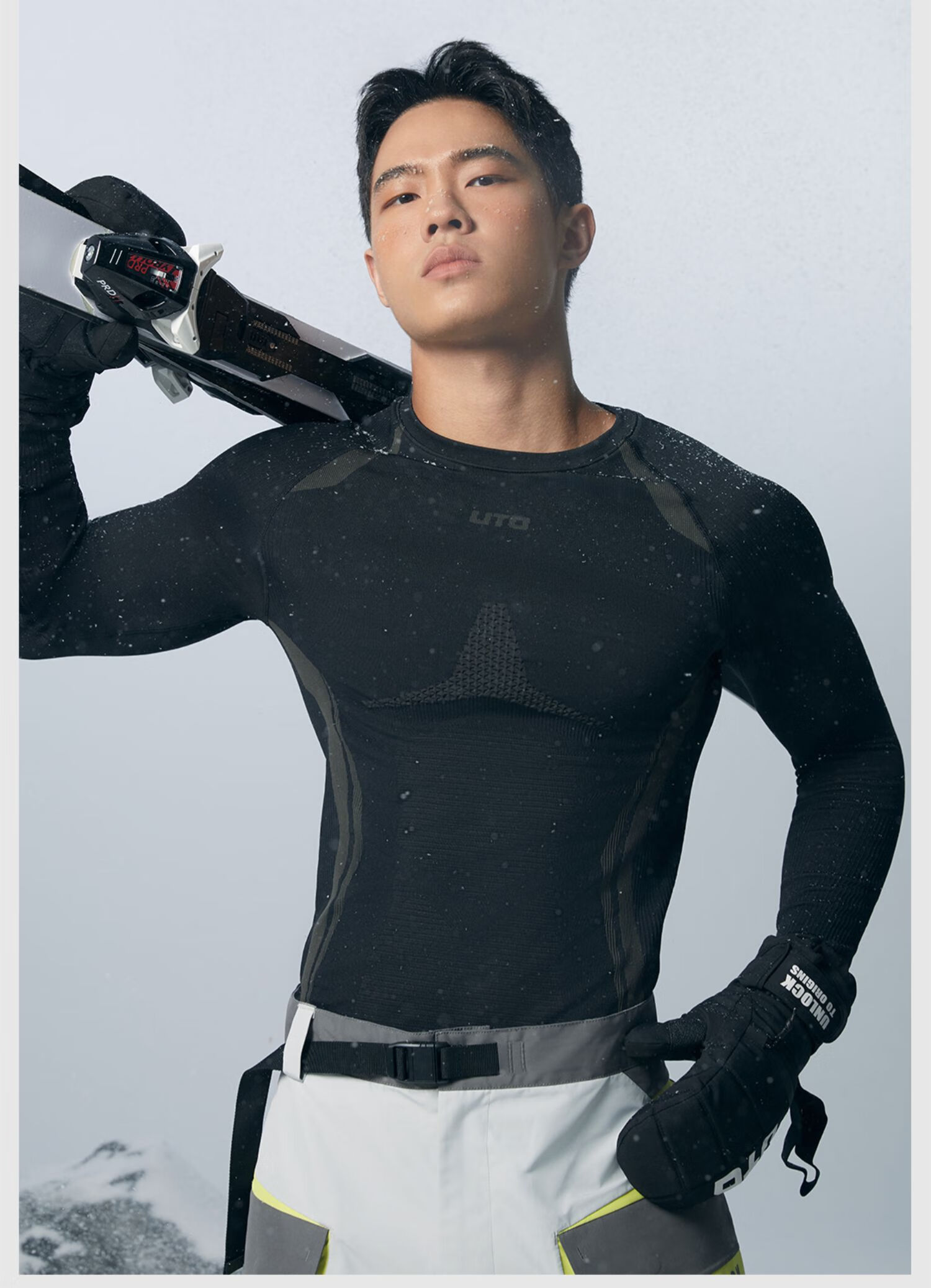 悠途(UTO) 冬季滑雪速干衣男女保暖透气跑步登山内衣無界单导速干套装 经典黑(男) 2XL