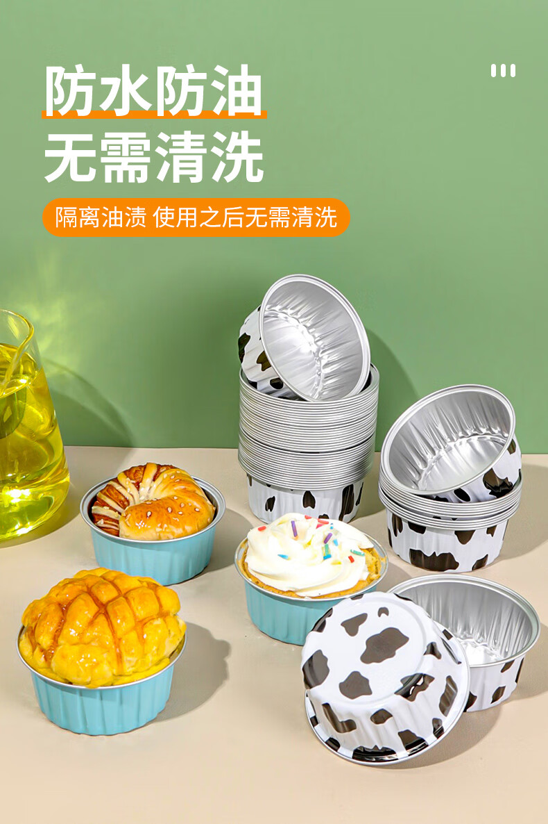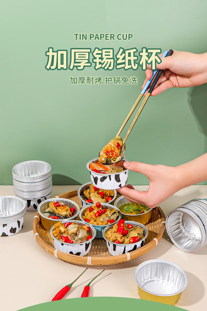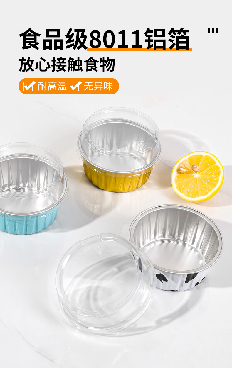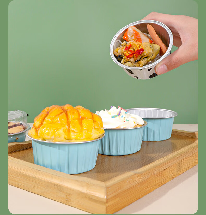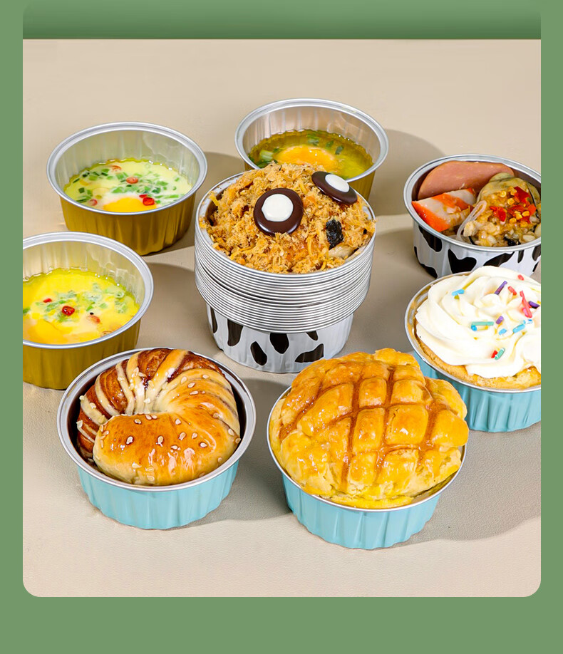首力锡纸碗蛋糕模具空气炸锅锡纸碗布丁杯烤箱烘焙工具蒸锅烧烤铝箔盘 【锡纸碗】浅蓝色【50只装】 升级加厚-可反复使用