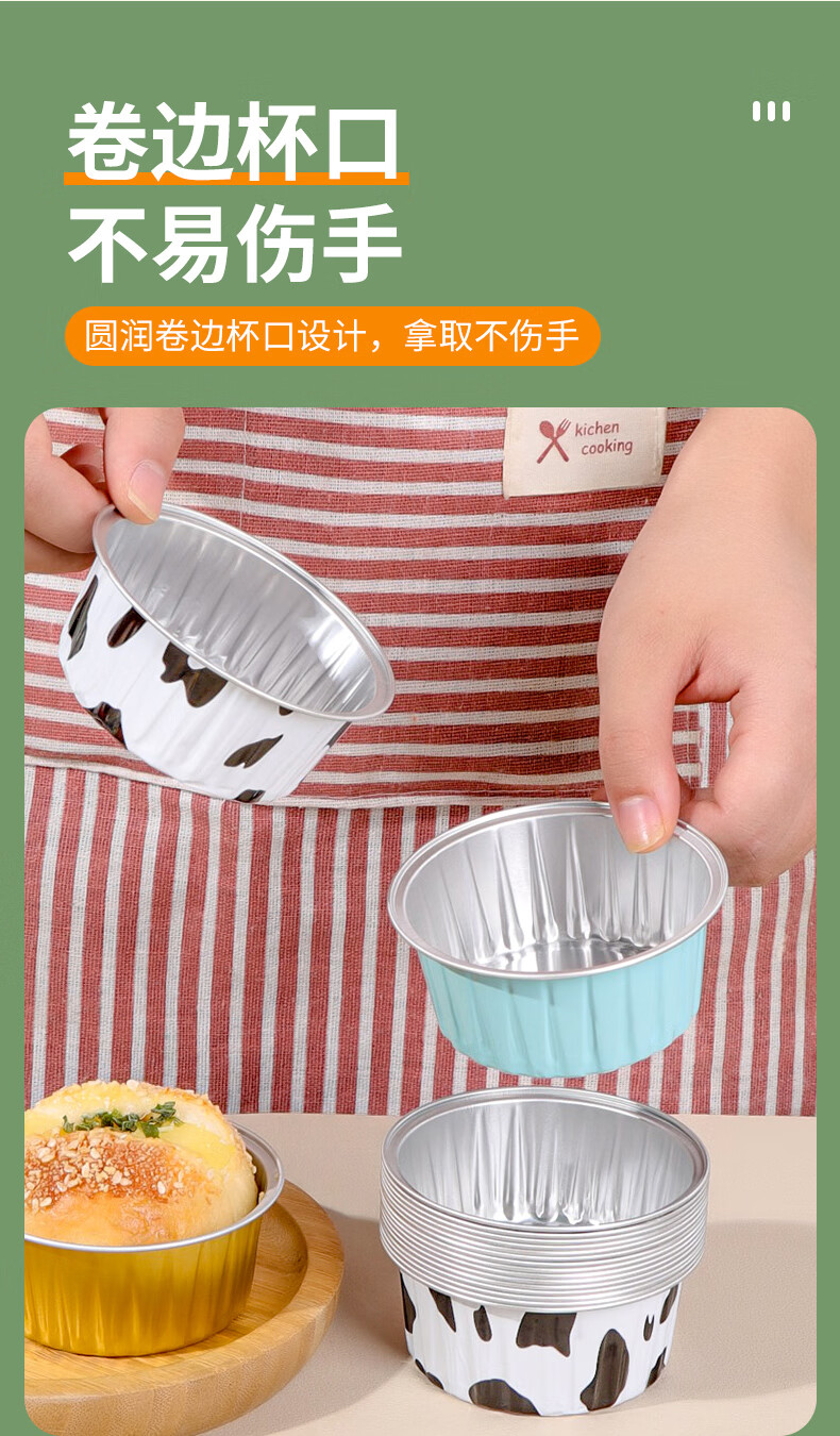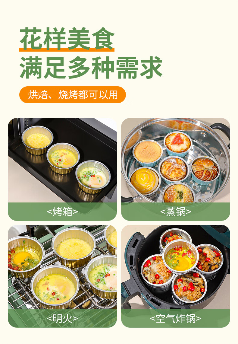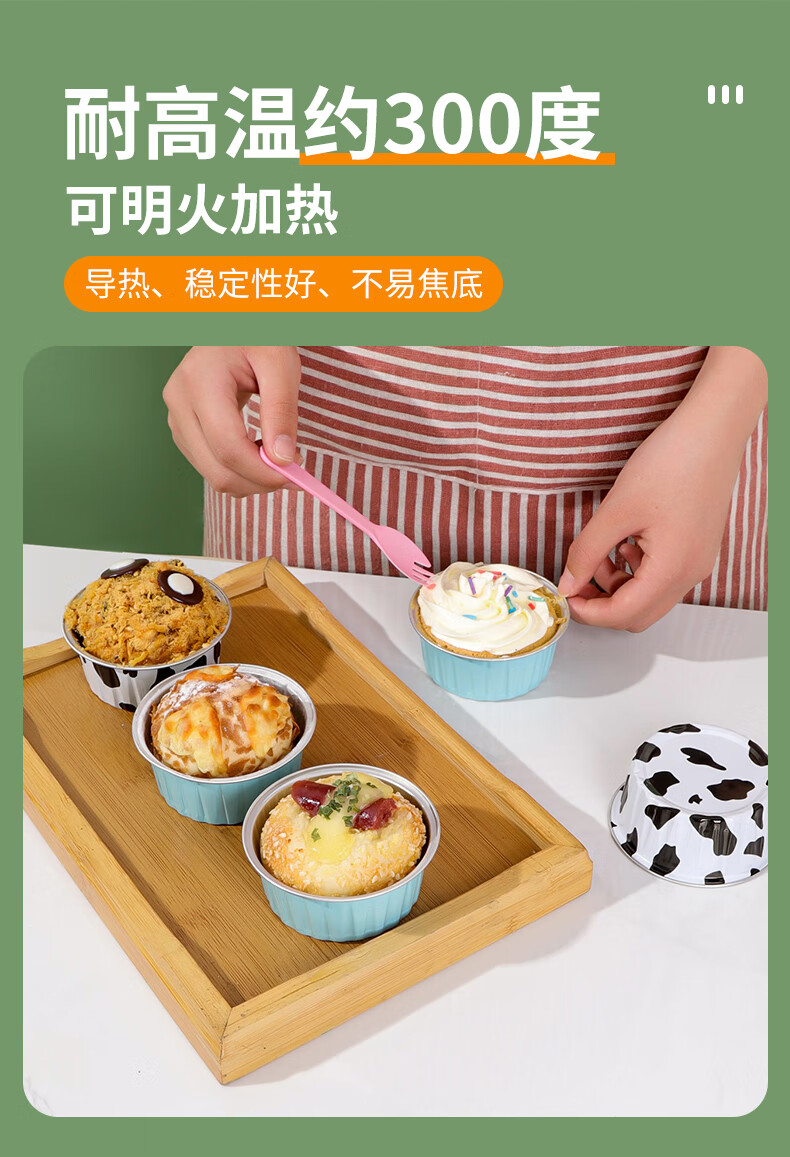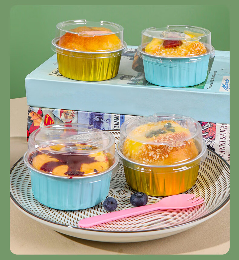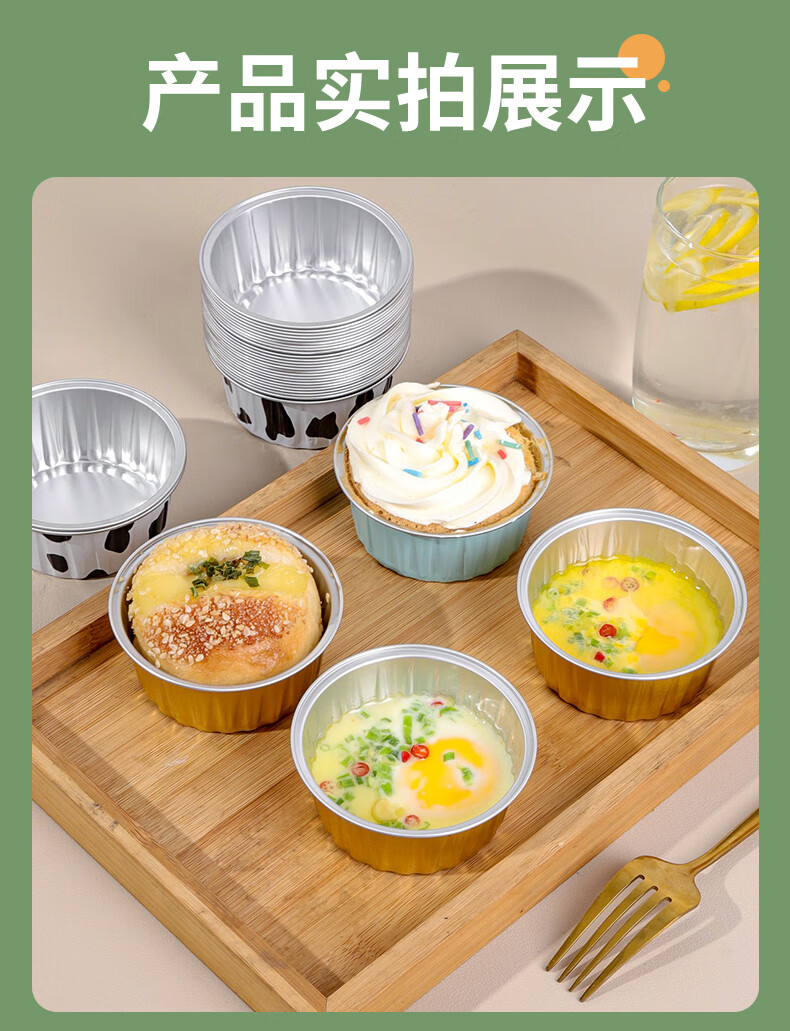 首力锡纸碗蛋糕模具空气炸锅锡纸碗布丁杯烤箱烘焙工具蒸锅烧烤铝箔盘 【锡纸碗】浅蓝色【50只装】 升级加厚-可反复使用